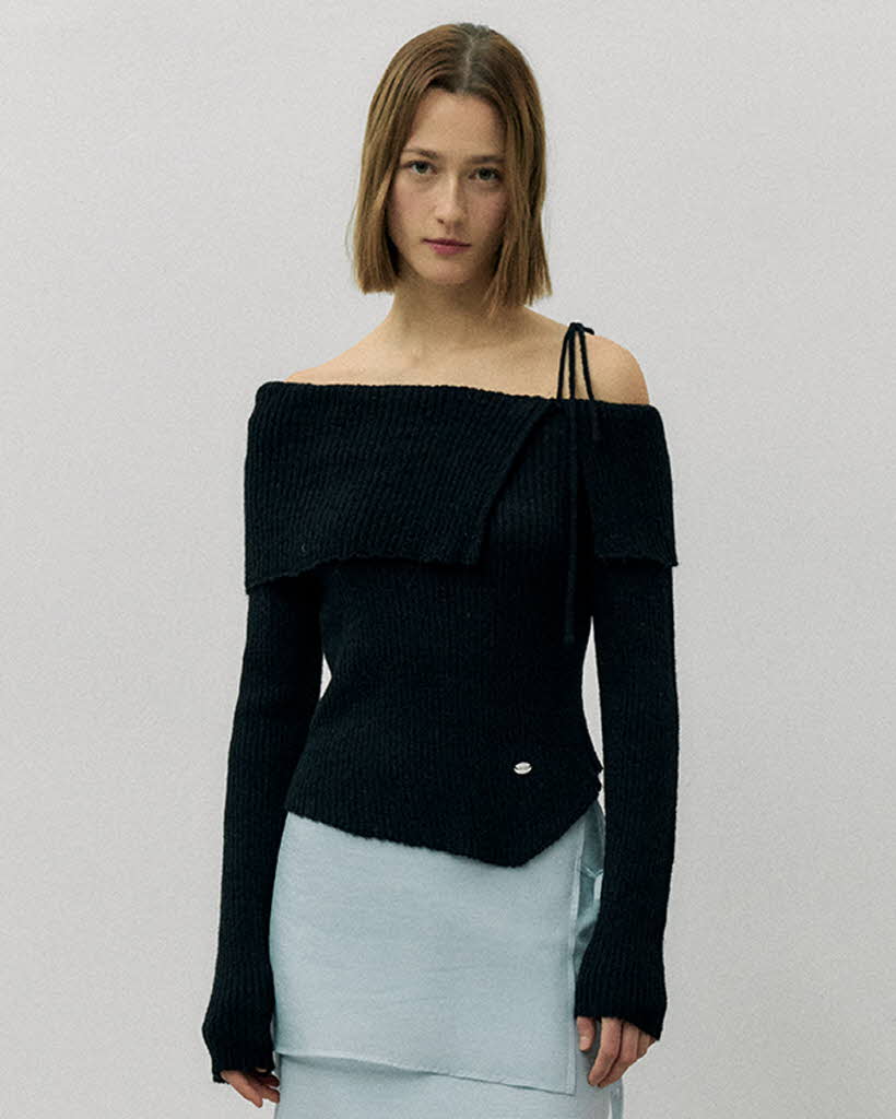 MOHAIR WOOL BLENDED OFF SHOULDER KNIT BLACK
