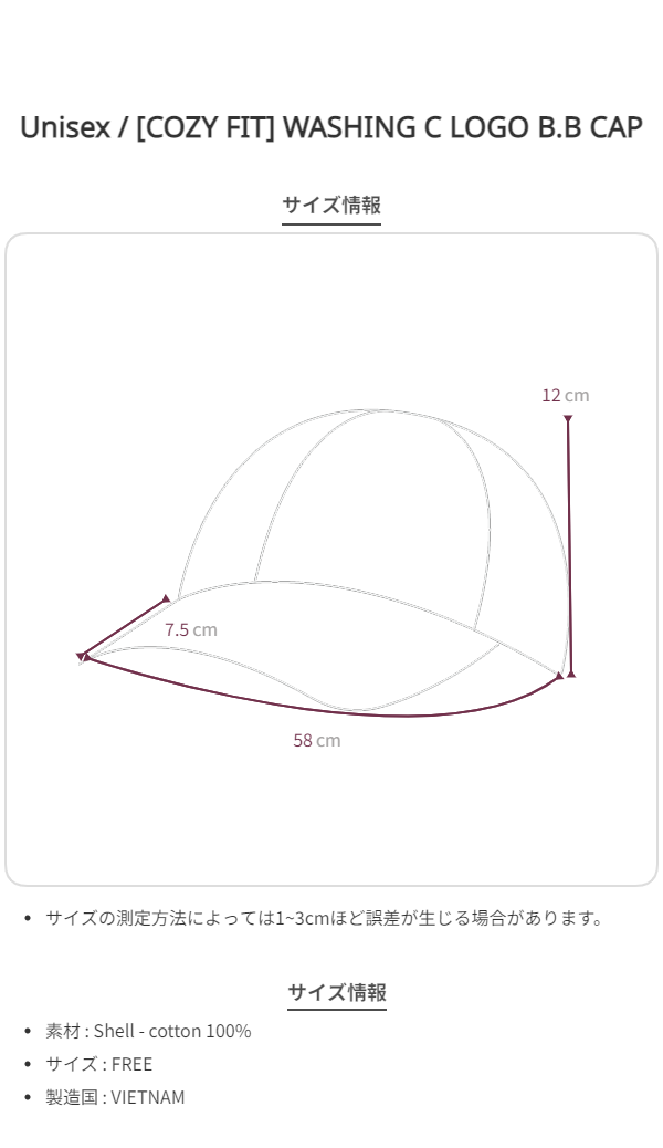[COZY FIT] WASHING C LOGO B.B CAP - Black