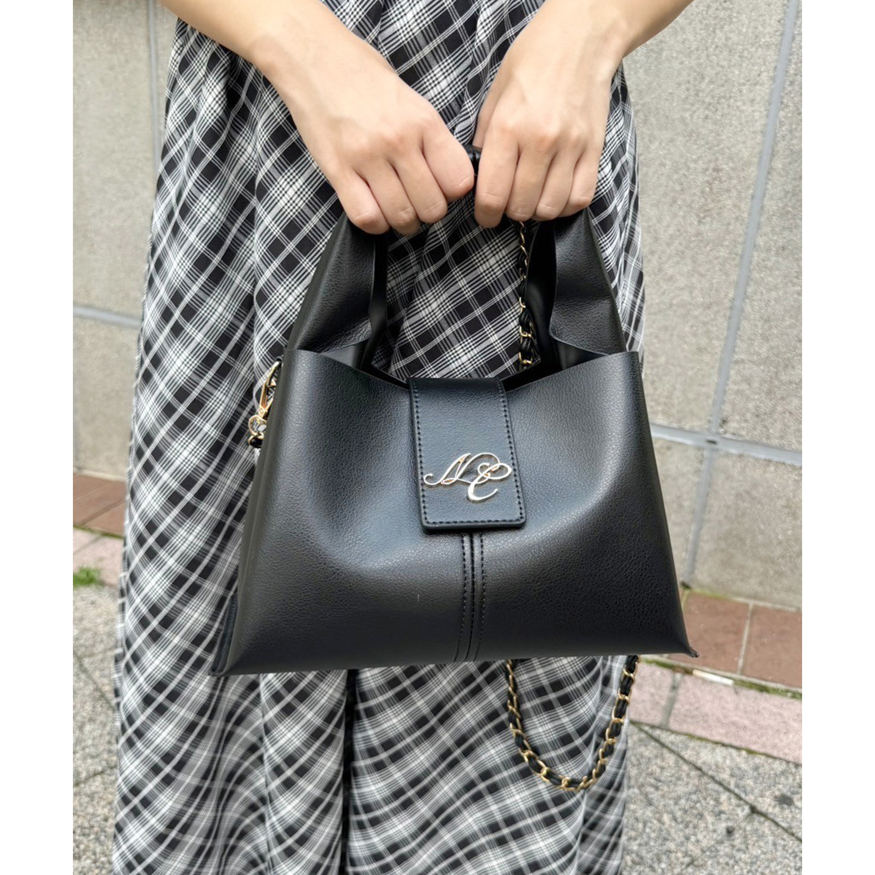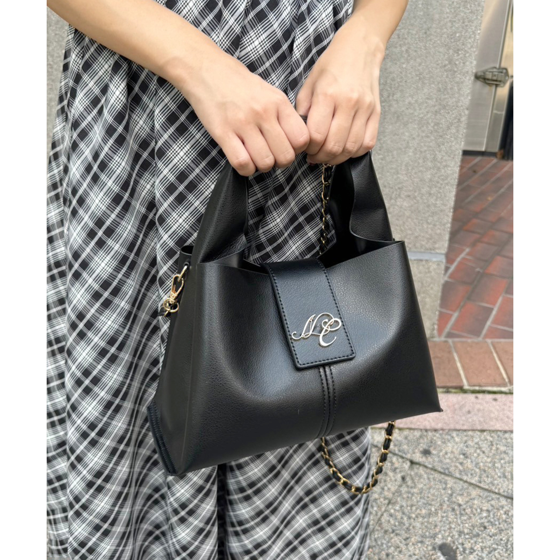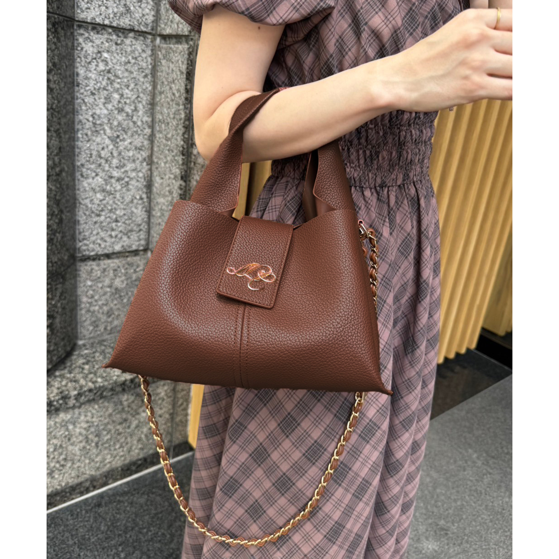 チェーンが付いているので、ショルダーバッグとしてもお使いいただけます。