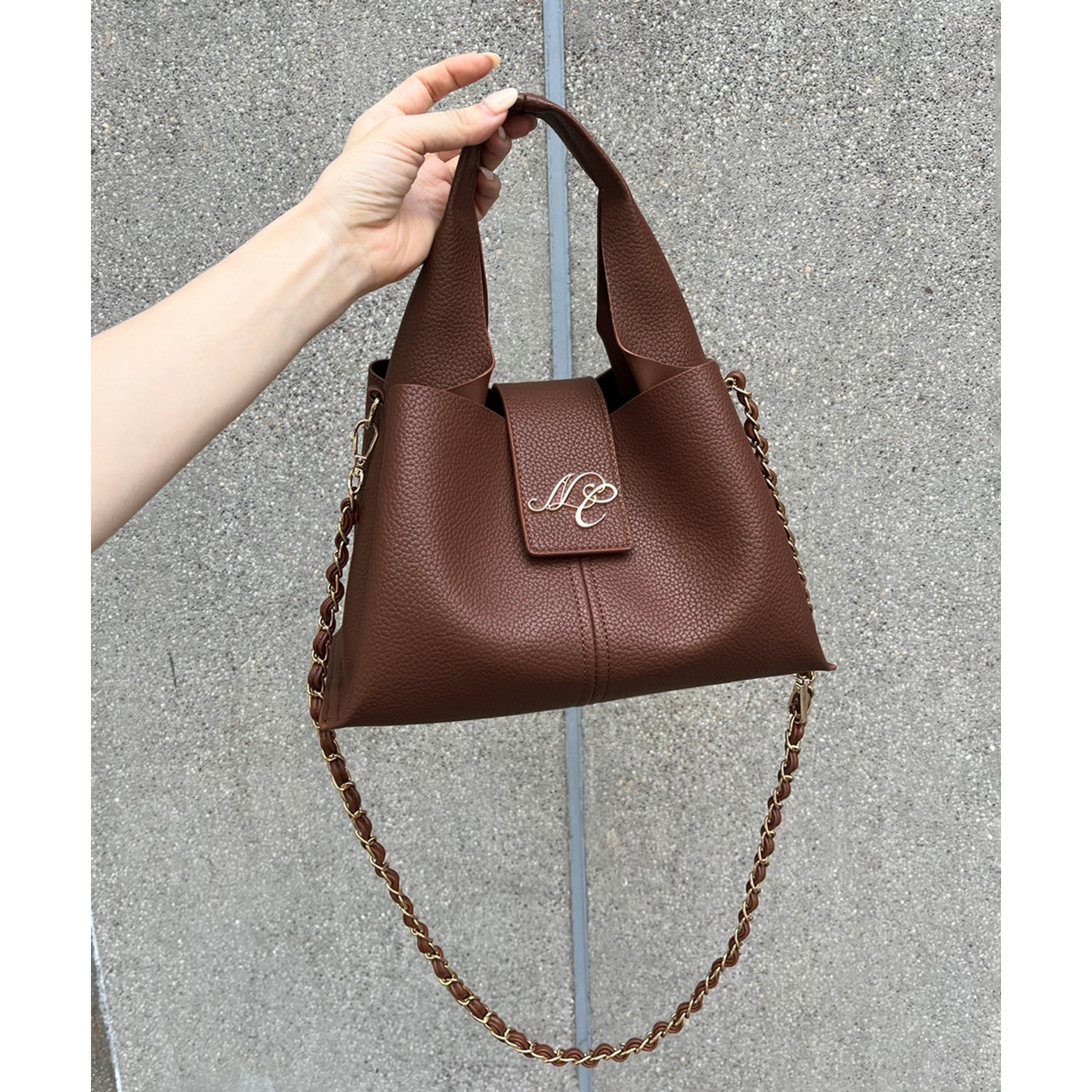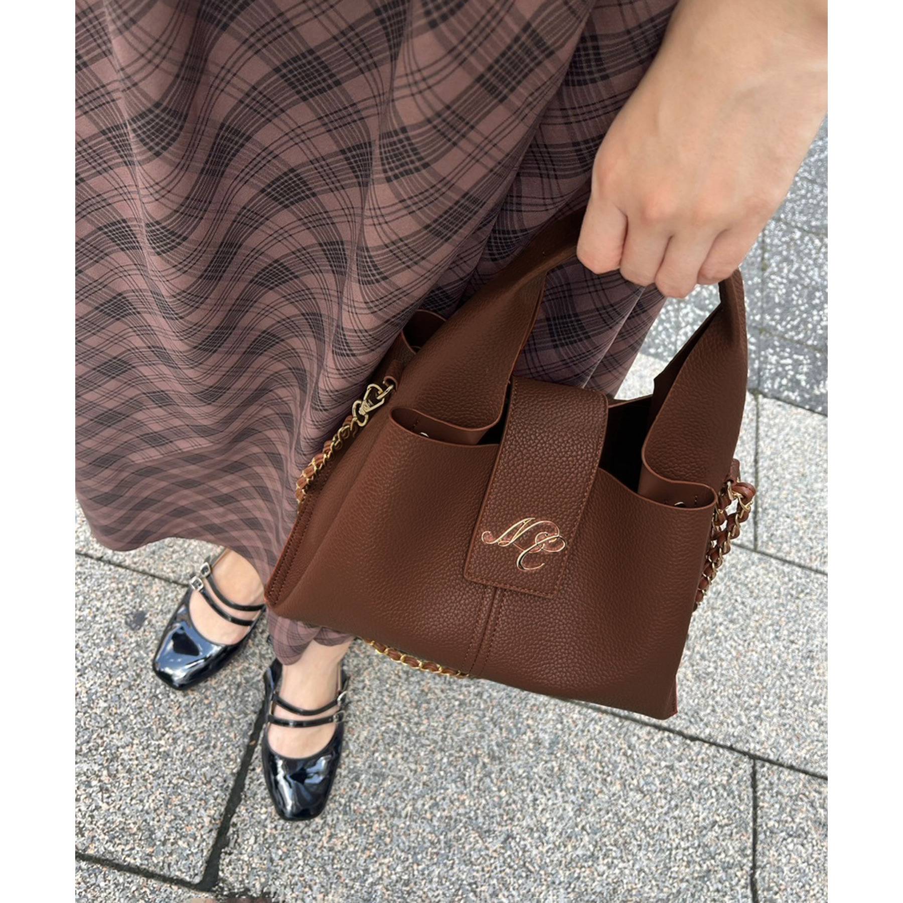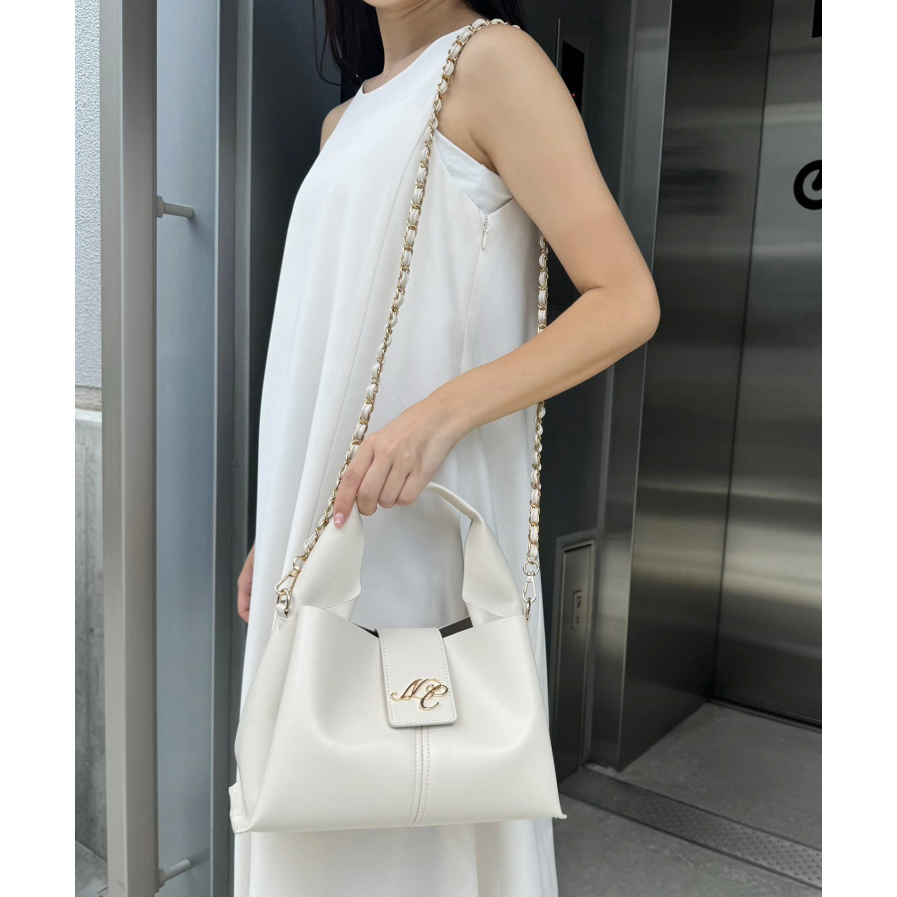 チェーンが付いているので、ショルダーバッグとしてもお使いいただけます。