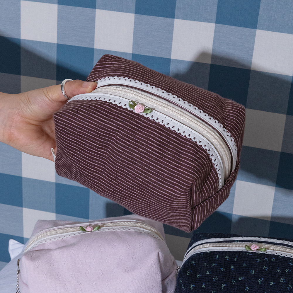 ファブリック スクエア ポーチ ストライプ ブラウン L