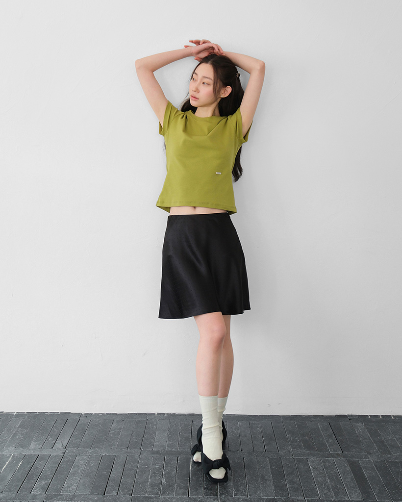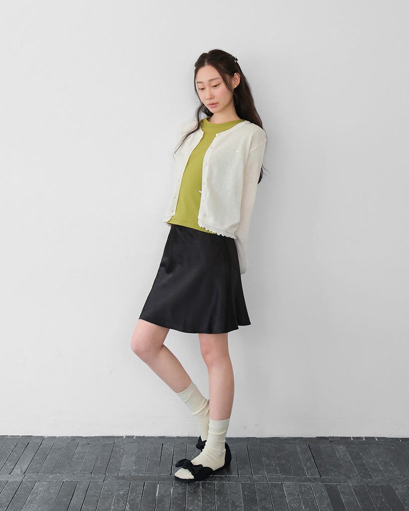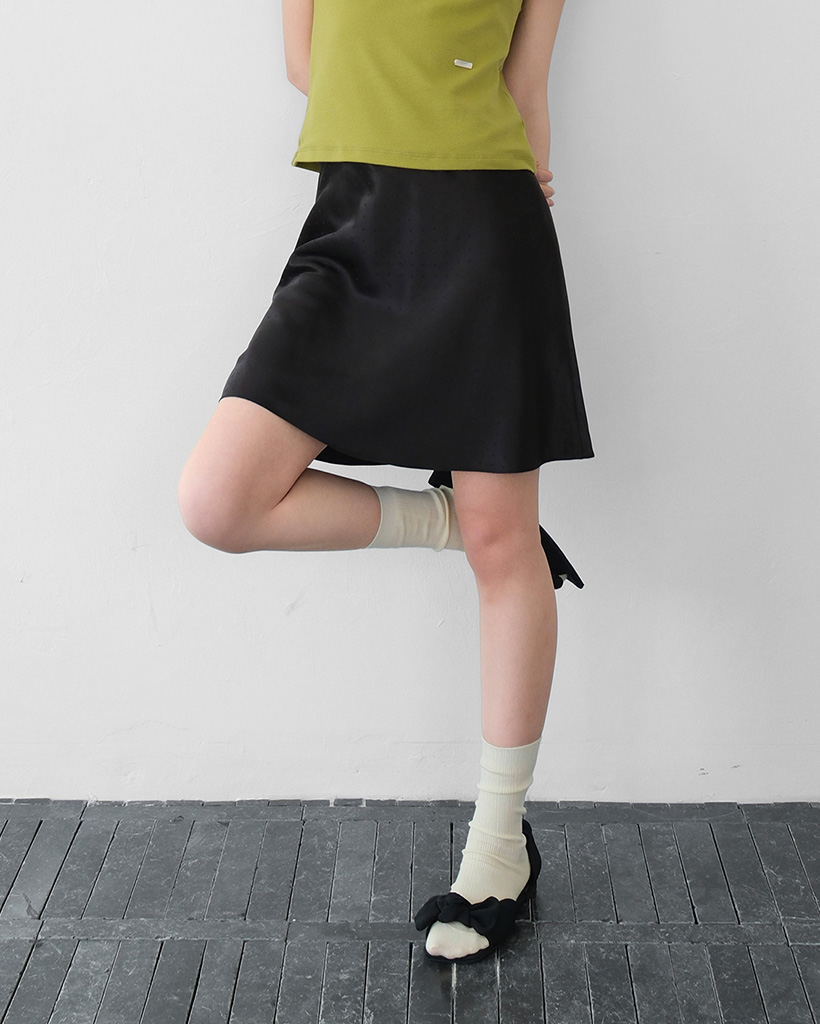 moui Satin dot midi skirt (BLACK)