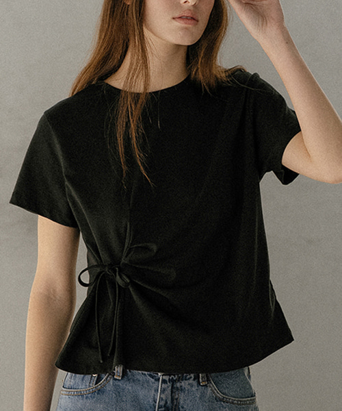 Side tuck strap T-shirt [KNSS03TS10]_Black