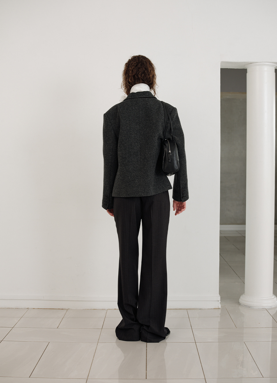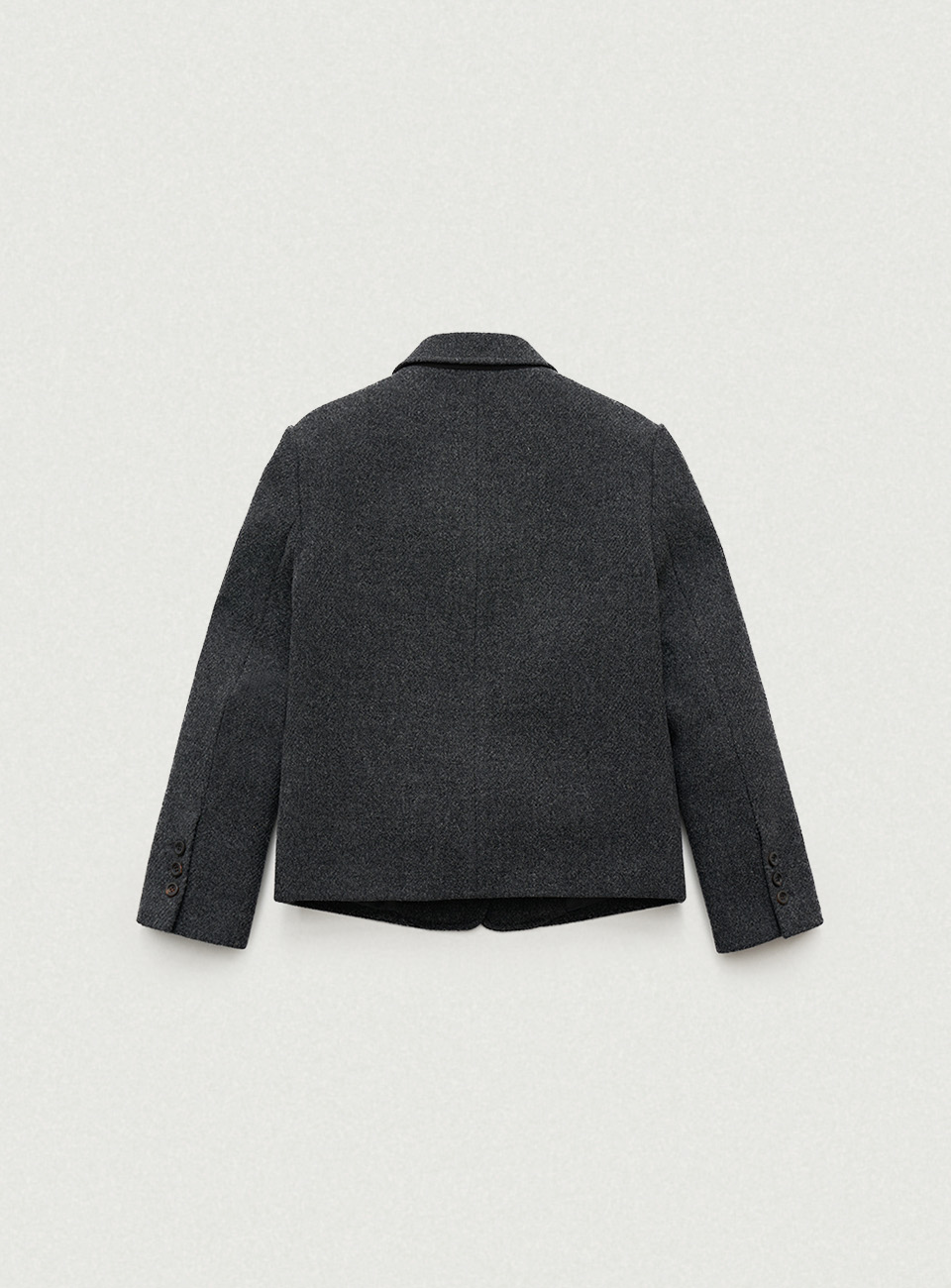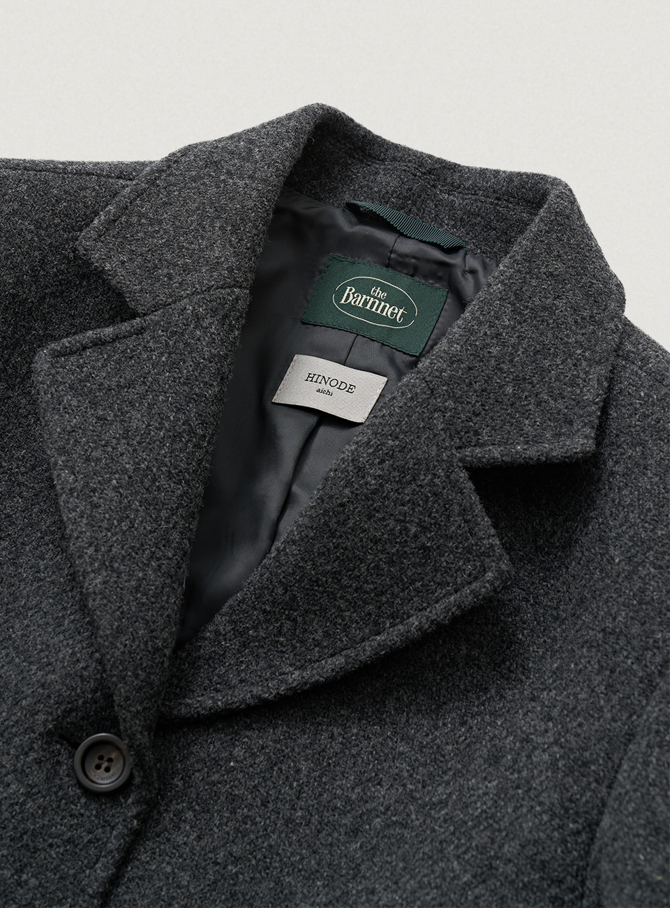 チャコールカラーとしっかりとした生地感が際立つHINODE社のウールツイードファブリック