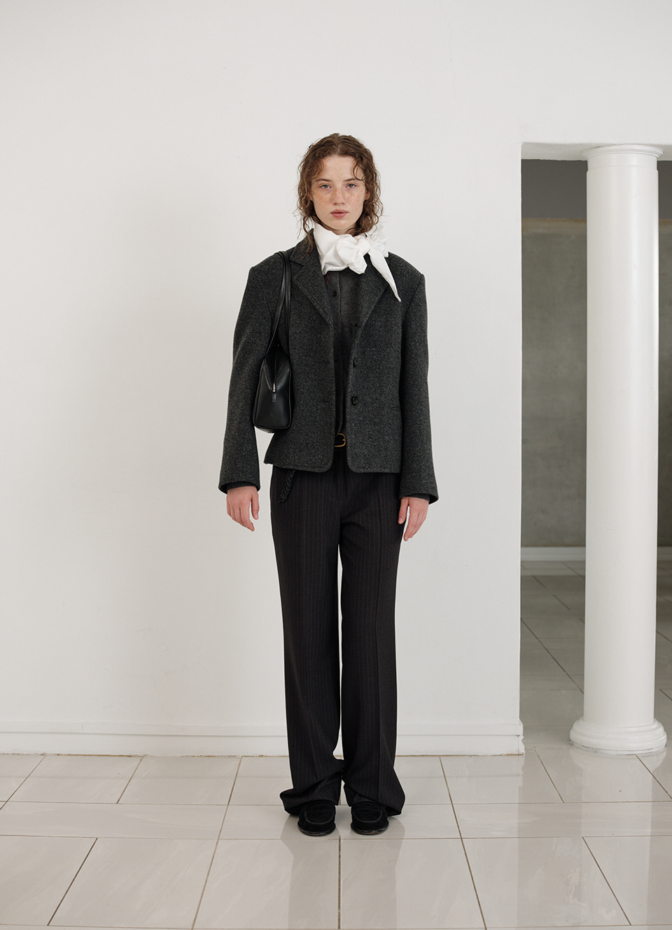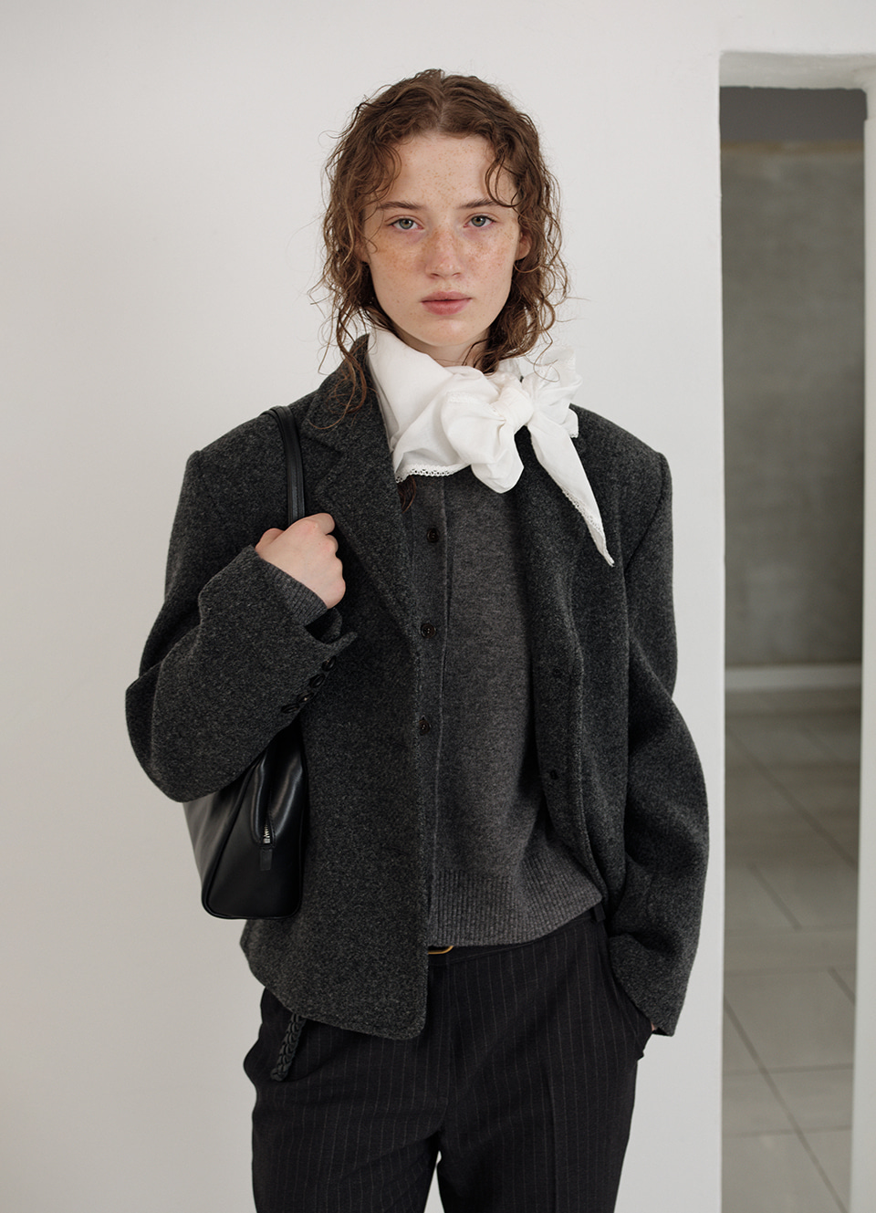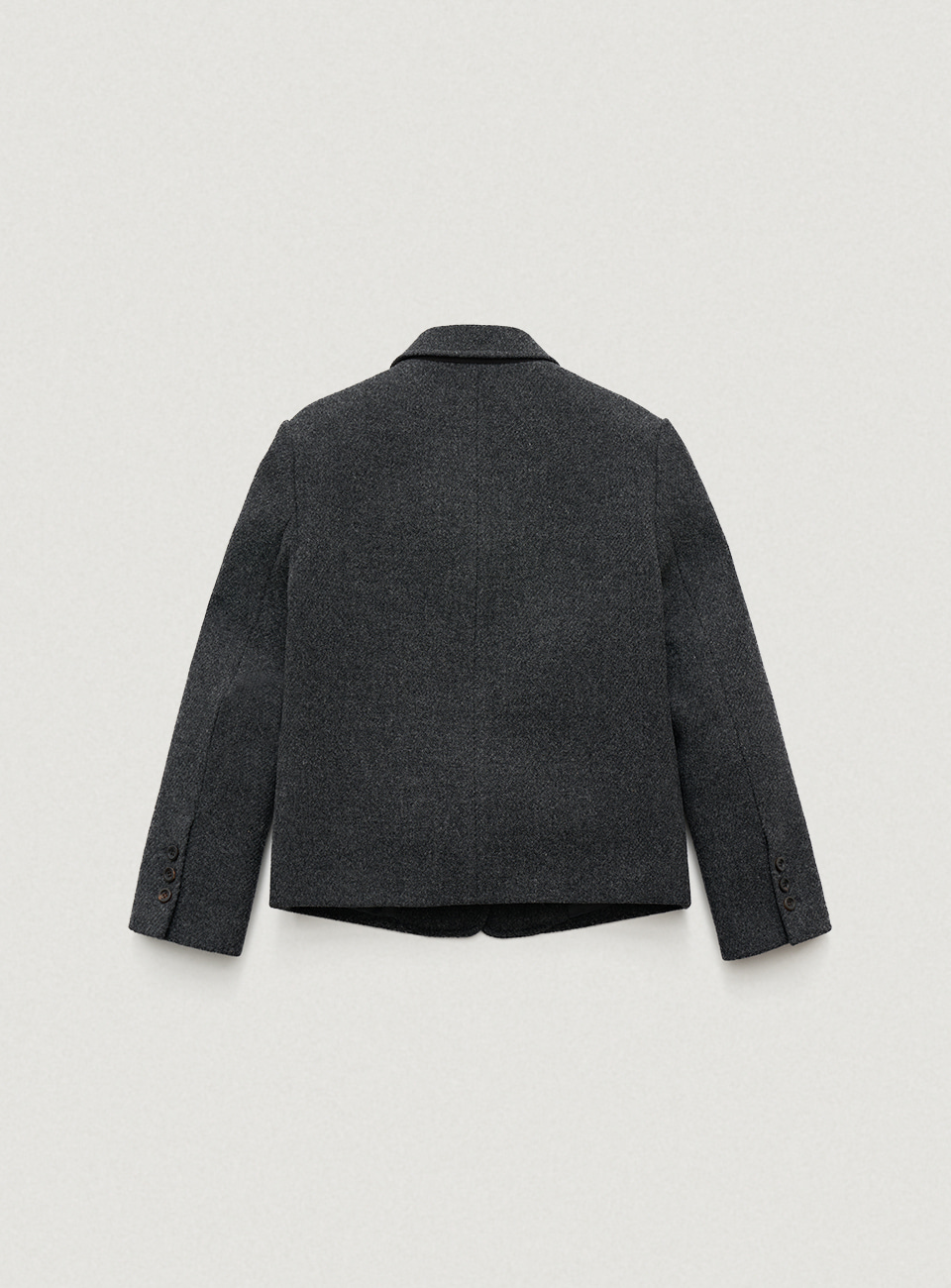 チャコールカラーとしっかりとした生地感が際立つHINODE社のウールツイードファブリック