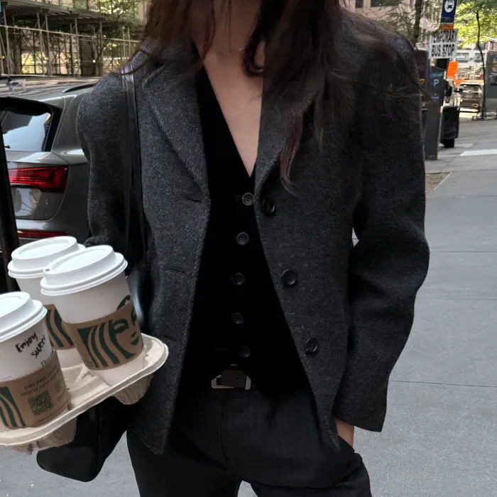 シングルブレスト仕様とシングルボタン留めのジャケットタイプ