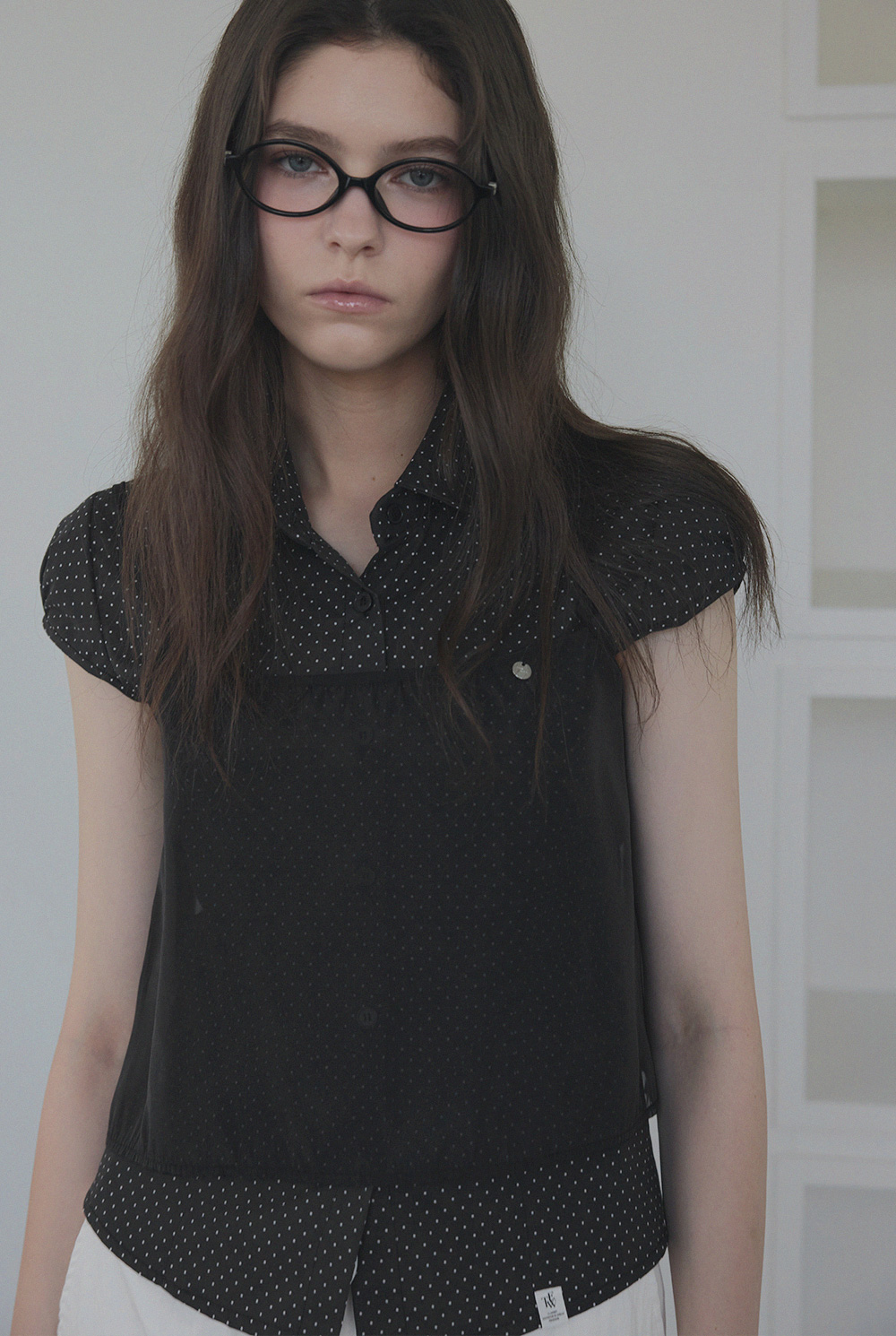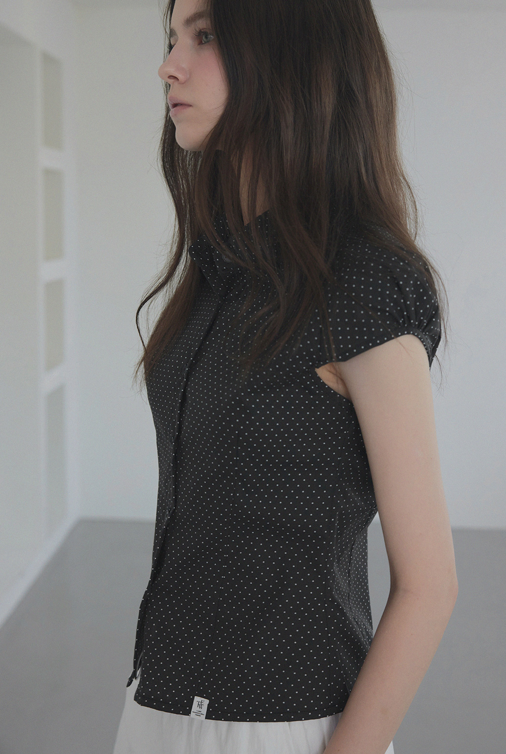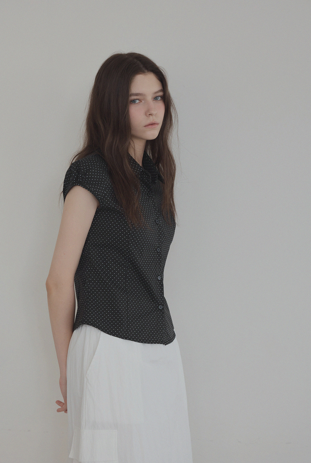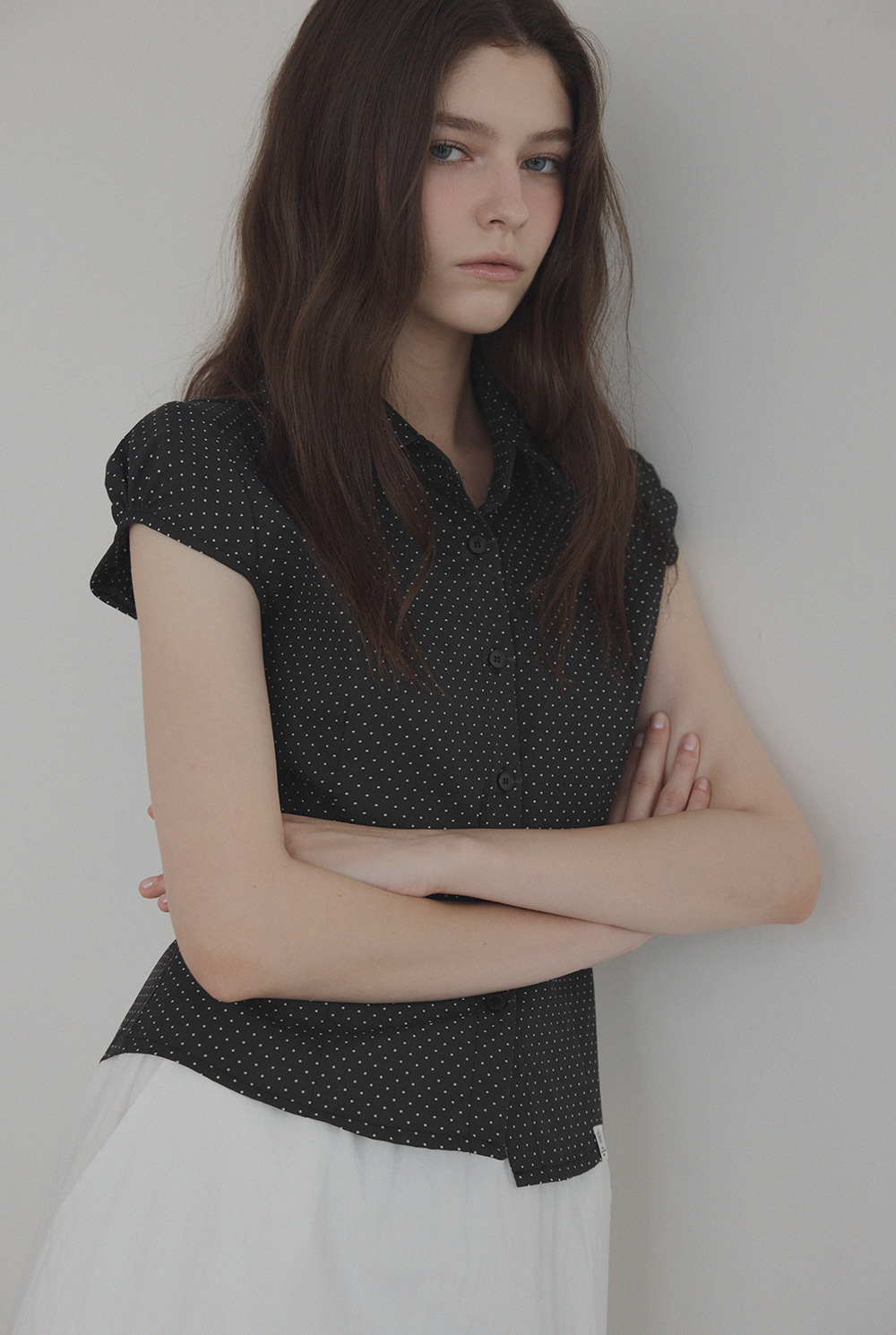 Lipdy Dot Shirring Cap Sleeve Shirt