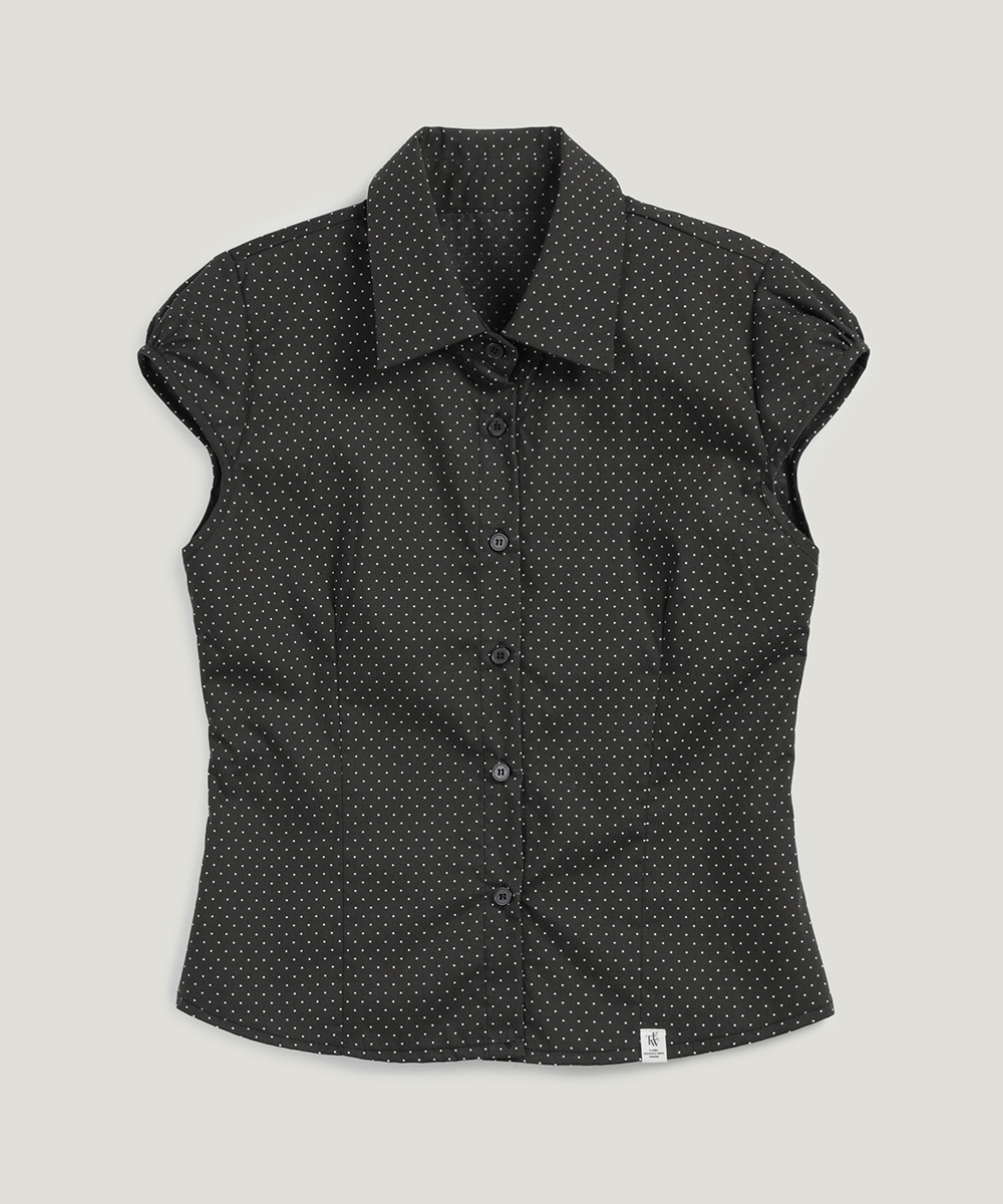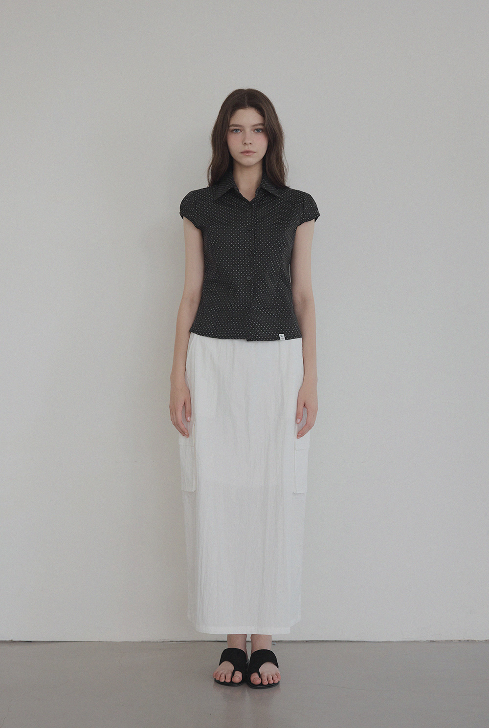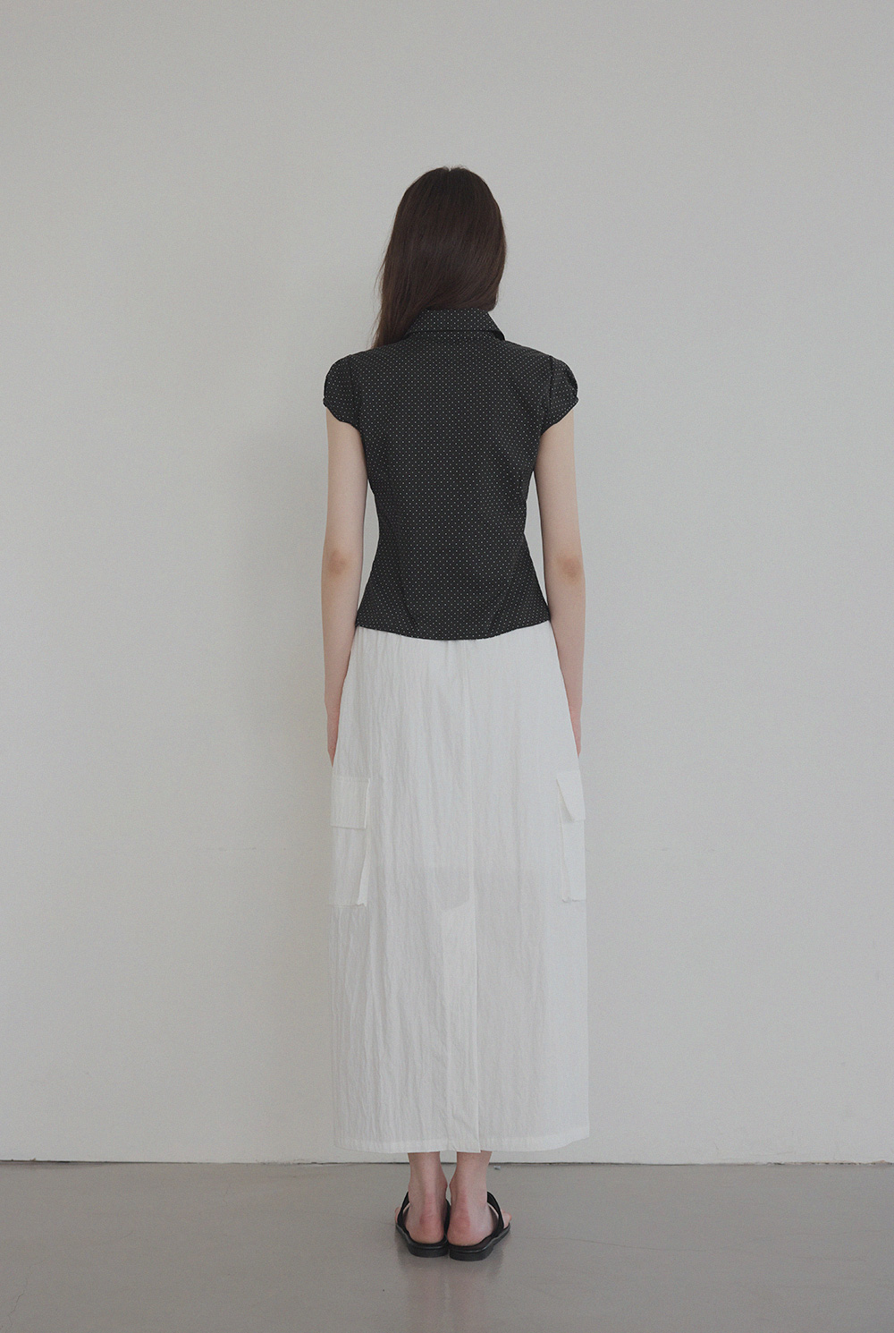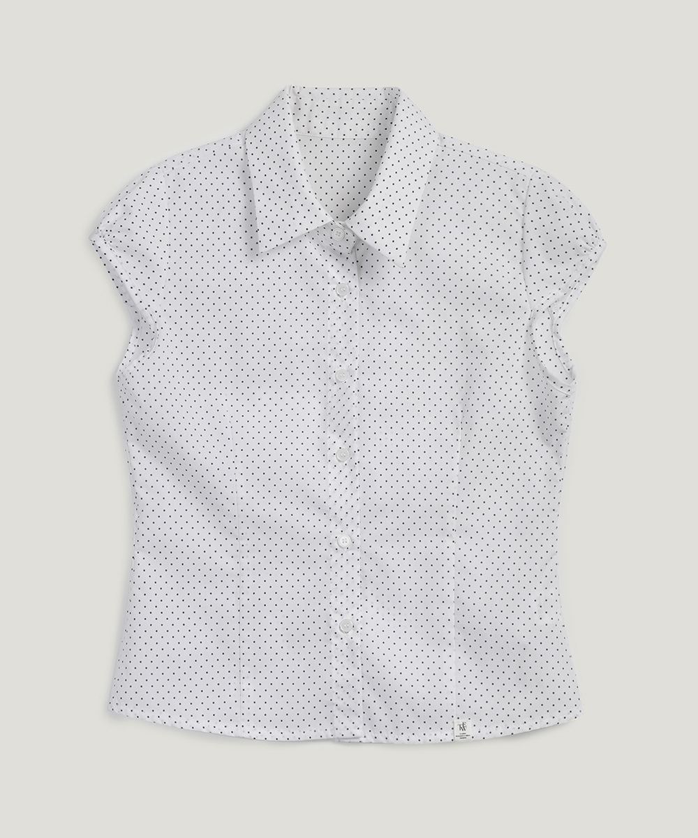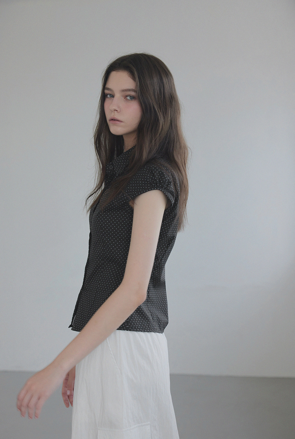 Lipdy Dot Shirring Cap Sleeve Shirt