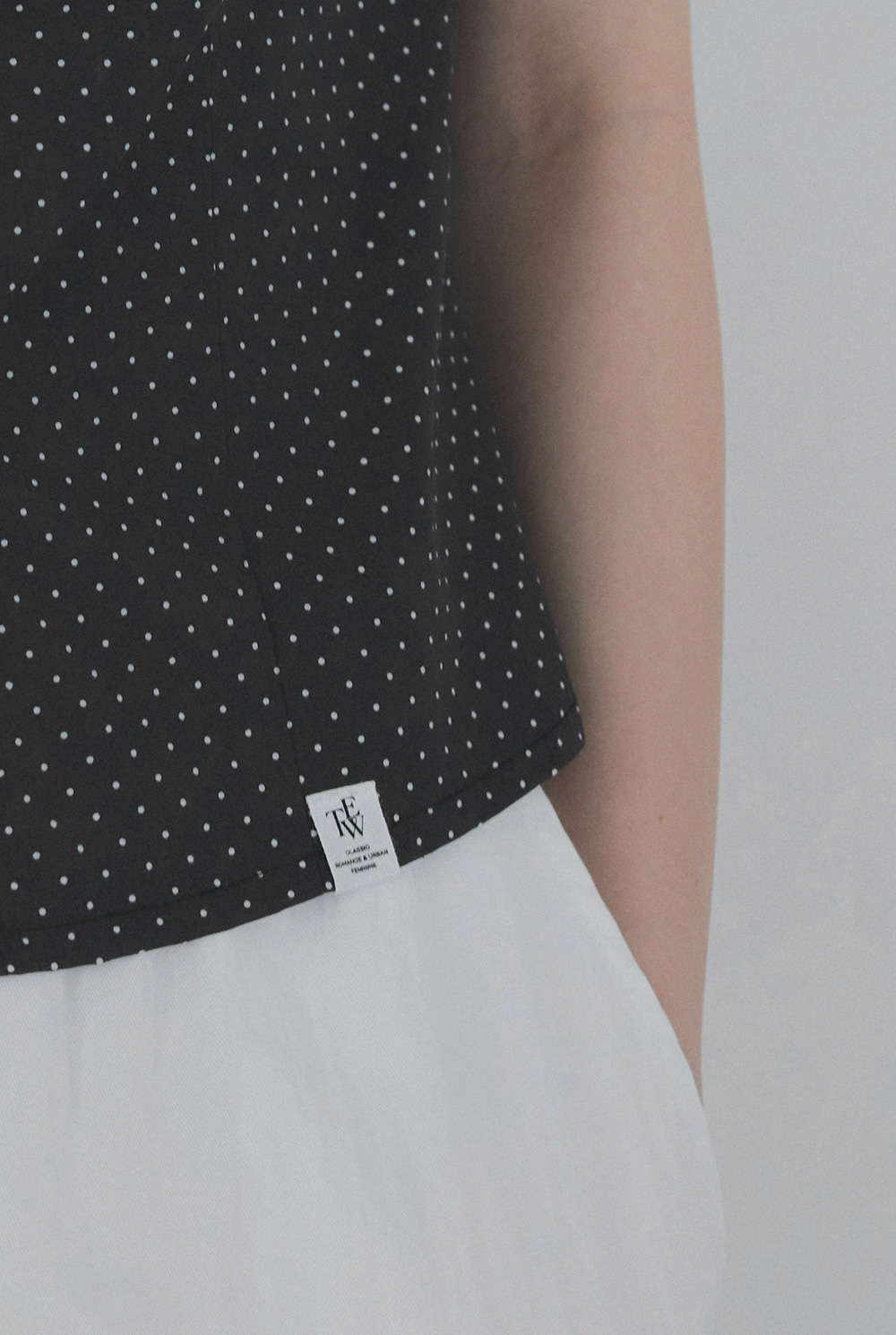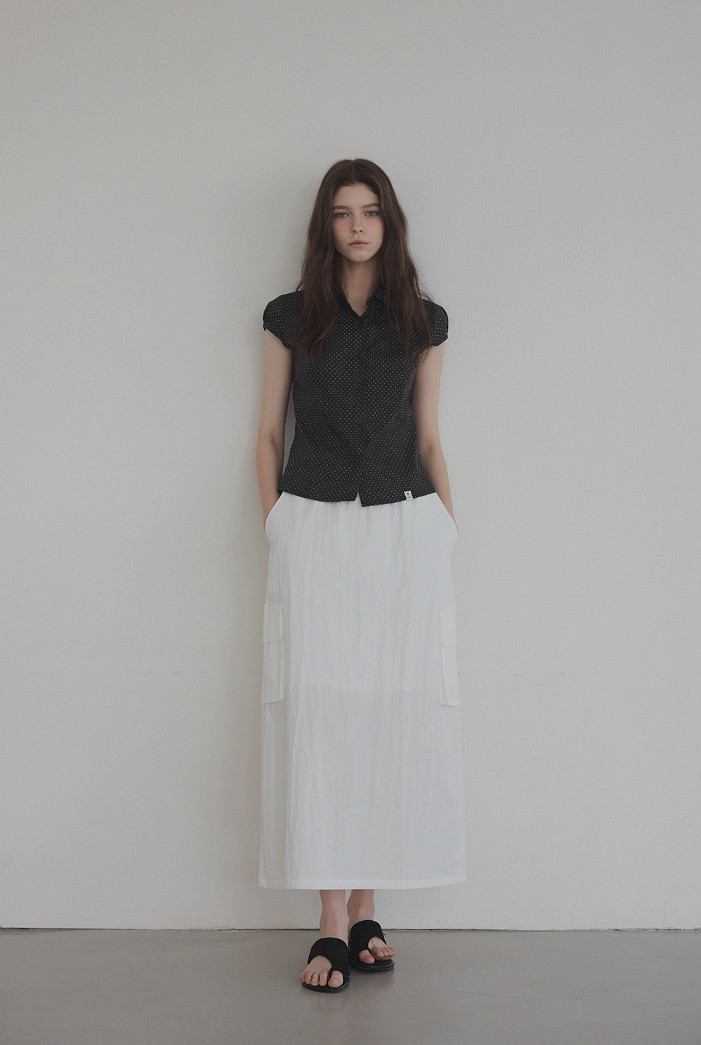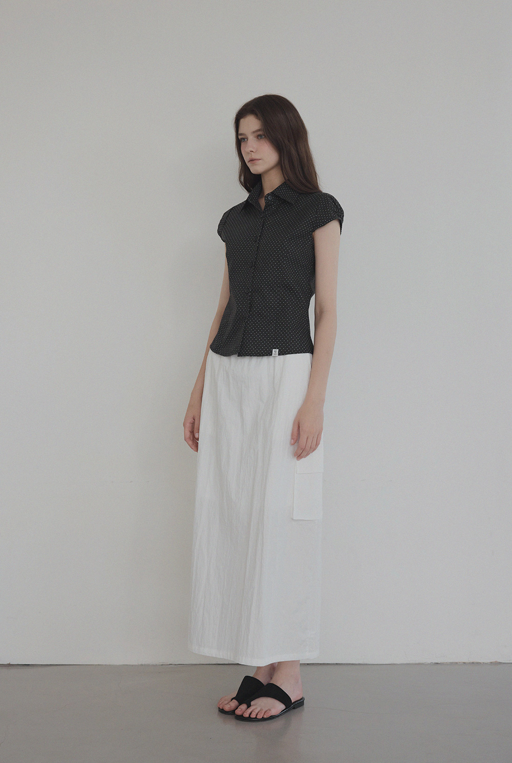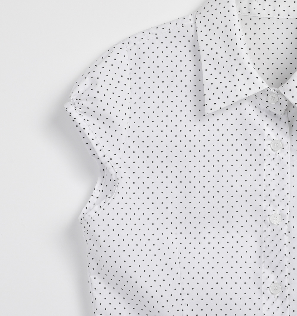 Lipdy Dot Shirring Cap Sleeve Shirt