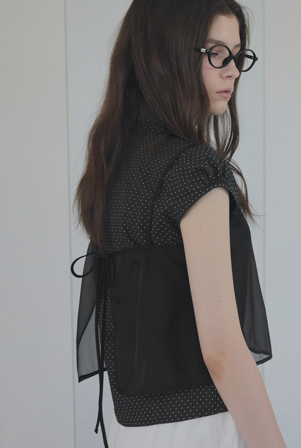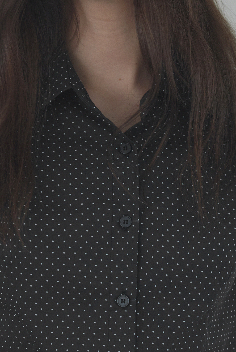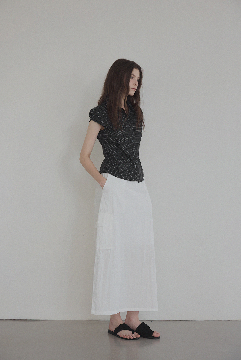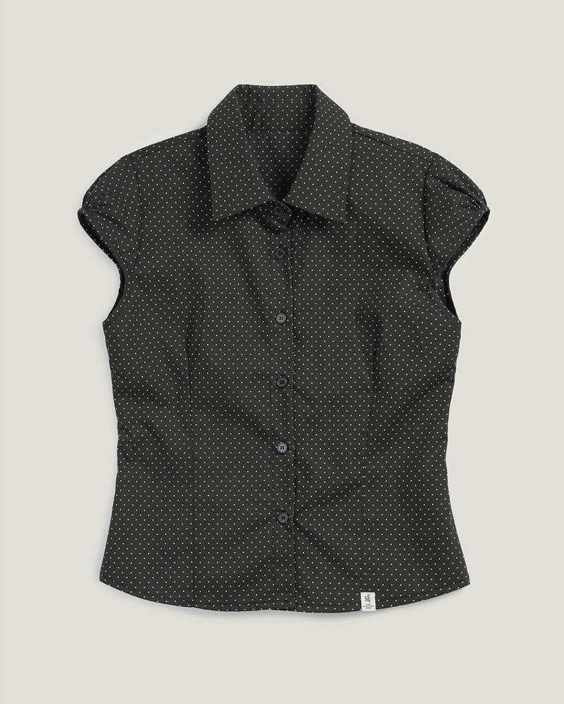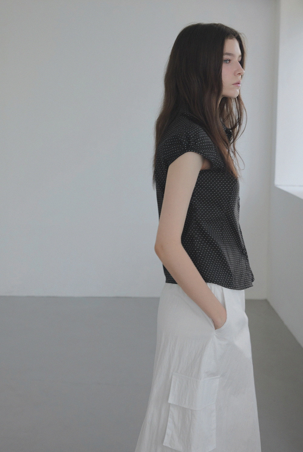 Lipdy Dot Shirring Cap Sleeve Shirt