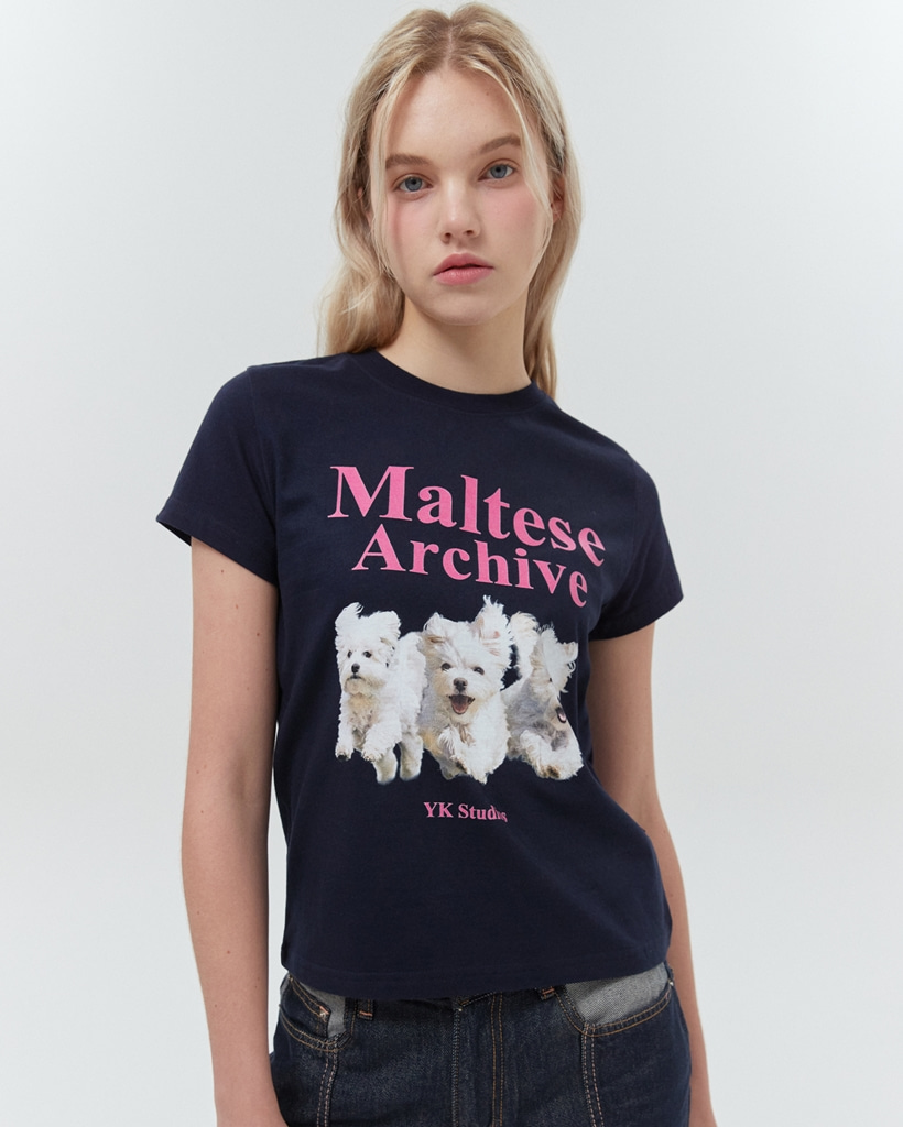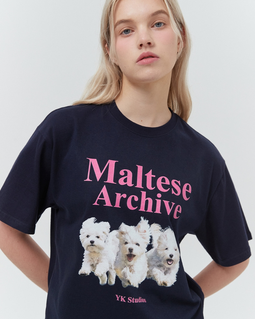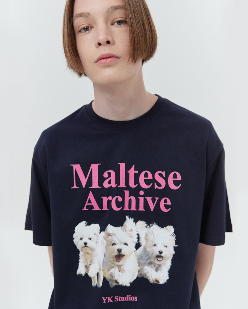 [K-POPアイドル着用] Maltese archive half sleeve tshirt NAVY