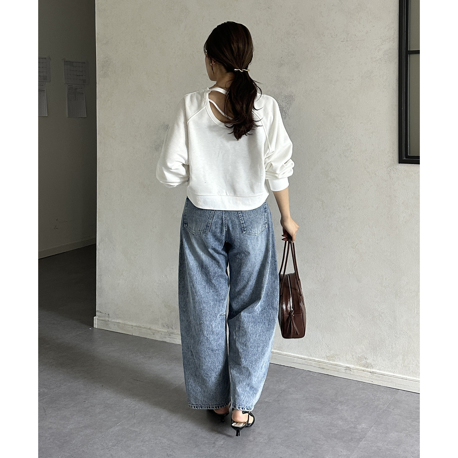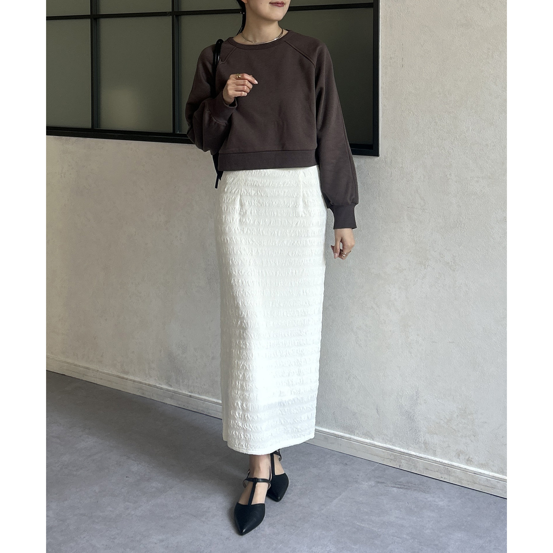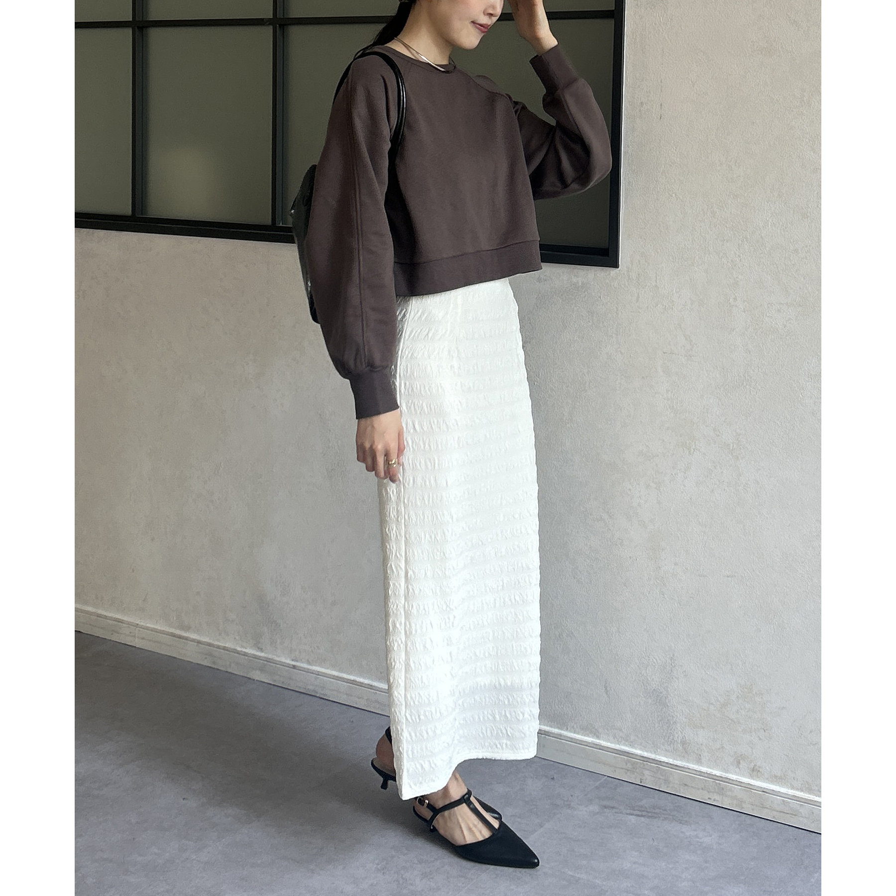 ・短めの丈感なので、ハイウエストのボトムスと合わせたコーデがおすすめ◎