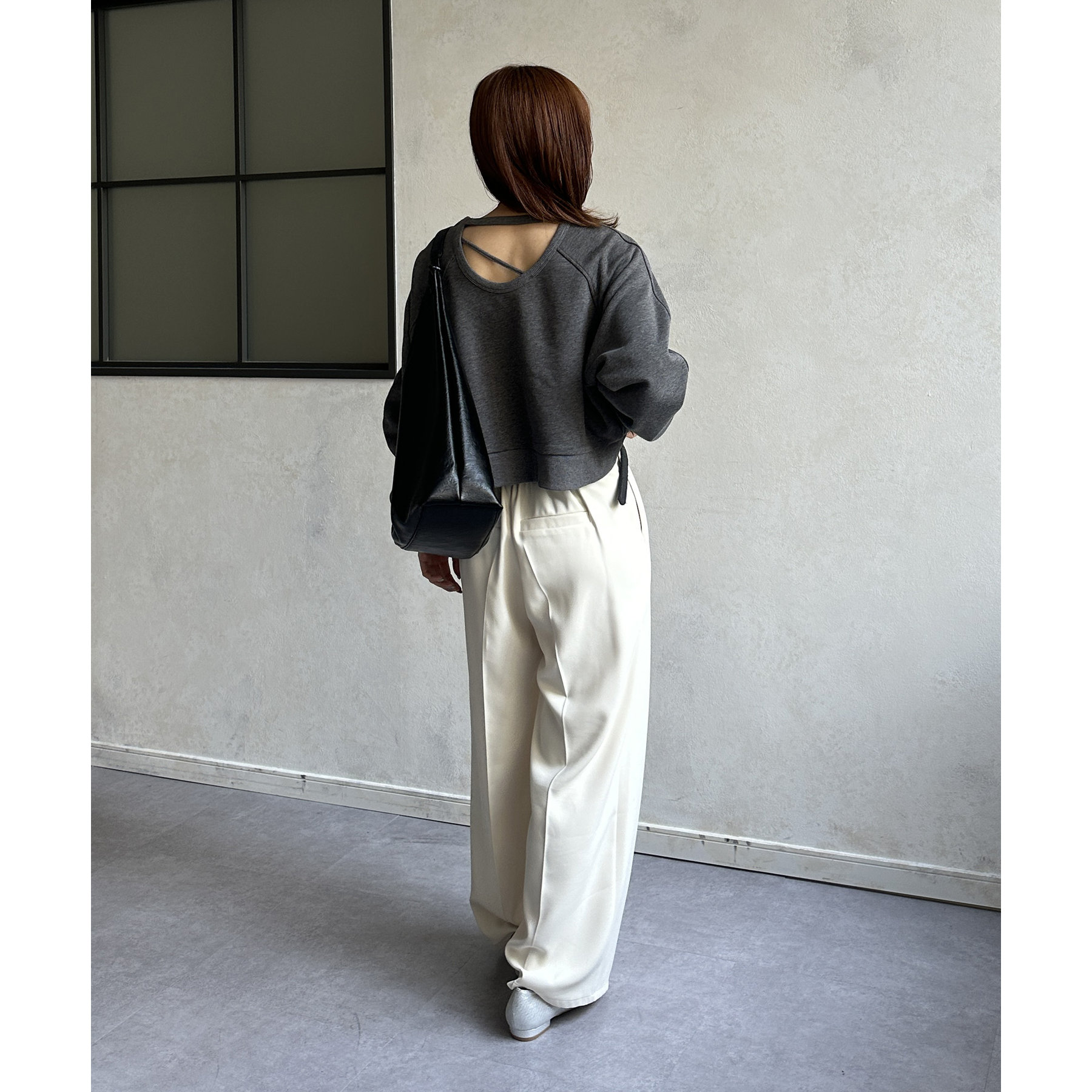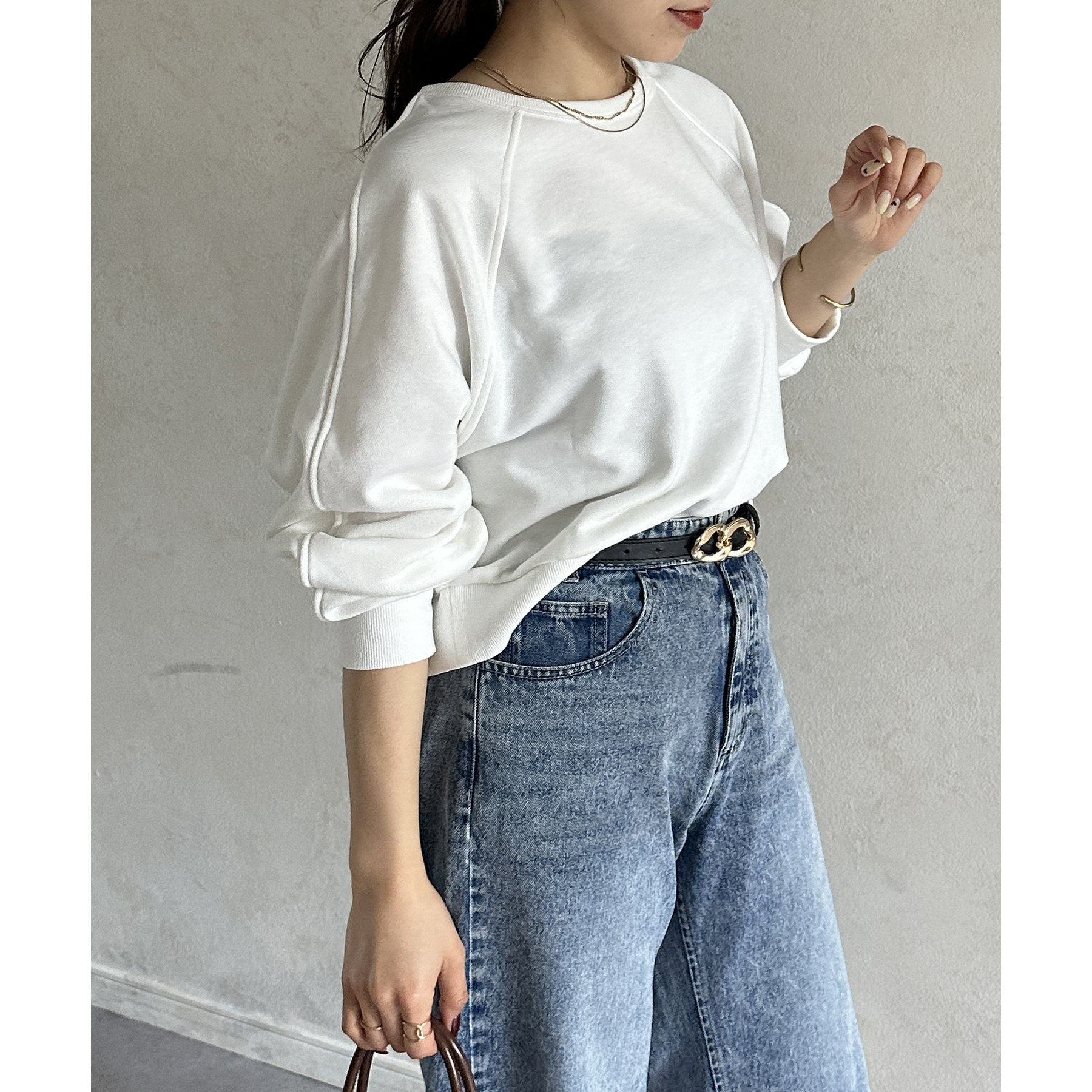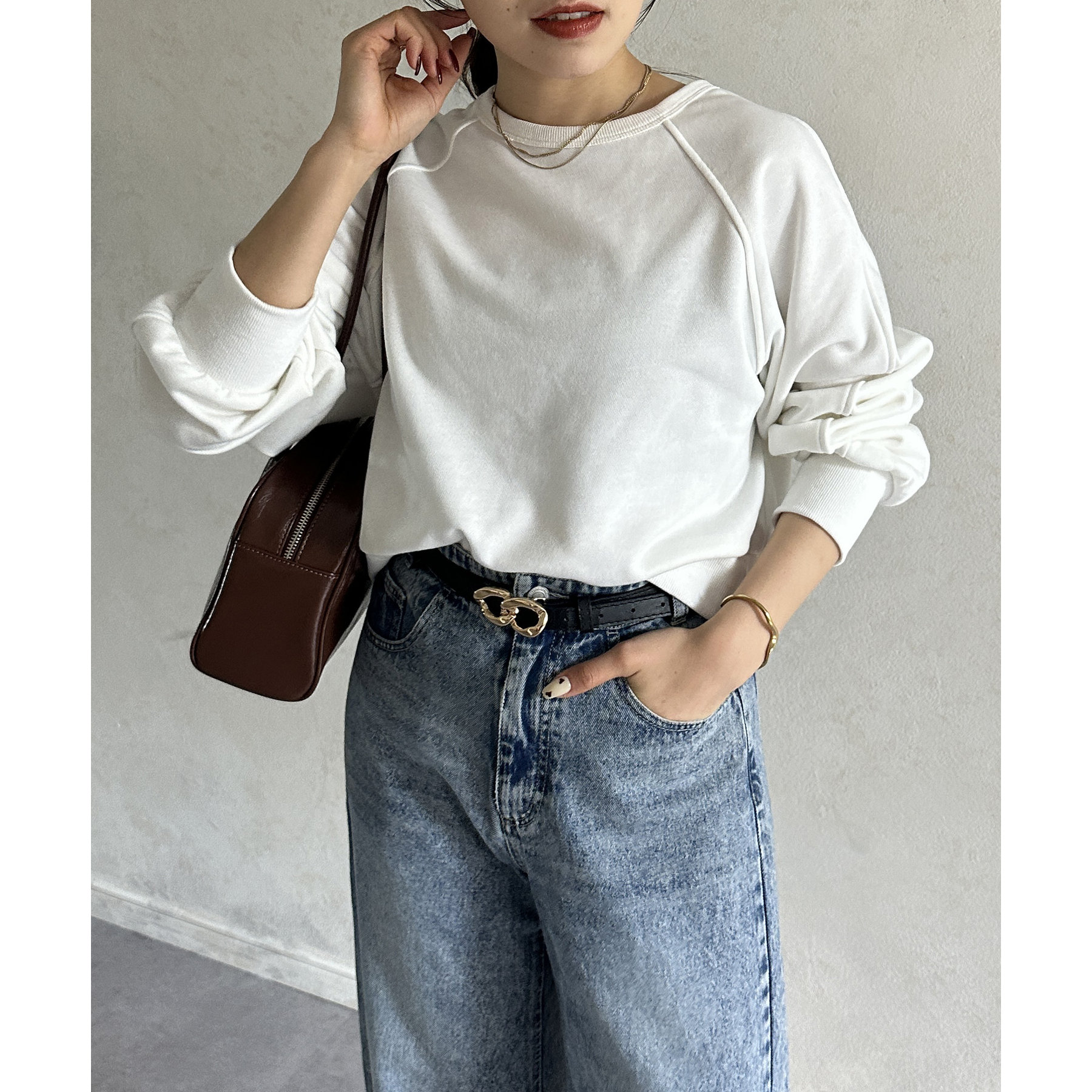 ・短めの丈感なので、ハイウエストのボトムスと合わせたコーデがおすすめ◎