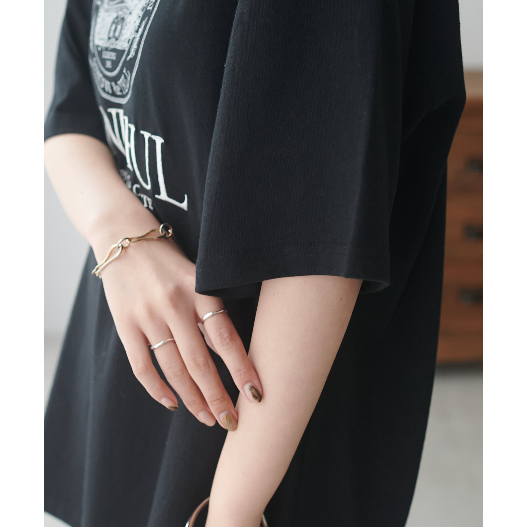ロゴの下には立体感のある刺繍ロゴがあしらわれており、1枚着でもこなれ感を演出するアイテムです。
