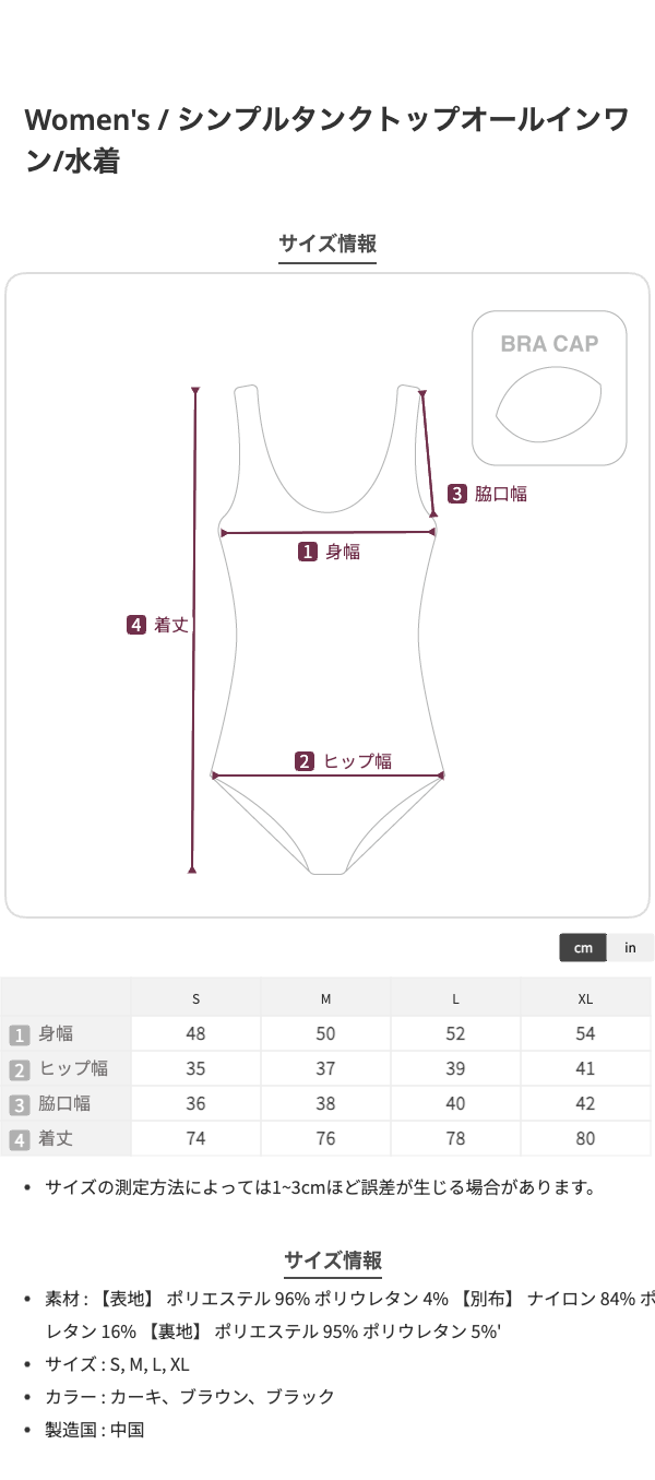 シンプルタンクトップオールインワン/水着