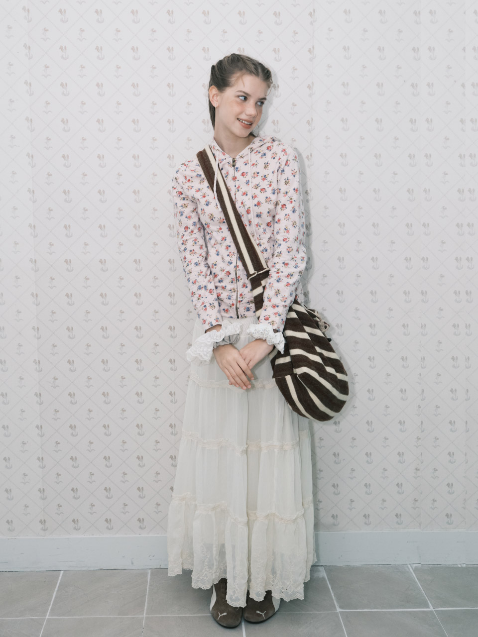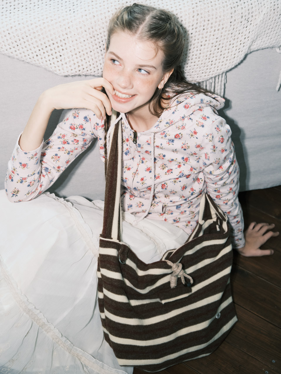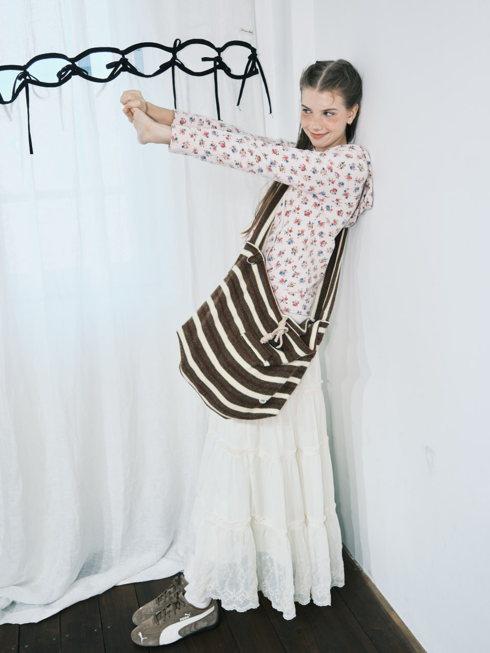 やわらかなパステルストライプ柄が魅力の、cozing(コージング)のスリングバッグです。