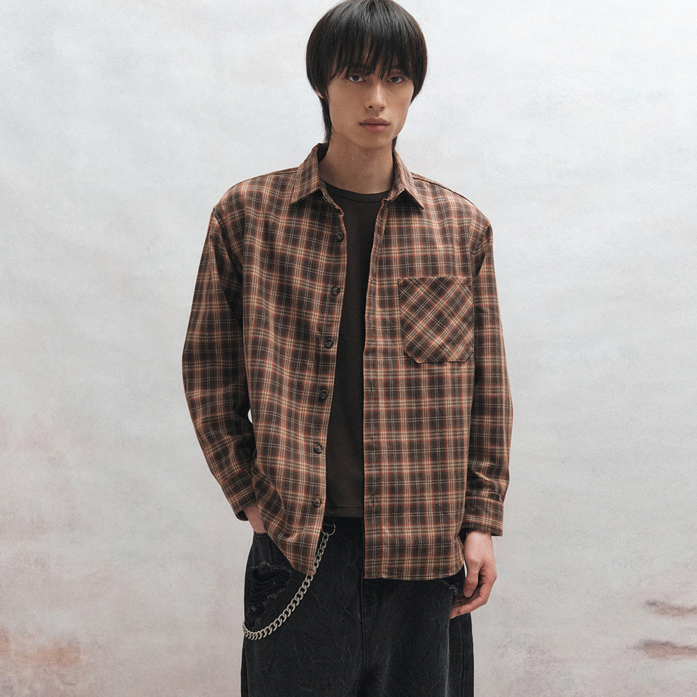 [BU25WSH09-BR] Twill Check Shirt (Brown)