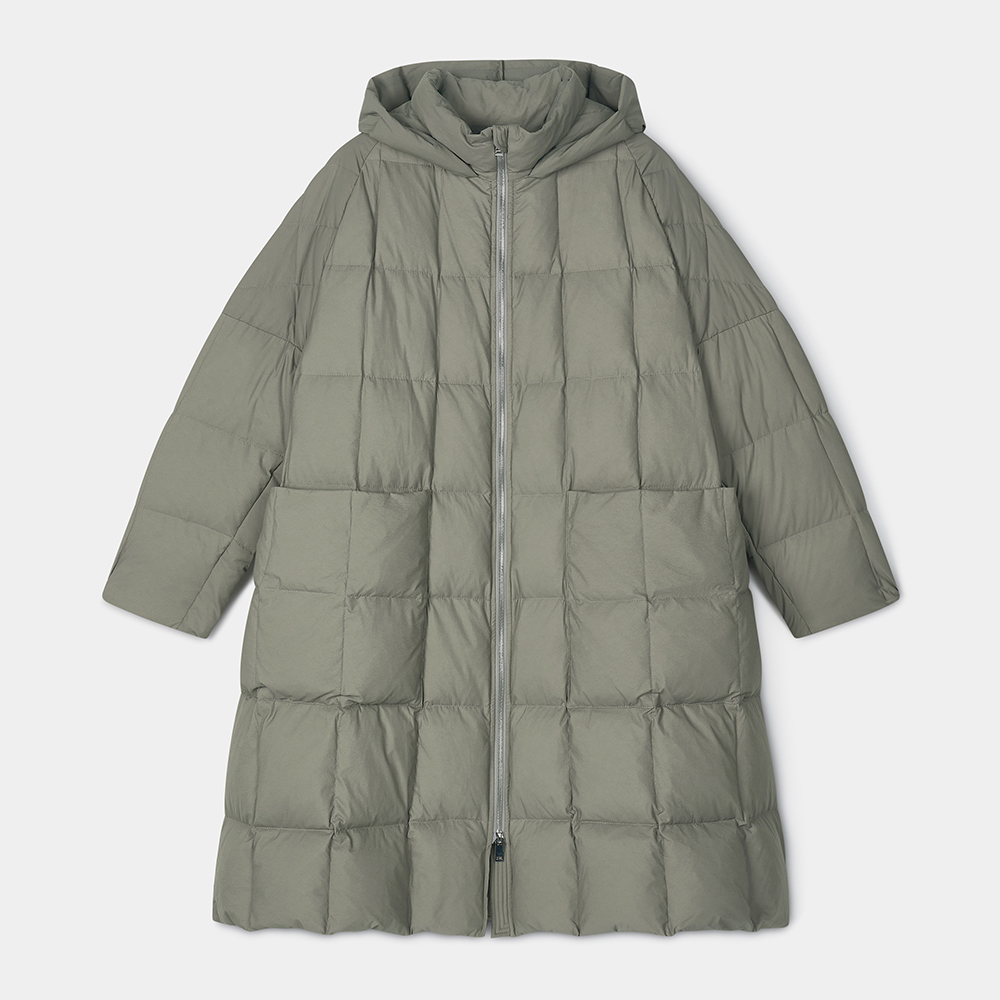 Wide-Fit Hooded Goose Down Long Jumper [Green]