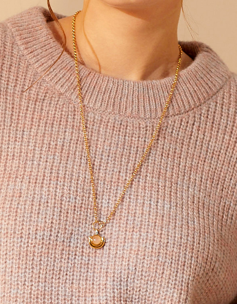 BOLDIÈREのシグネチャーである、光を宿したフォルムのペンダントです。
