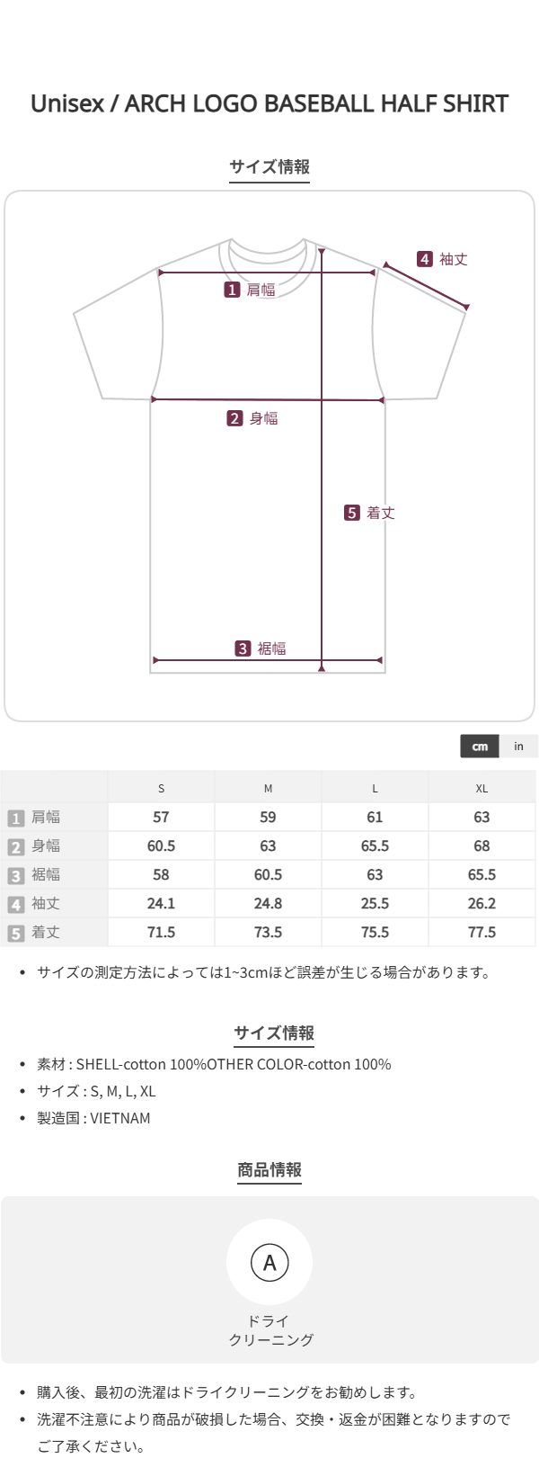 ARCH LOGO BASEBALL HALF SHIRT - Ivory