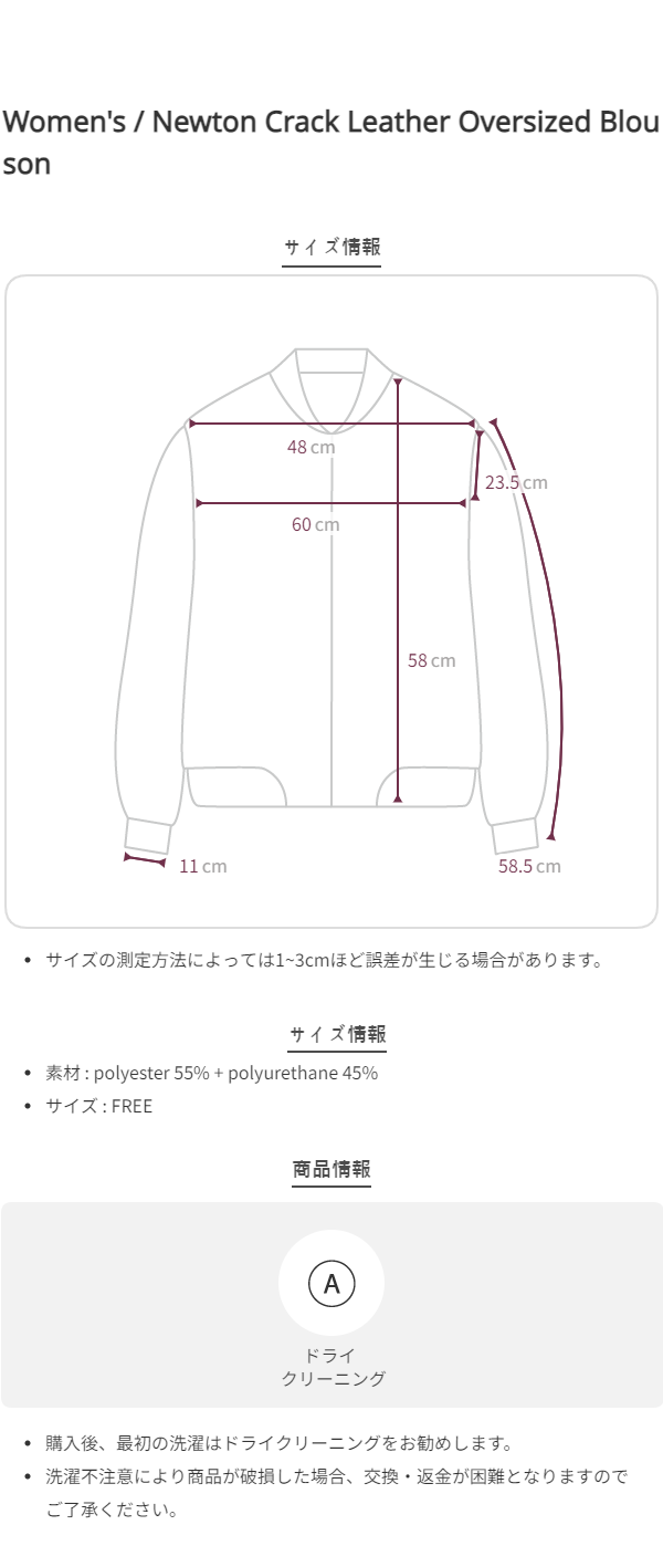 HEIGHT 168cm / BUST 81cm / WAIST 58cm / HIP 83cm