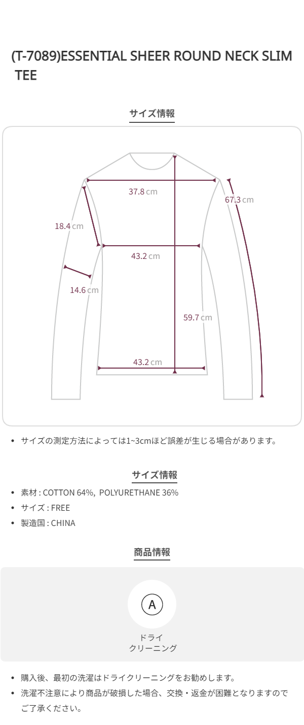 (T-7089)ESSENTIAL SHEER ROUND NECK SLIM TEE