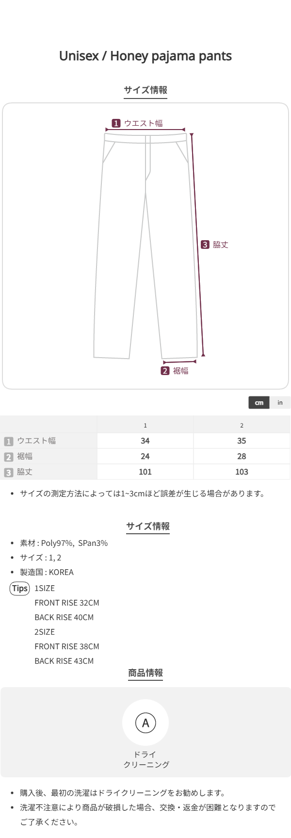 PANTS SIZE