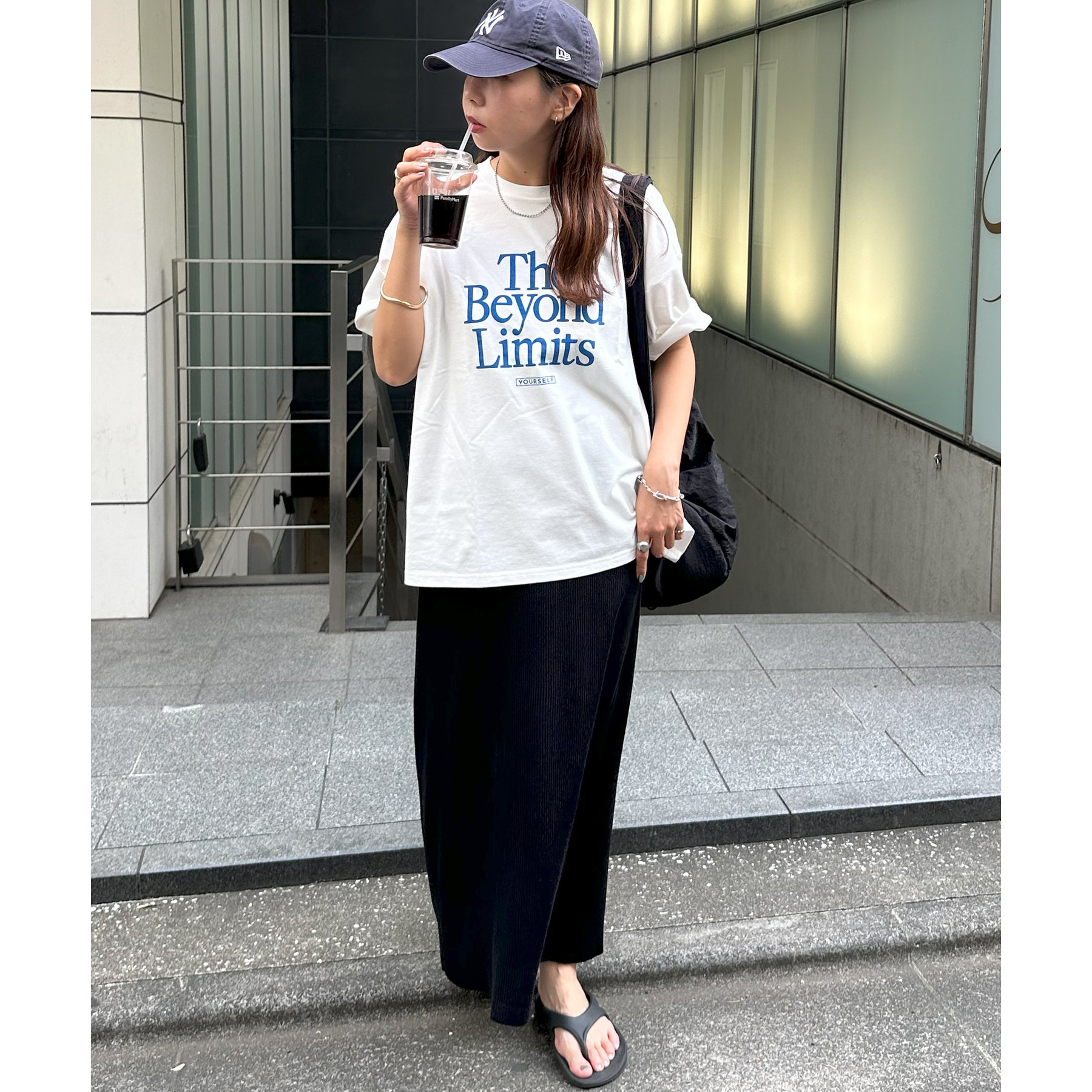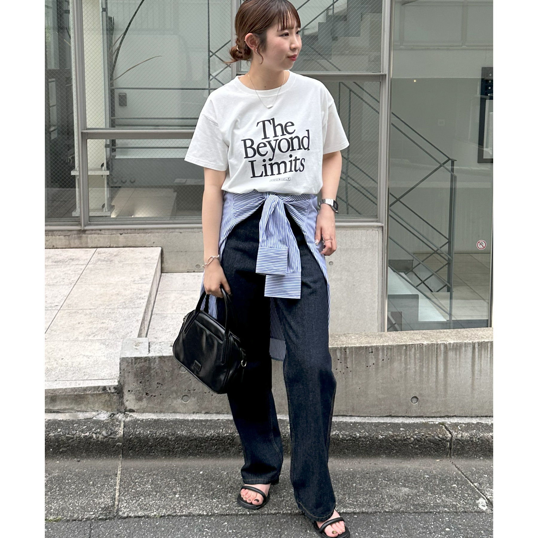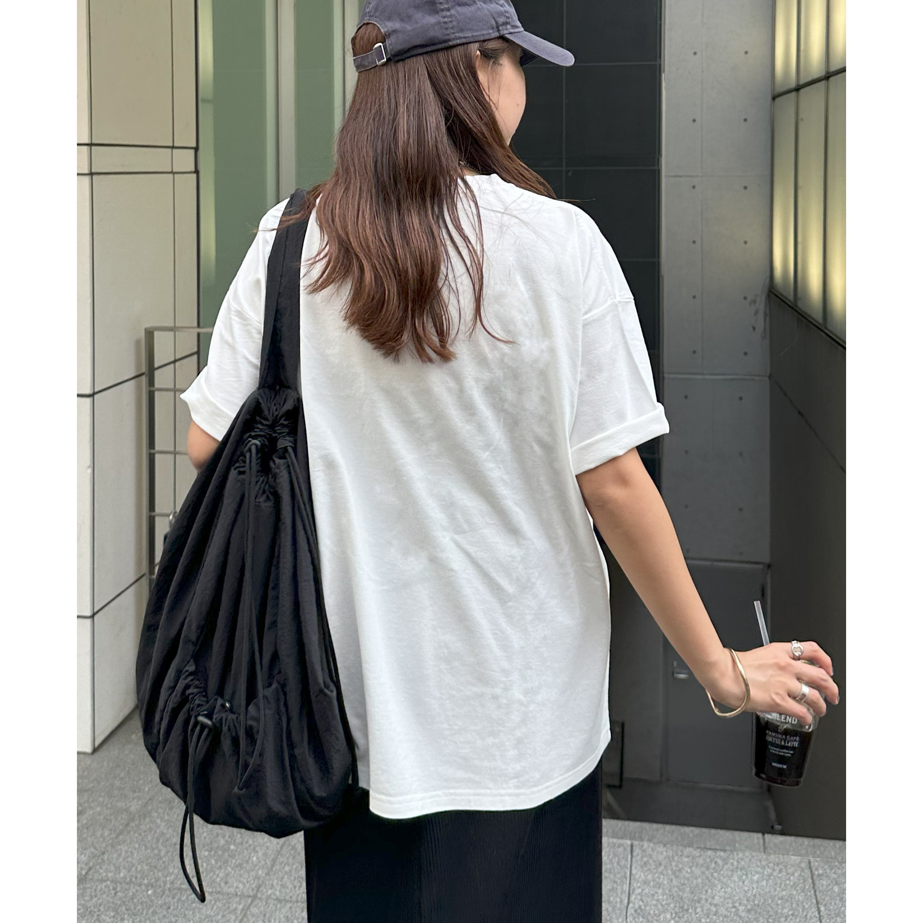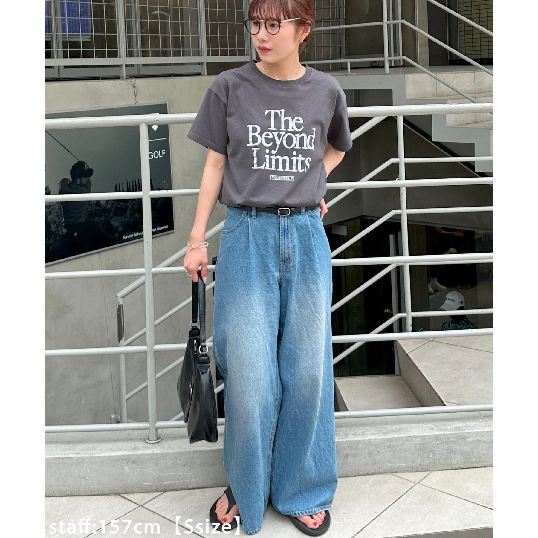169cmメンズスタッフ(Fサイズ着用):全体的にゆとりがあって、今っぽいリラックス感のある着こなしができます。ロゴが大きくて主役になるので、シンプルなボトムと合わせるだけでおしゃれに見えるのが嬉しい!