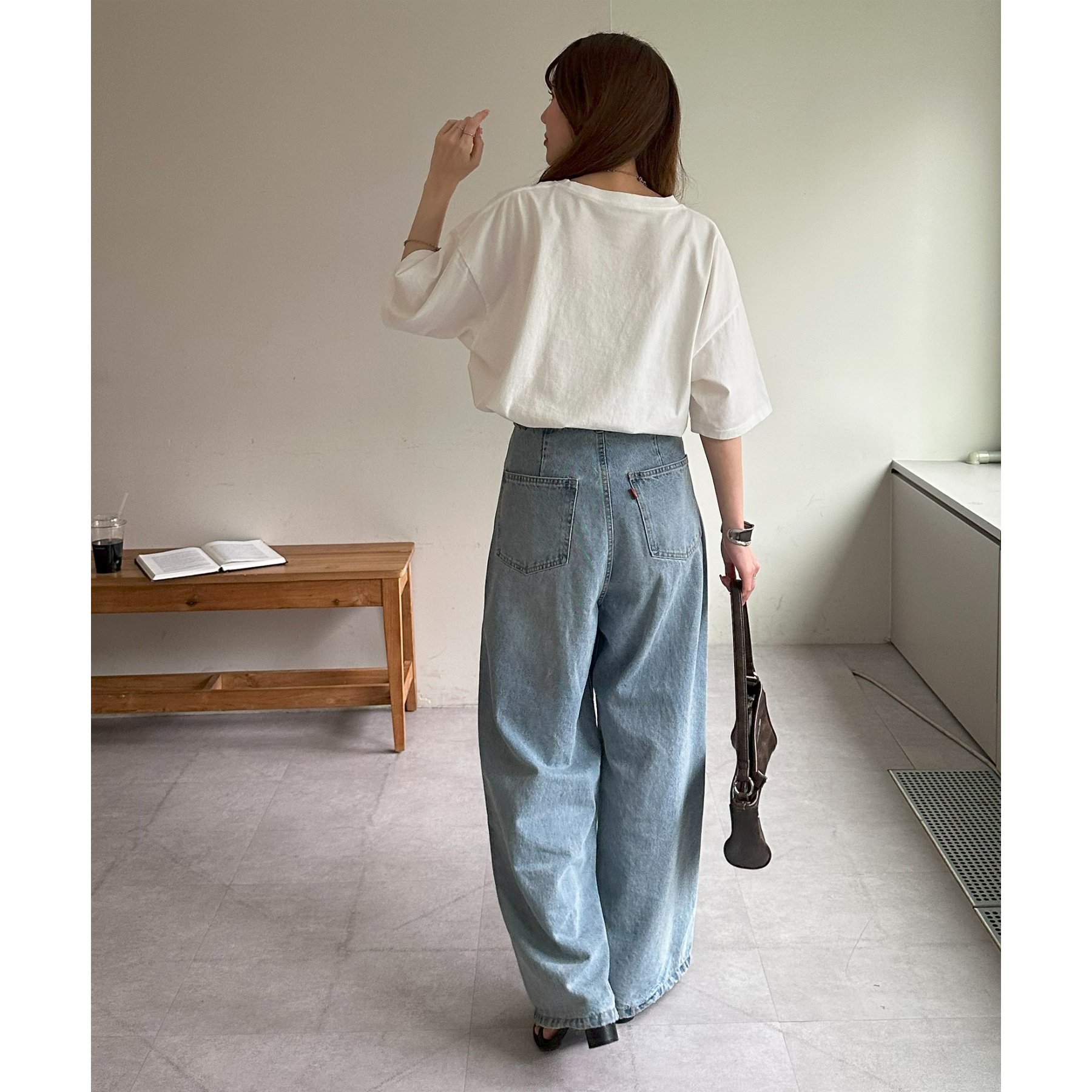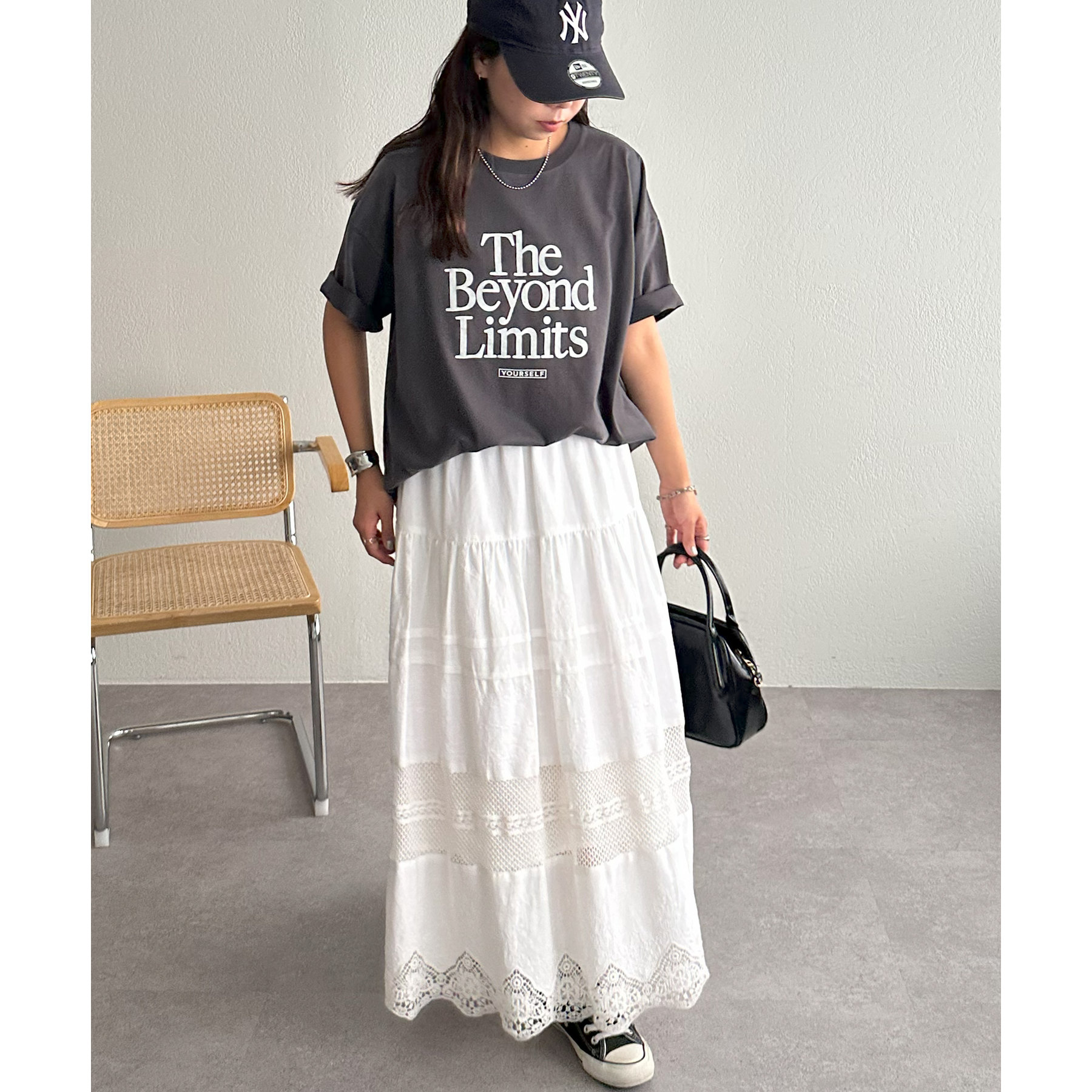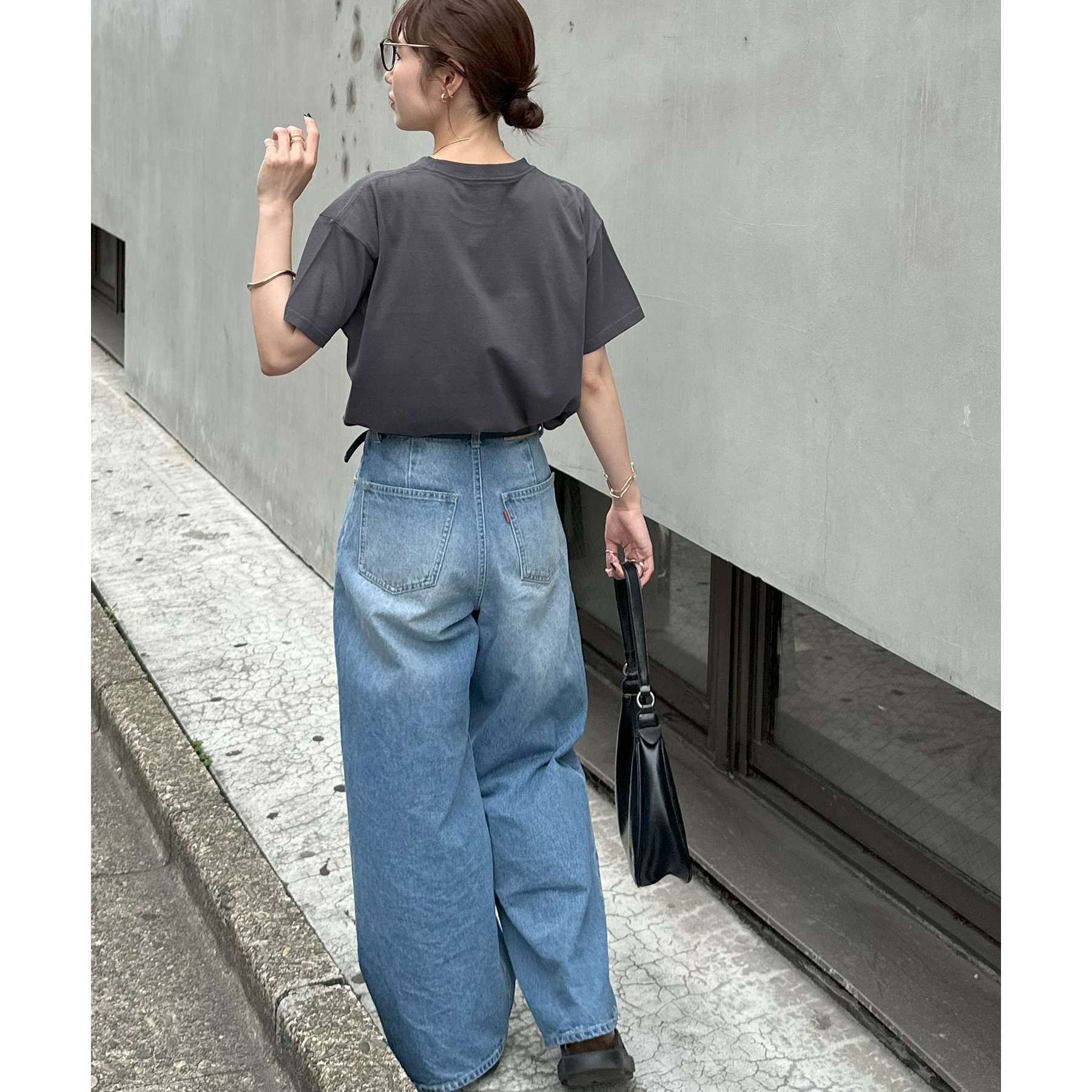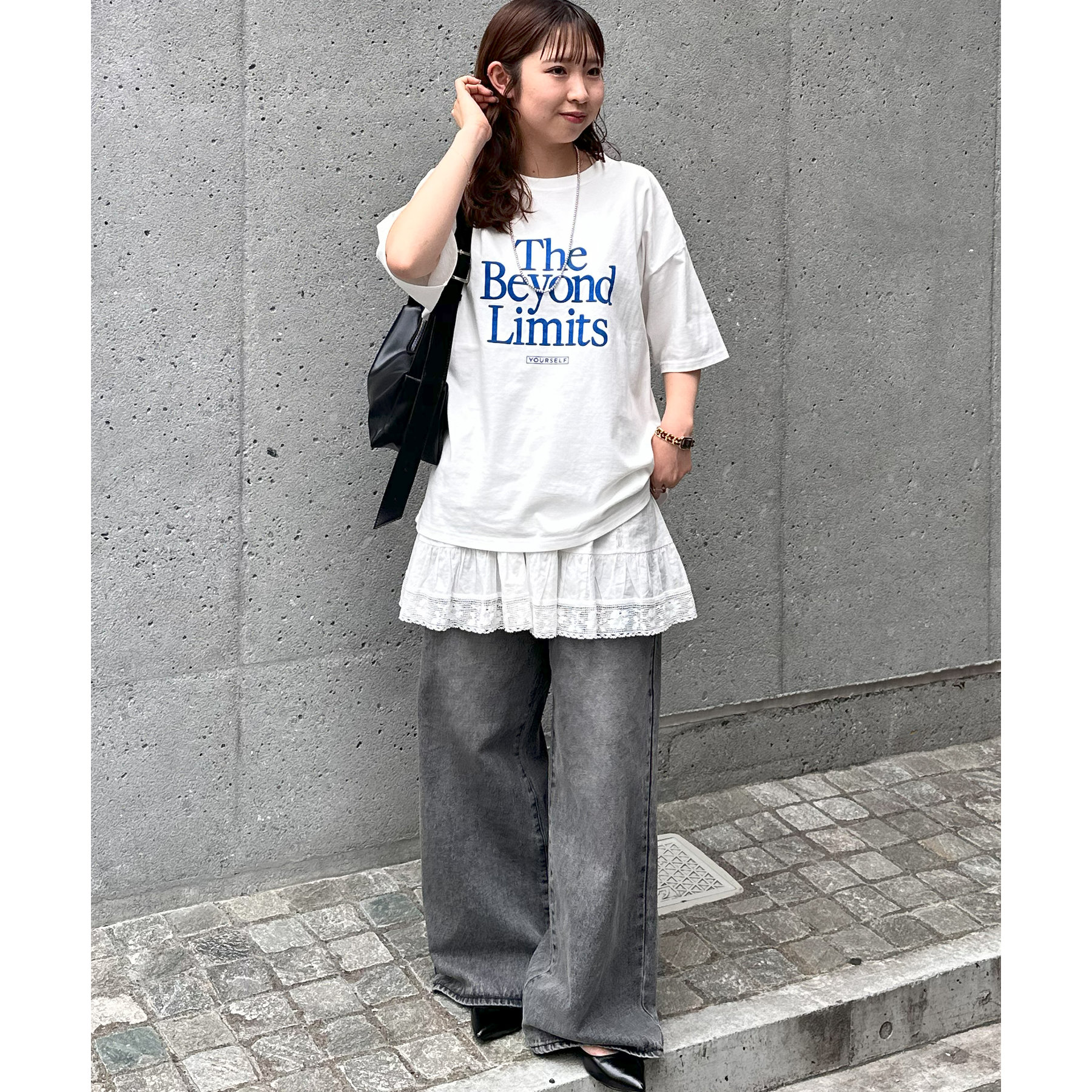 169cmメンズスタッフ(Fサイズ着用):全体的にゆとりがあって、今っぽいリラックス感のある着こなしができます。ロゴが大きくて主役になるので、シンプルなボトムと合わせるだけでおしゃれに見えるのが嬉しい!