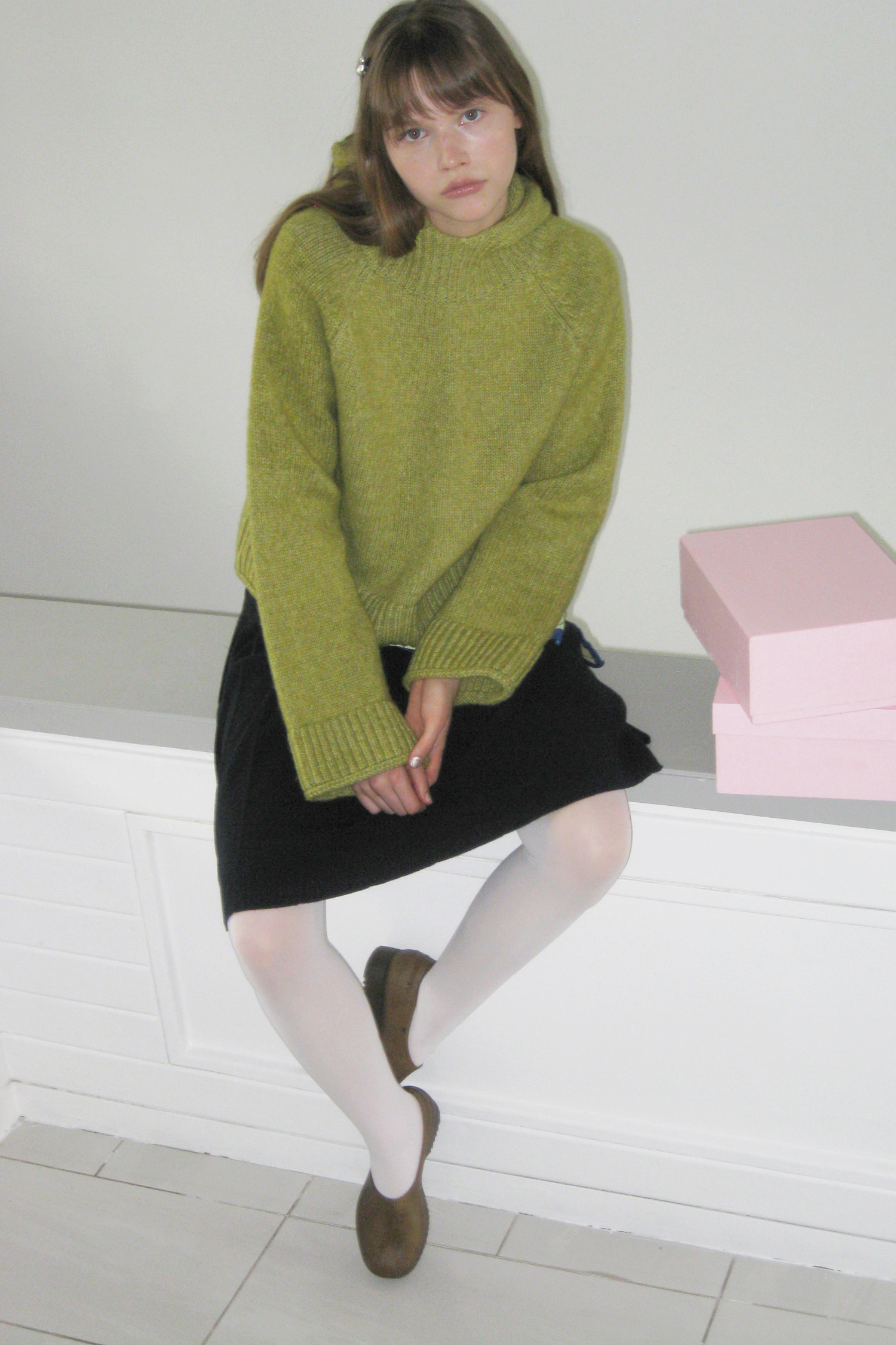Wool Blend Hoodie Knit (Olive)