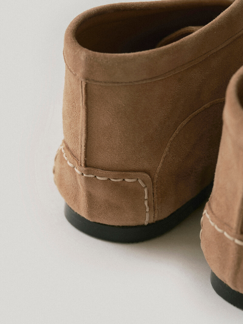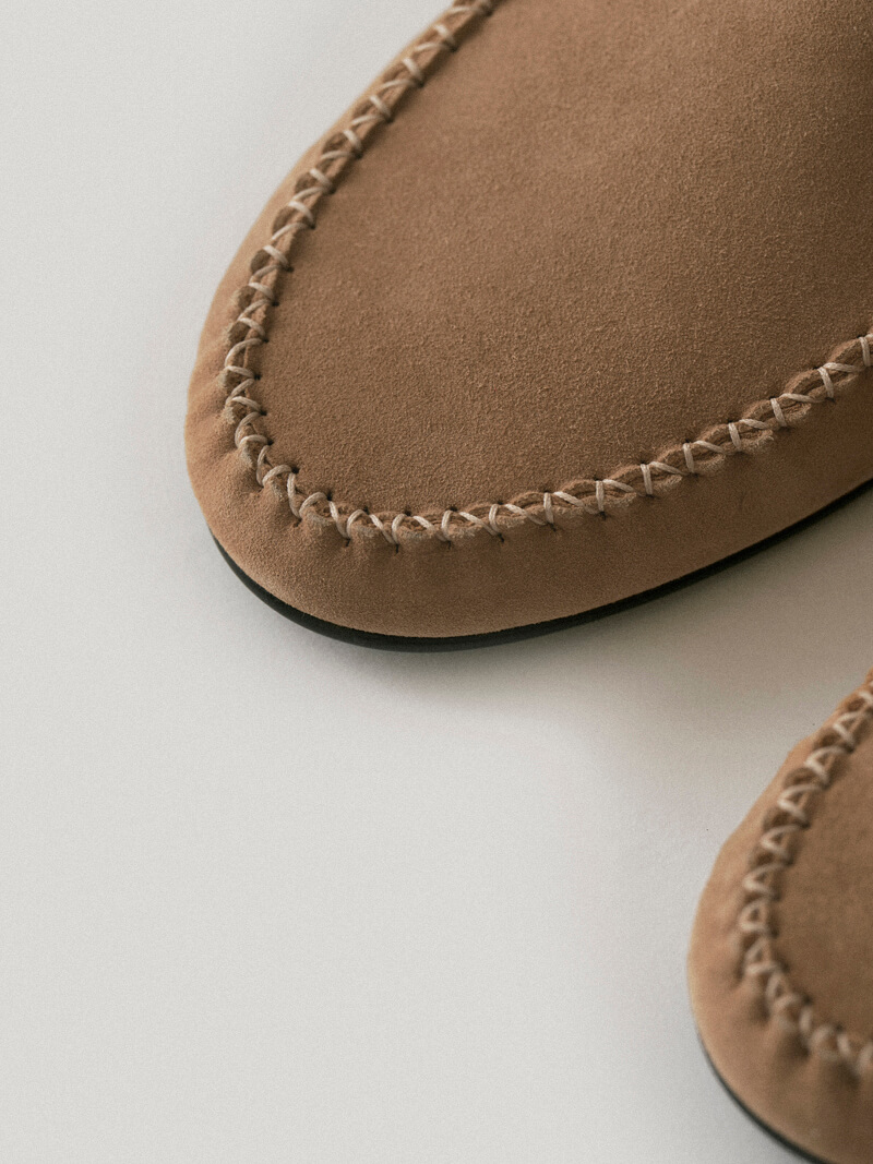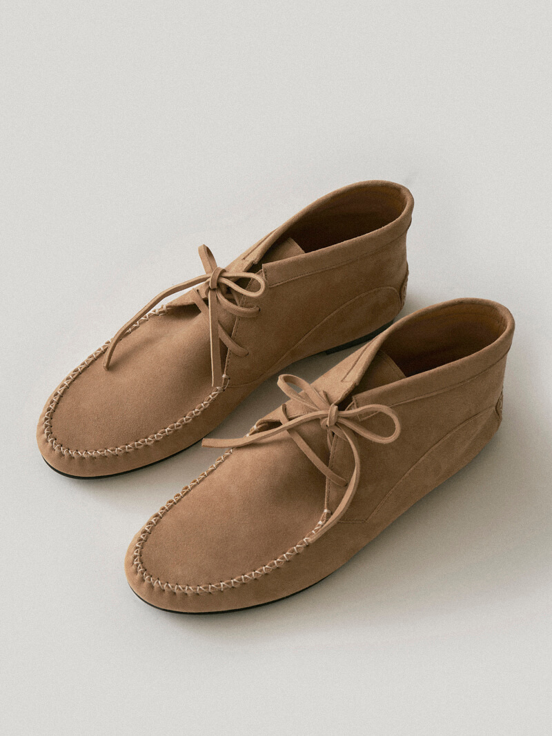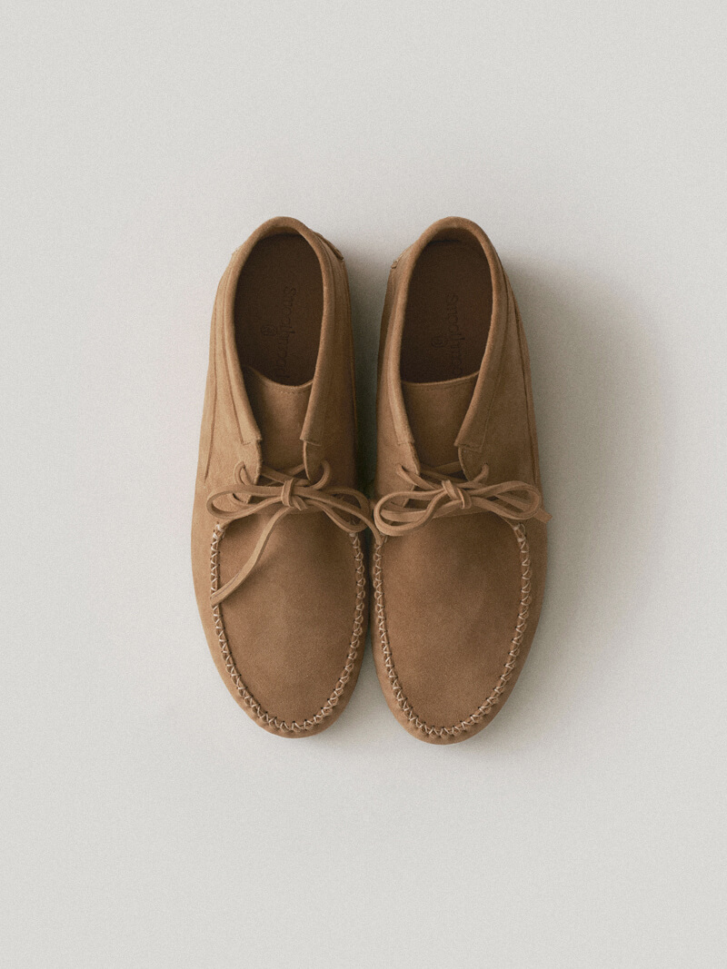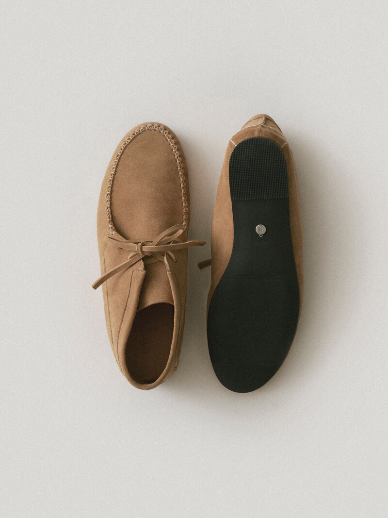 ドーソン・スエード・モカシンはアメリカン・インディアンの靴から派生し、快適なフィット感を提供します。モカシンは従来のモカシンとは異なる感触で、ハイライズの足首デザインとレースアップのディテールが特徴です。モカシンは外側のシェルが柔らかいラムスキンスエードで作られ、ふくらはぎの皮でフィット感を保っています。ラウンドトゥとバックカウンターにはステッチポイント付きのフリームードがあり、靴底には滑らかなムードシンボルロゴペンダントがあり、小さなエッジを作っています。シェルラムスキンスエード内側の肌のふくらはぎの皮膚快適なラバーアウトソール、レースアップの細かいステッチポイント*ドーソンモカシンのサイズを推奨します*ラムスキンスエード素材は本革の性質上、しわや斑点で構成されています。 色の違い、木目の痕、腱、傷、カット仕上げ部分でのパウダーの落下などがあります。汚染やオチチニストのリスクがあり、湿気(雪や雨)には注意が必要です。スエードの性質上、モニター、日光、照明によって色が異なることがあります。製品の性質上、靴のかかとやアウトソールに小さな傷やシミが残ることがあるため、ご注意ください *1:1 本製品はカスタムメイド製品であり、注文後にキャンセル・交換・返品・返金はできません。カスタム生産期間は10〜14営業日かかります