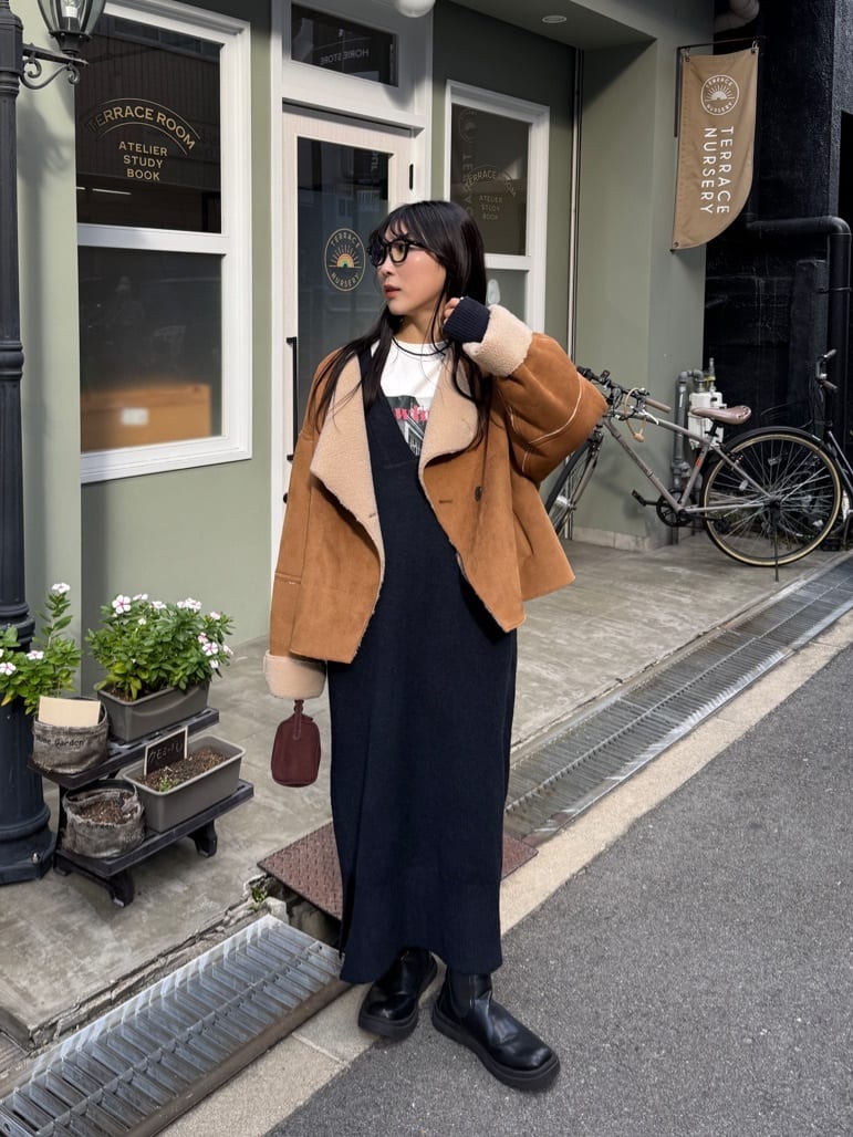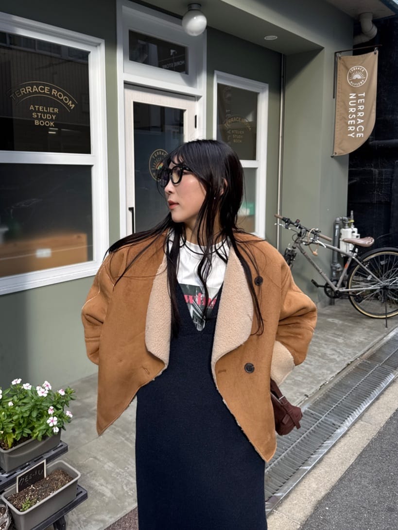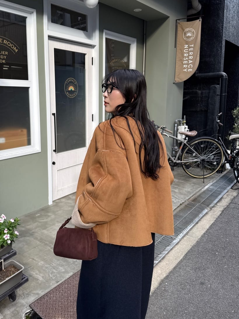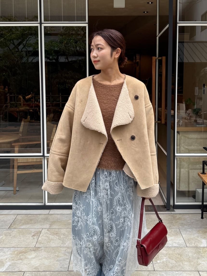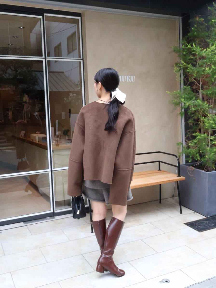 フェイクムートンノーカラージャケット