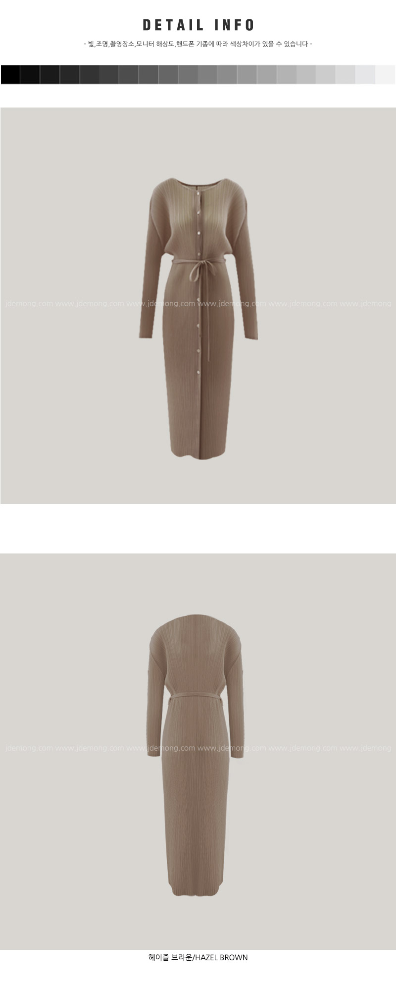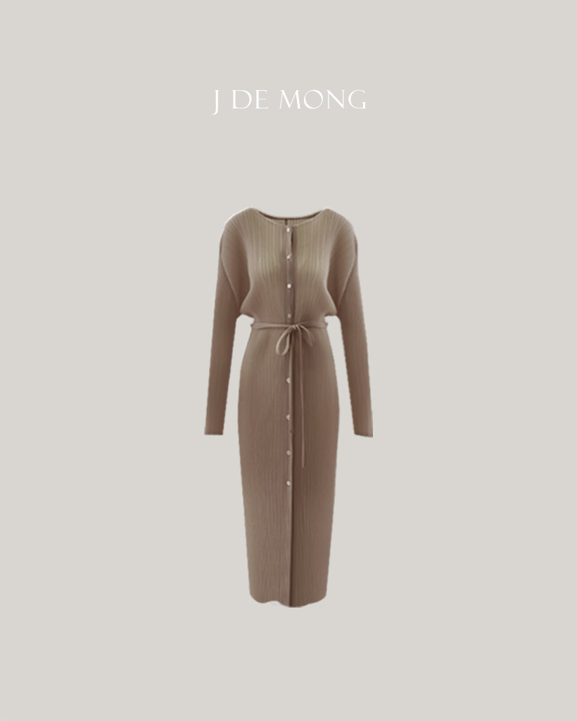 [PLEATS] Fluor Button Round Long Cardigan - Hazel Brown
