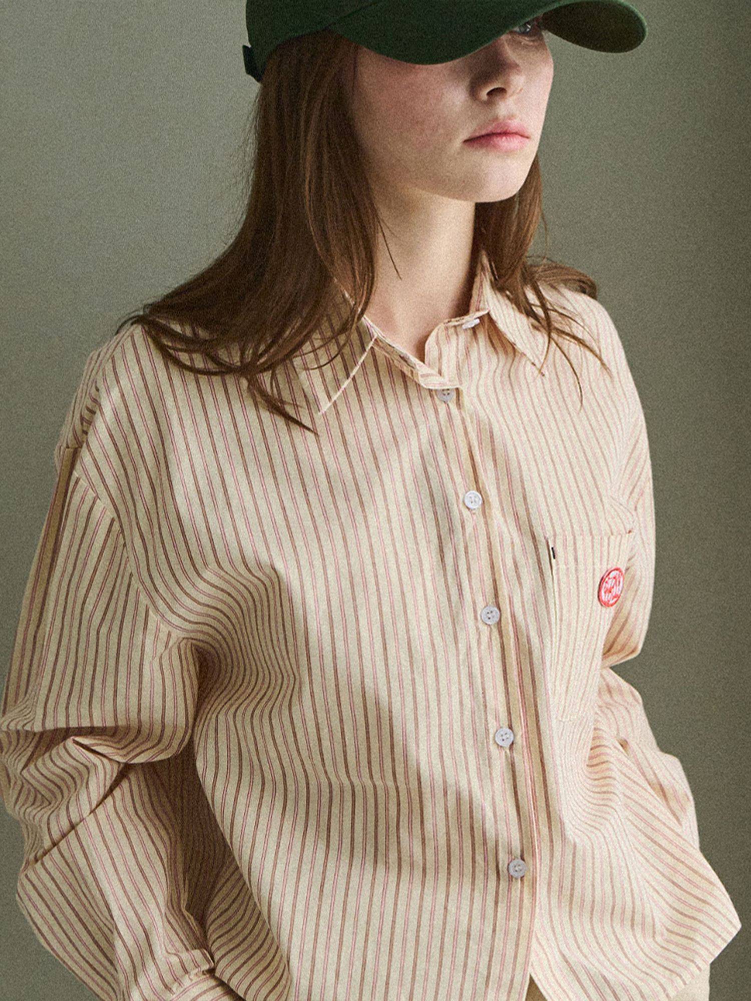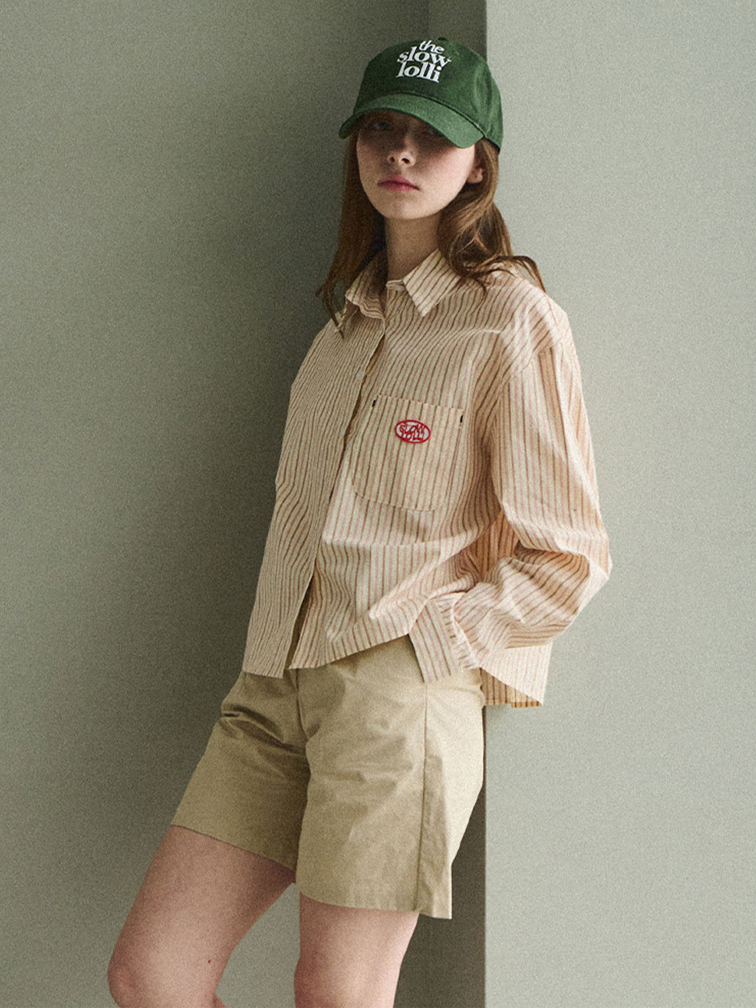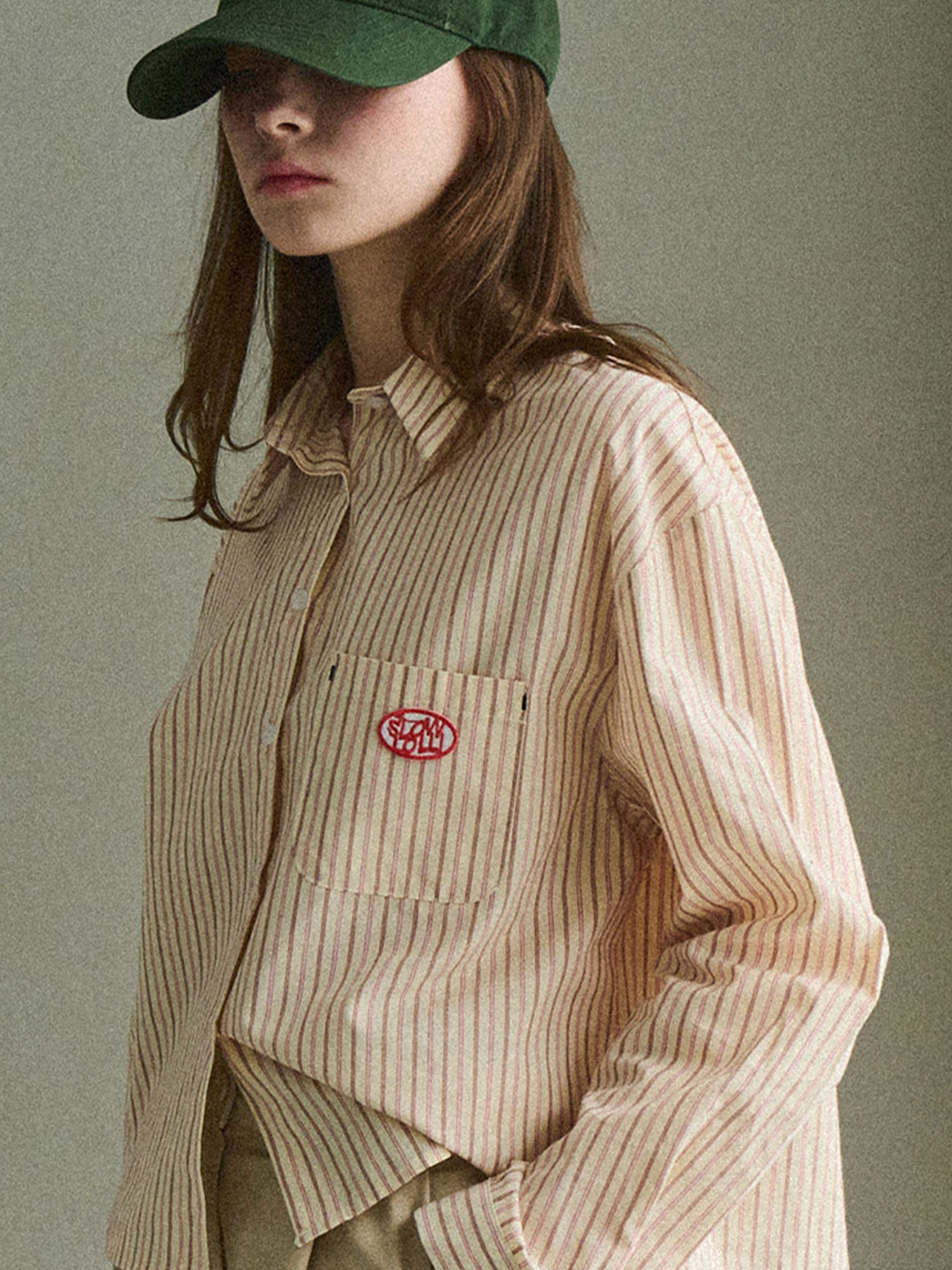 Stripe basic crop shirt - Pink