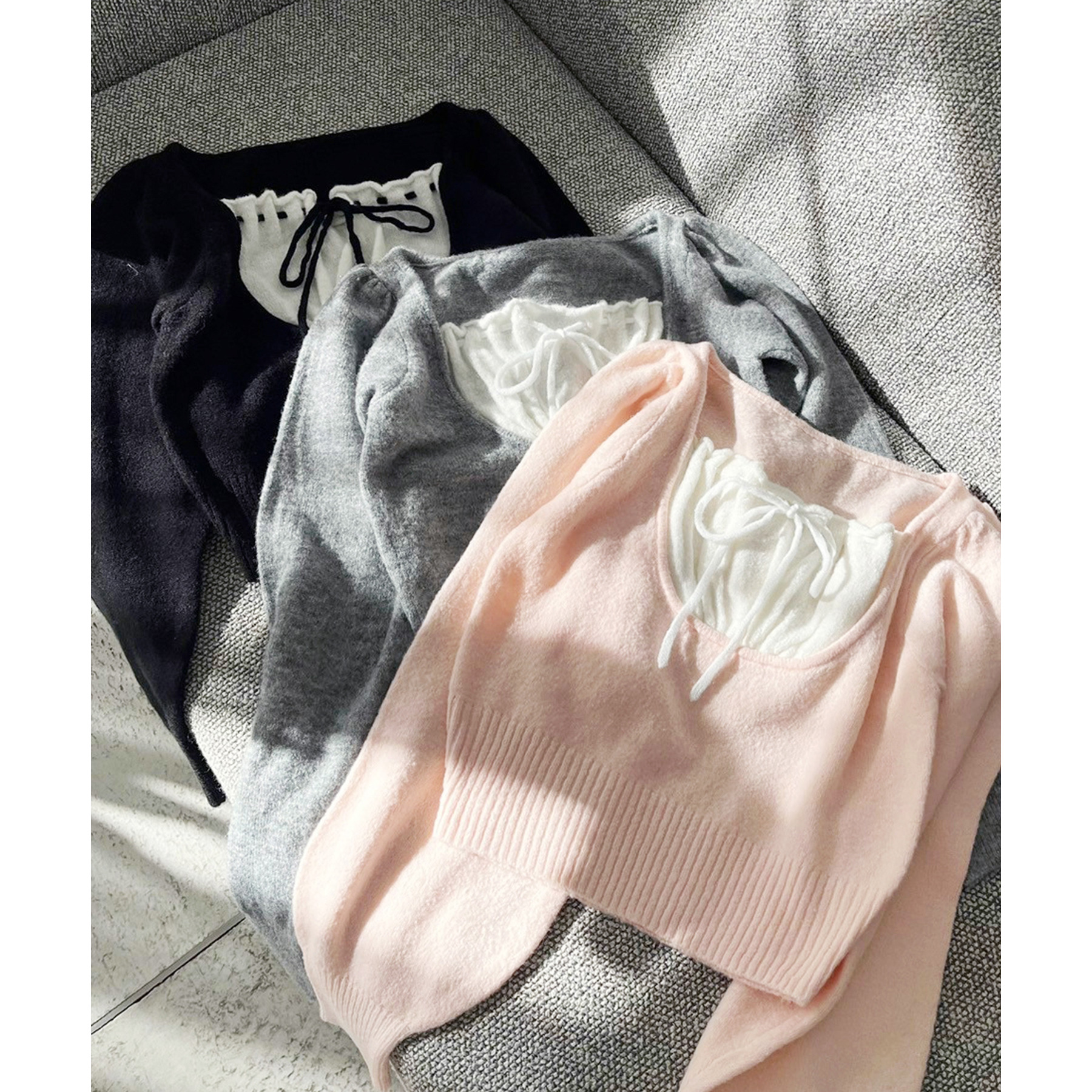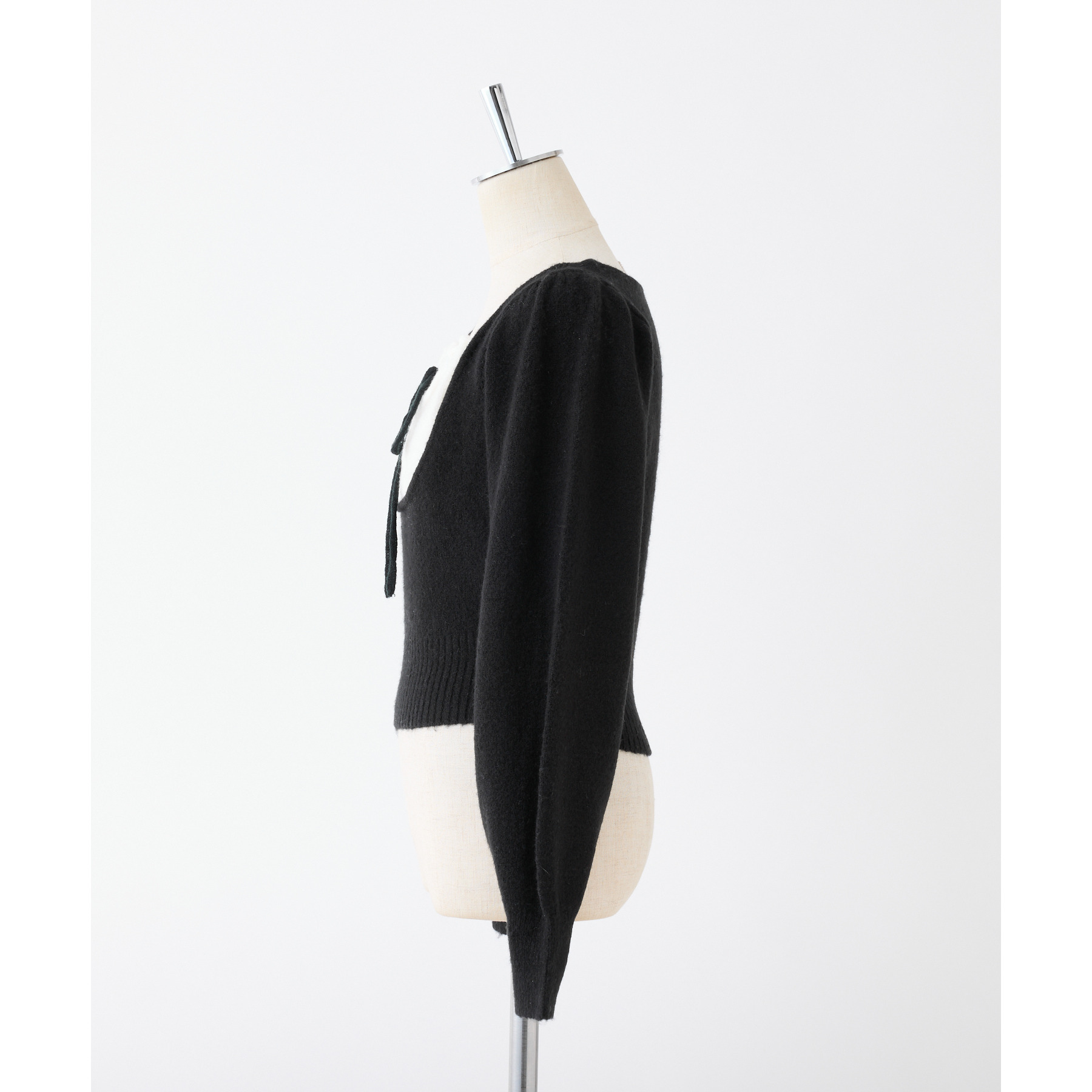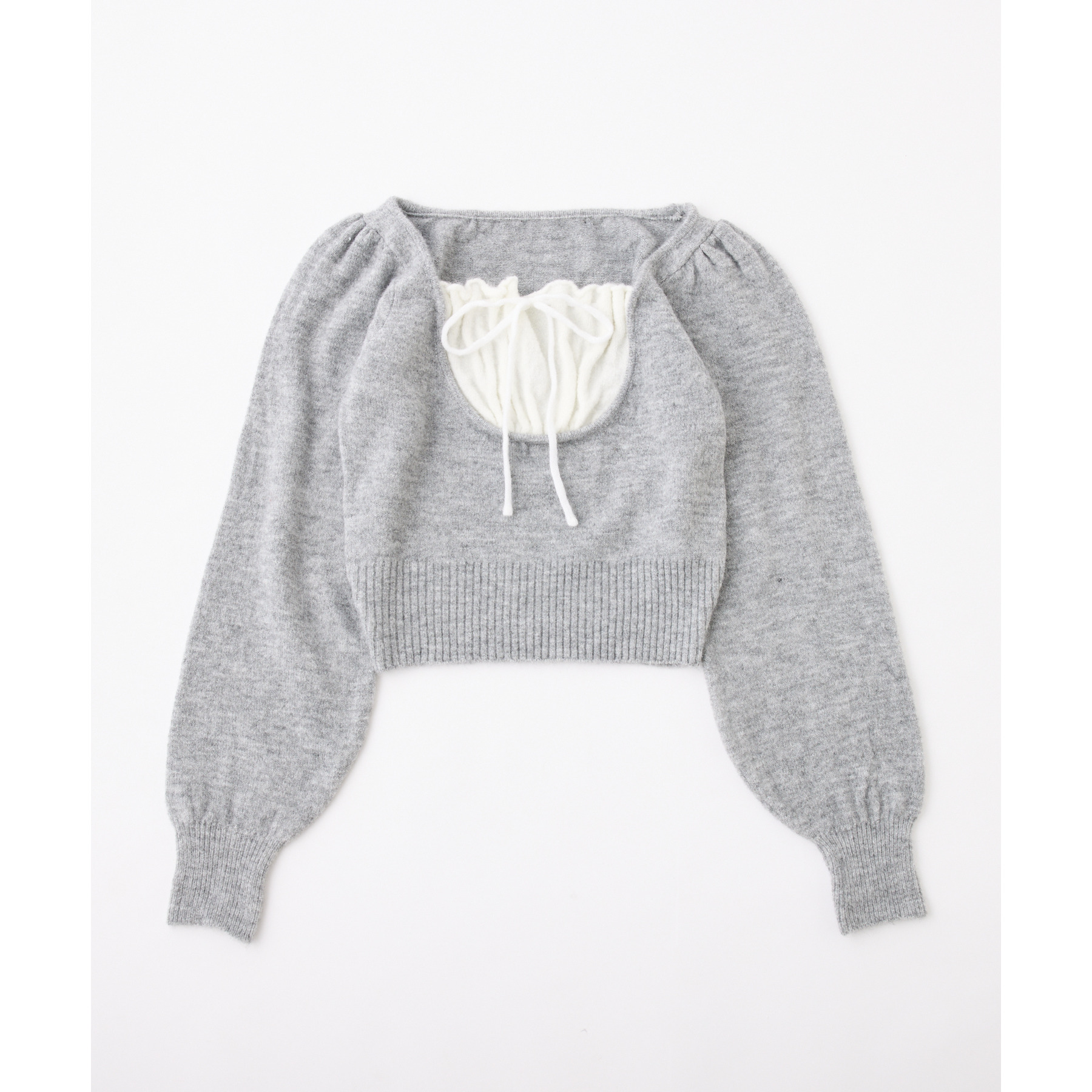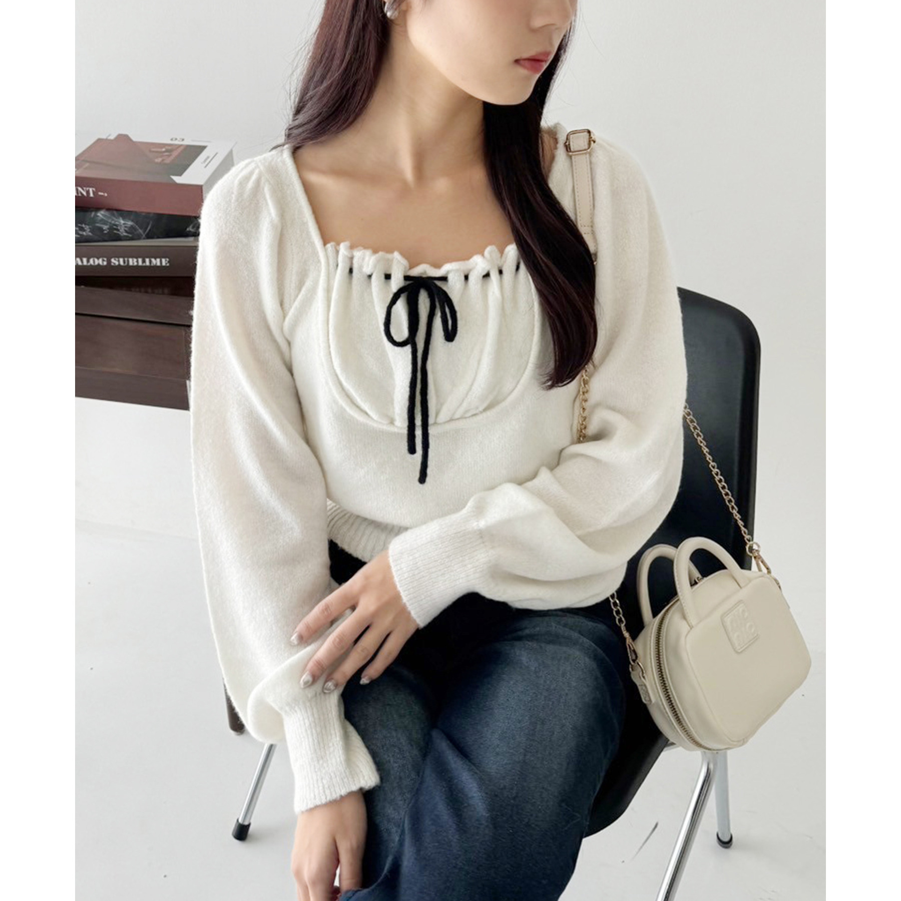 胸元にはリボンを施し、シンプルなデザインの中に甘さもプラスされたアイテムです。