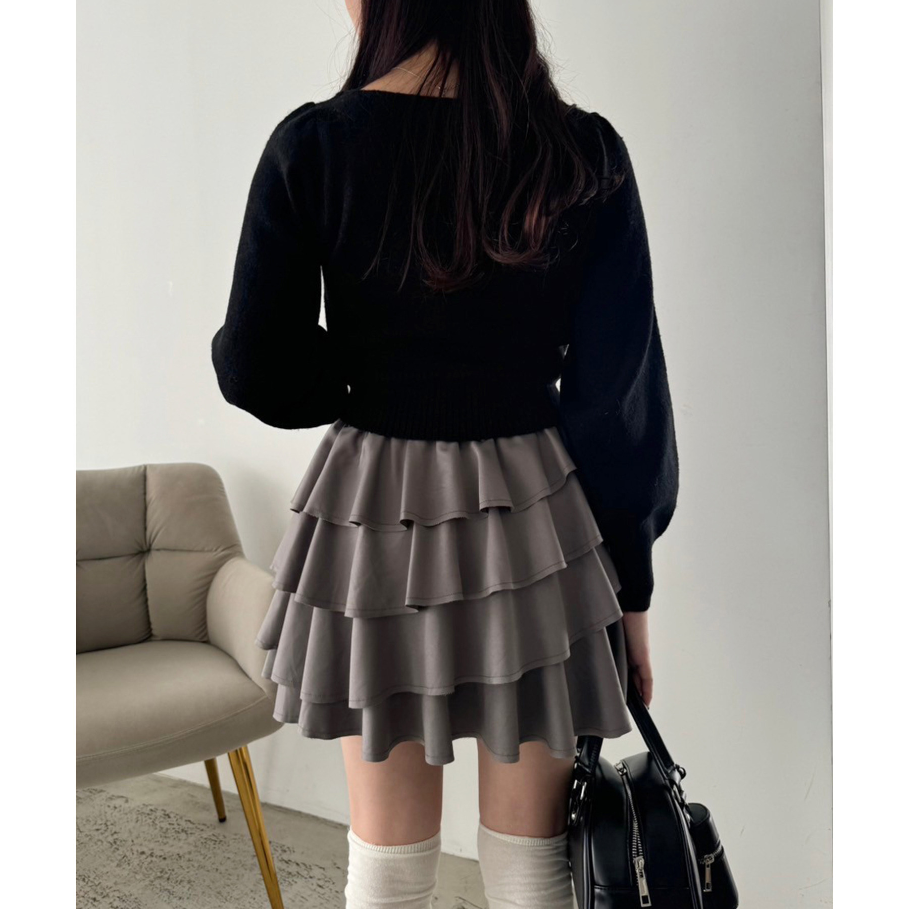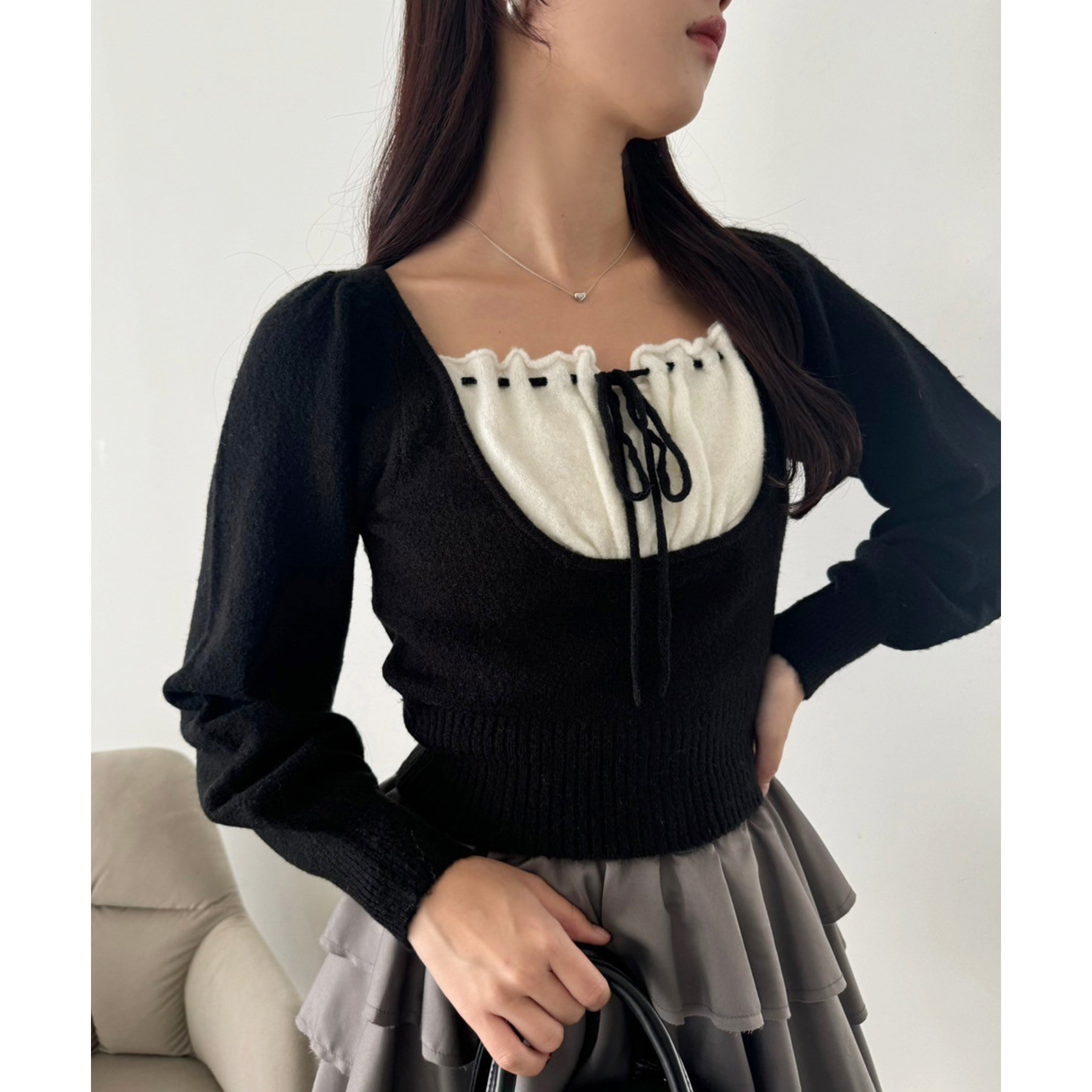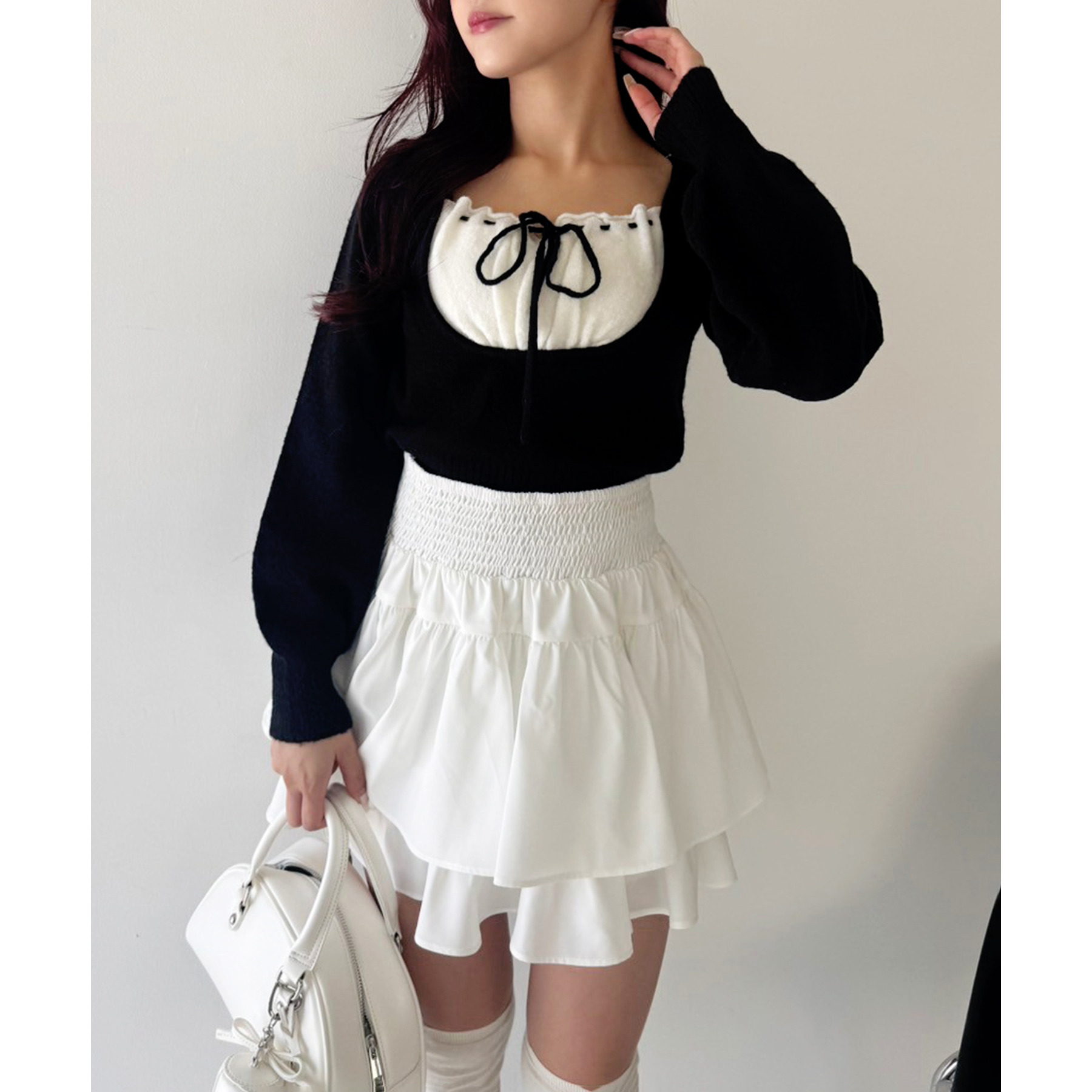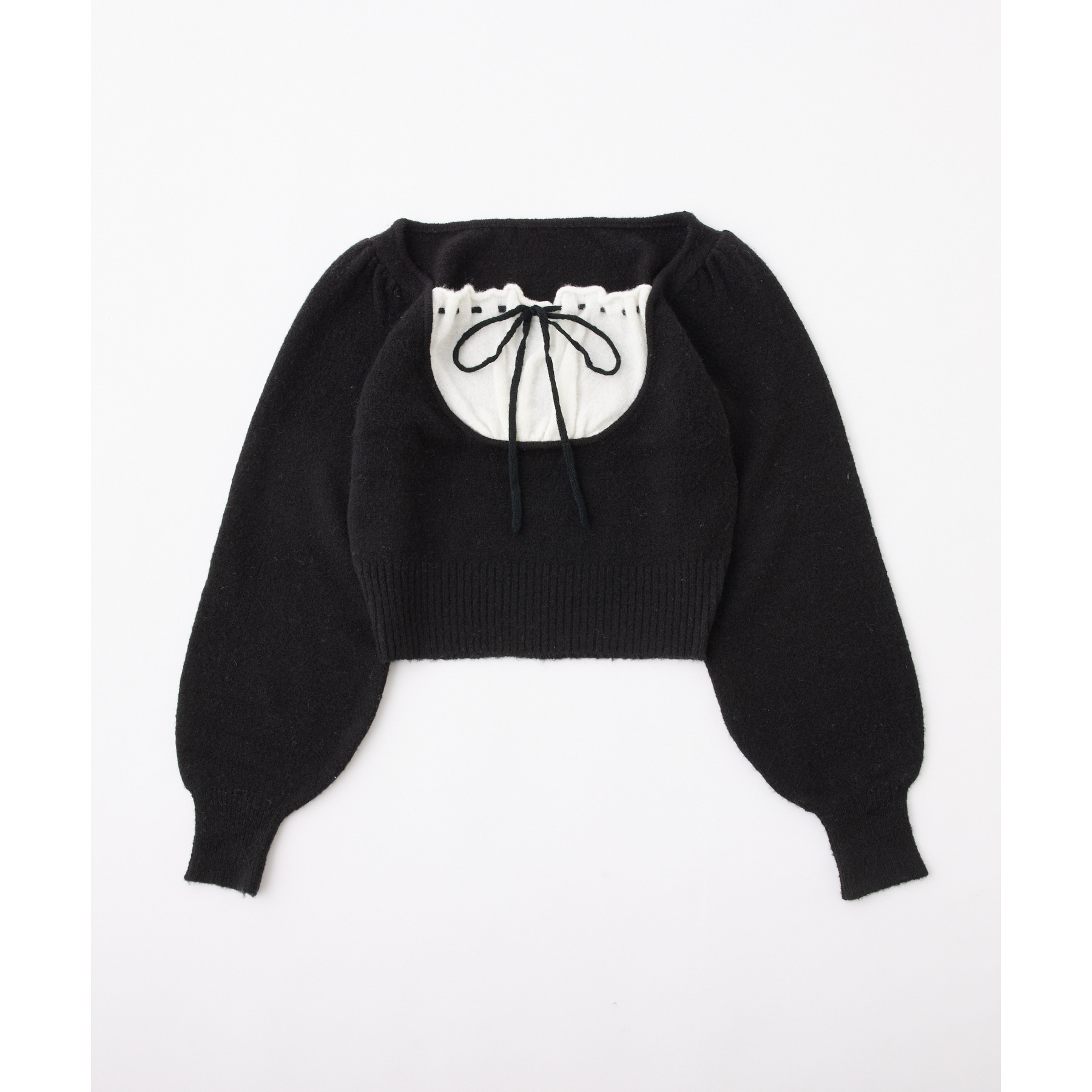 1枚でレイヤードしているようにも見える主役級ニットトップス