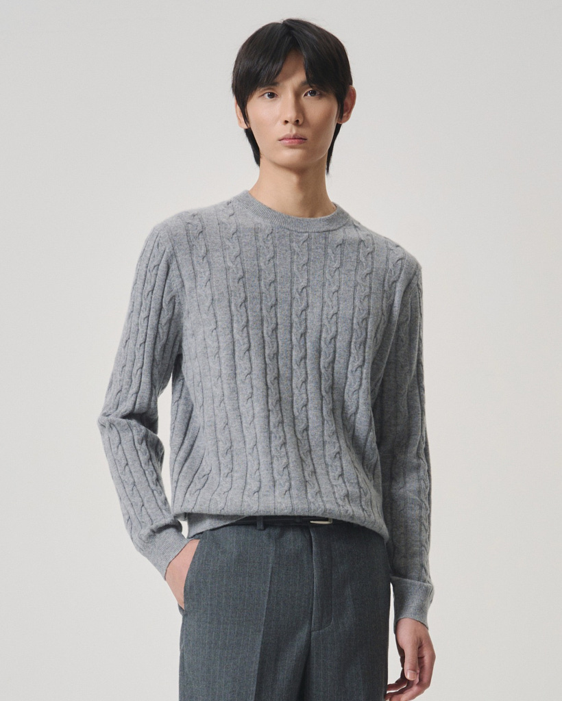 [UNISEX] Cashmere Essential Blend Cable Knit Grey