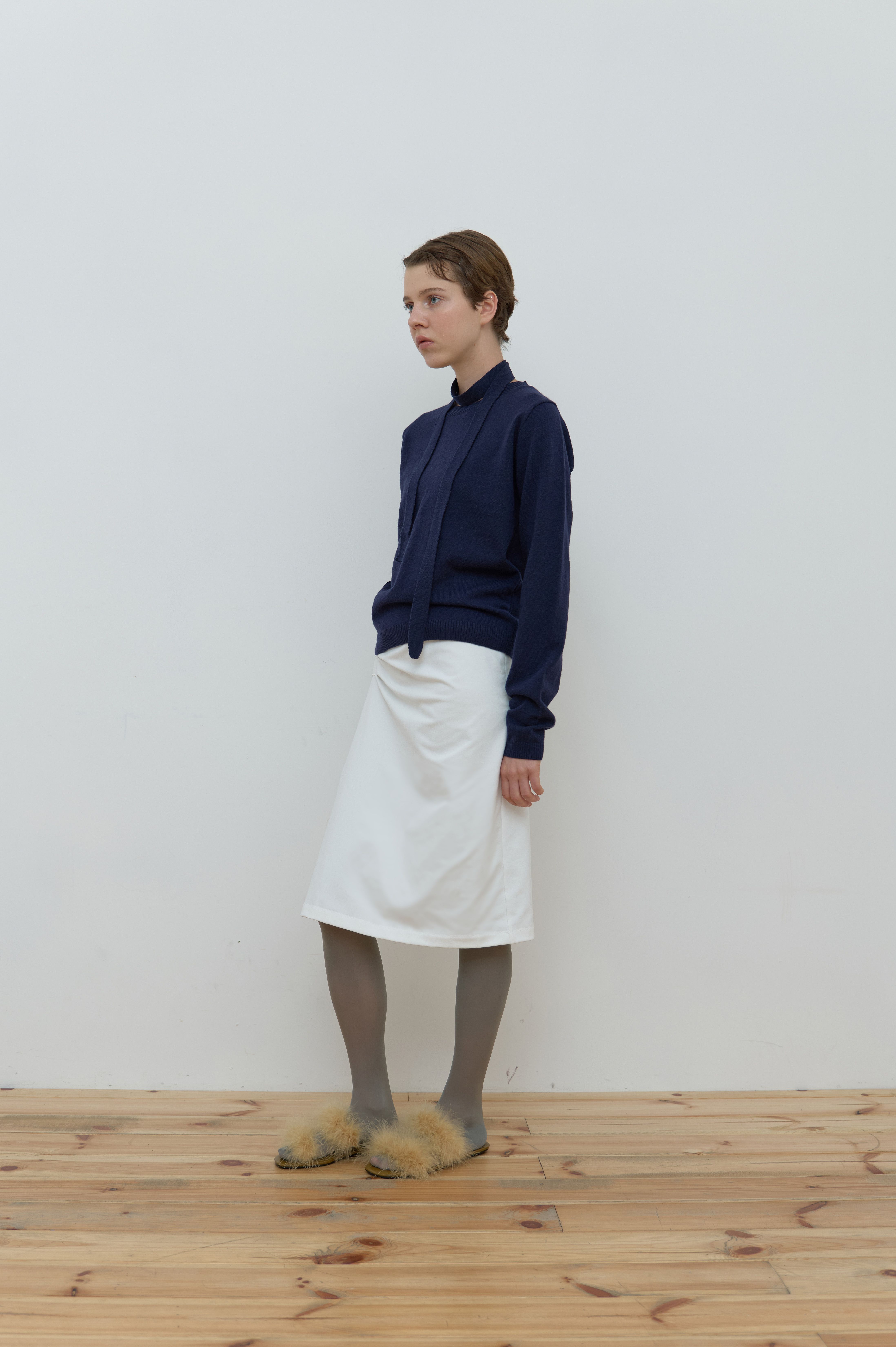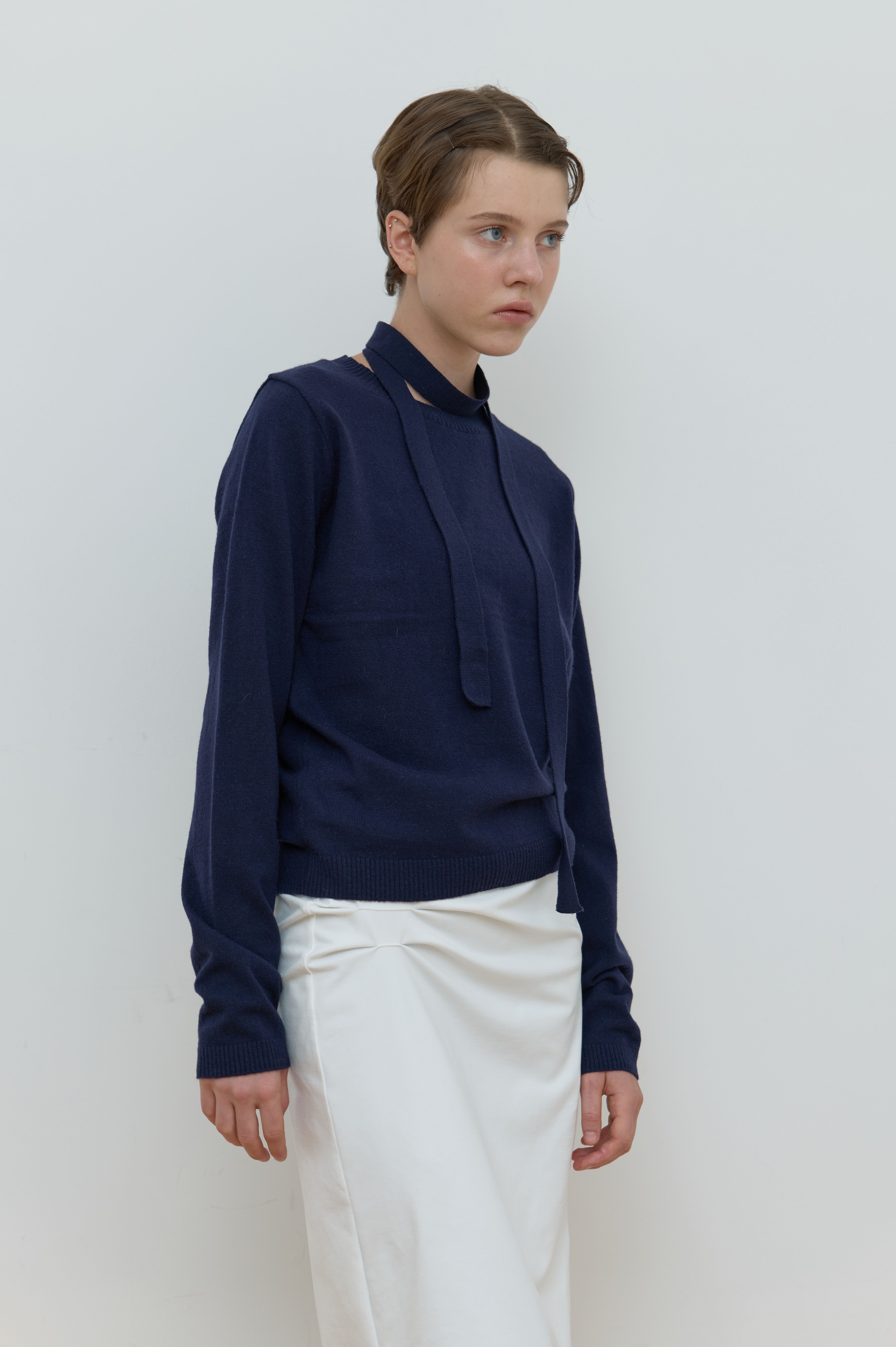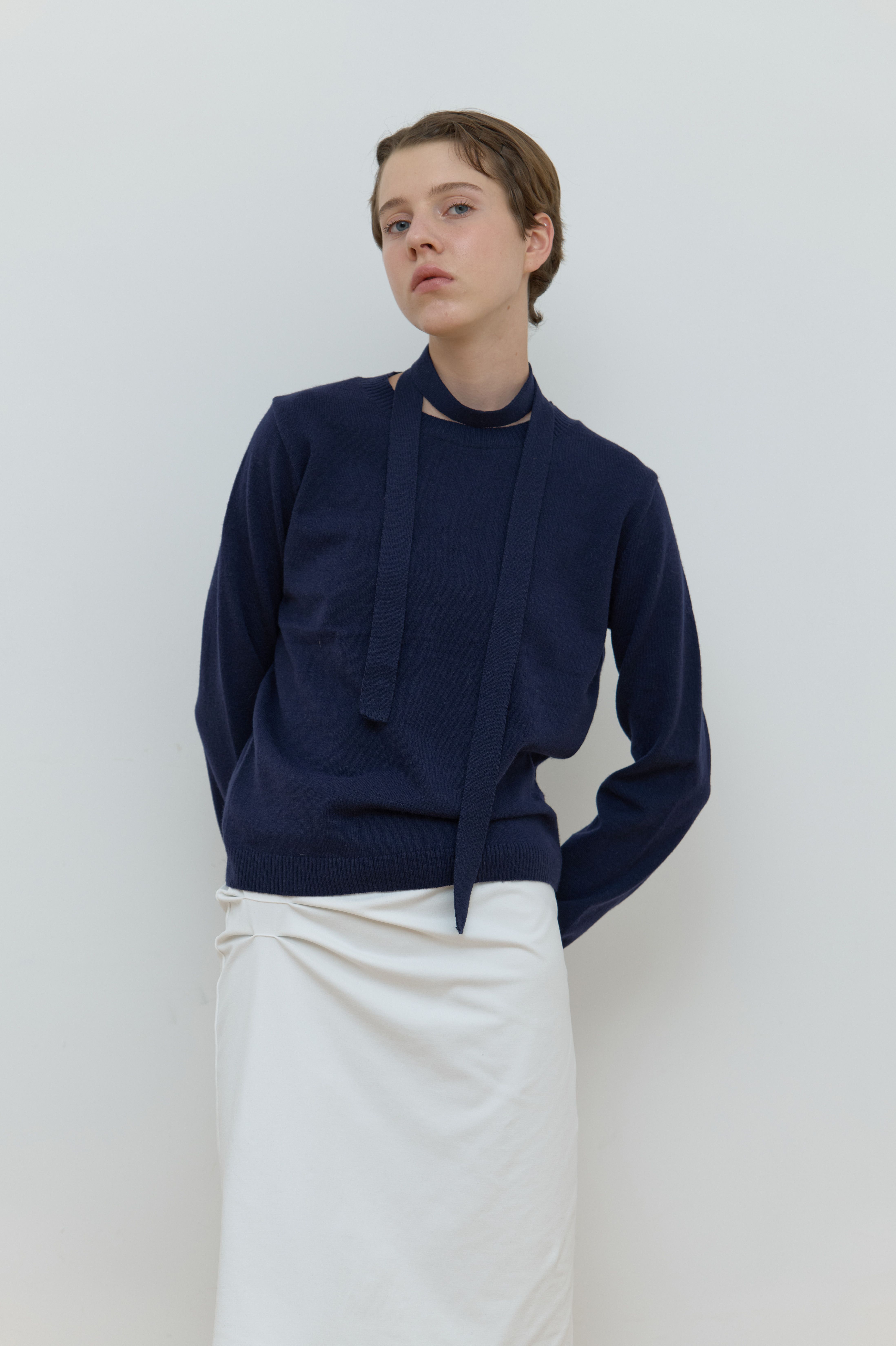 TIE SET U-NECK CASHMERE KNIT_NAVY