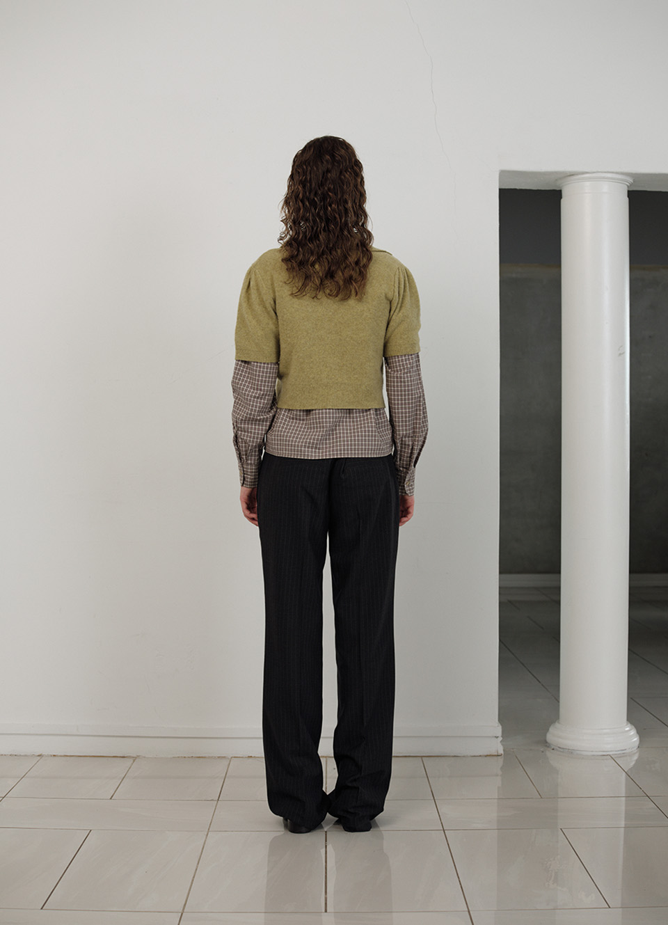 セミクロップ丈とボタン留め仕様のニットタイプ