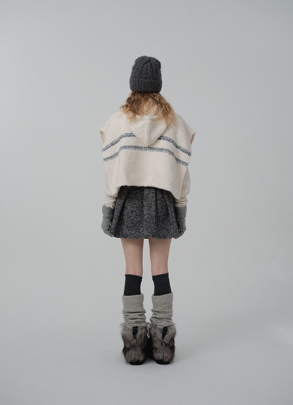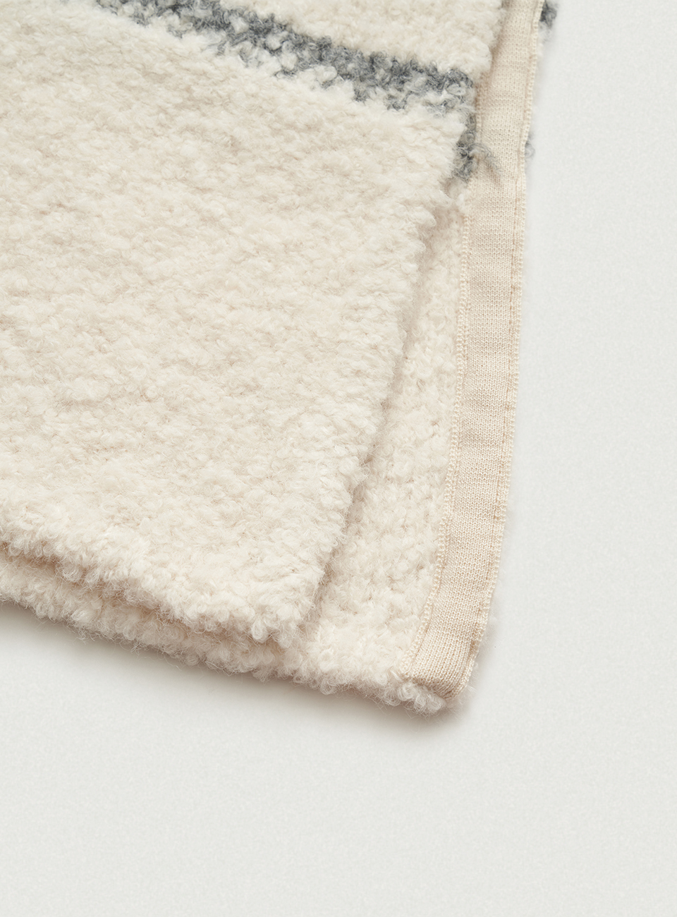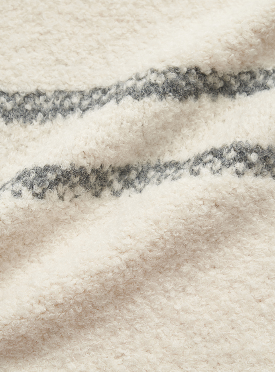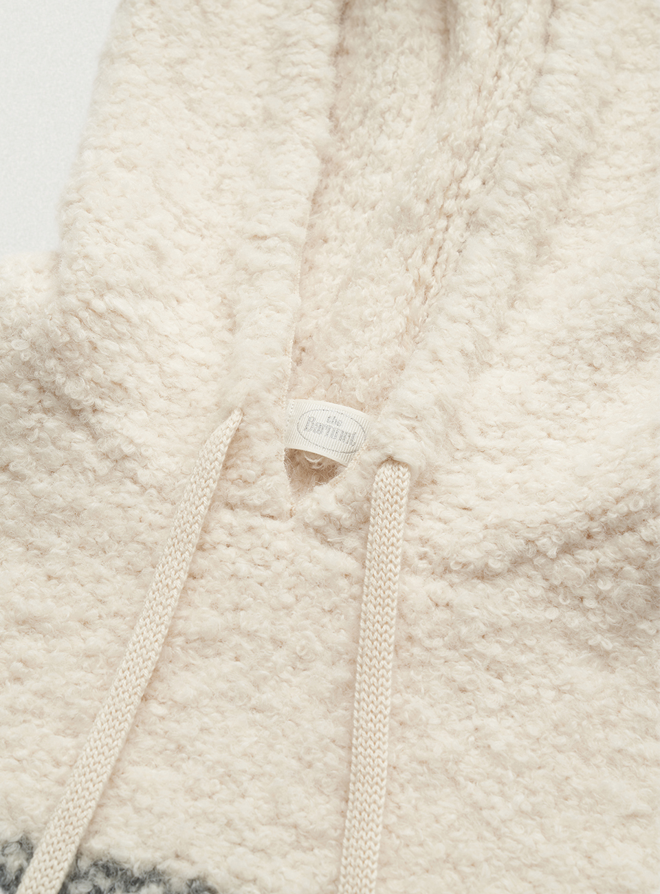 アイボリーカラーで、豊かで立体感のあるテクスチャーが特徴のウール混紡ブークレニットファブリック。
