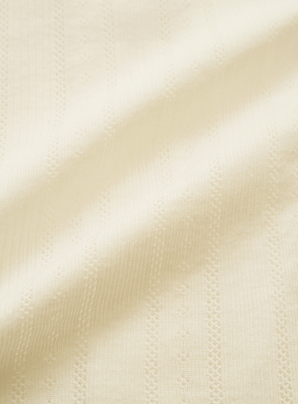 "イエローカラーのアイレット特有のテクスチャーが際立つコットンアイレットファブリック。