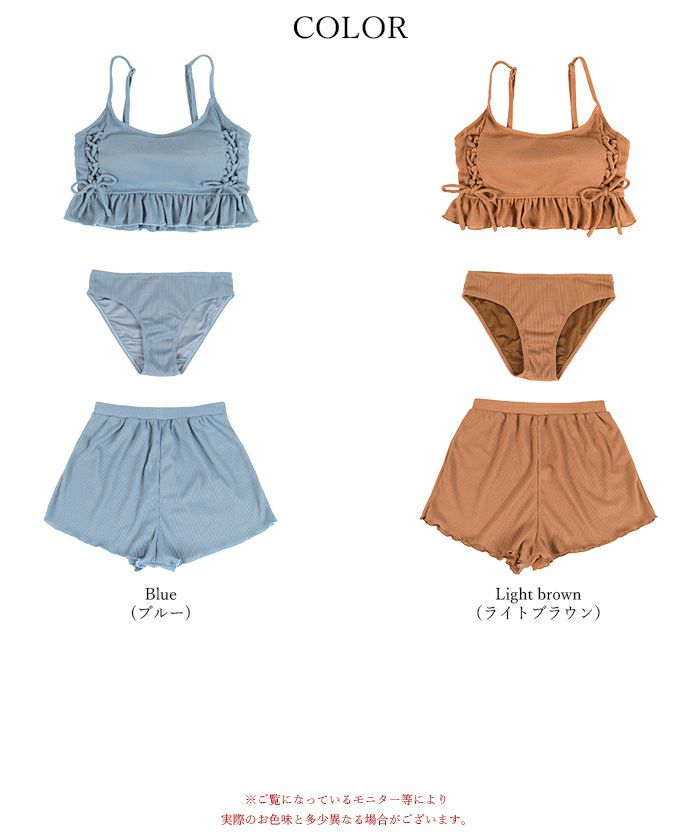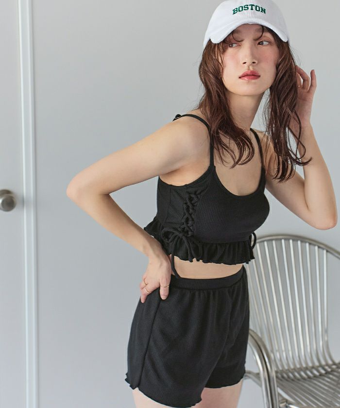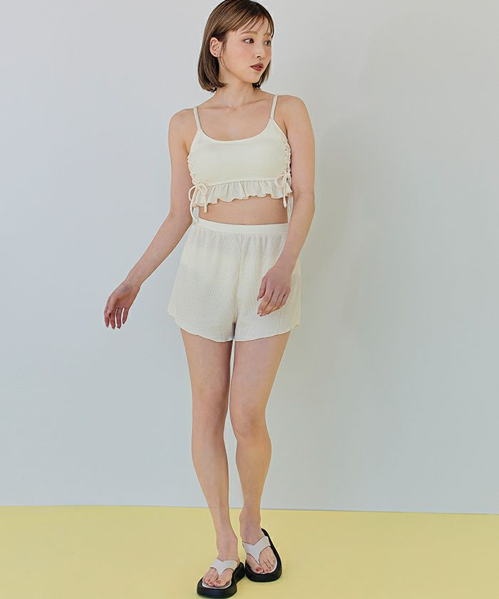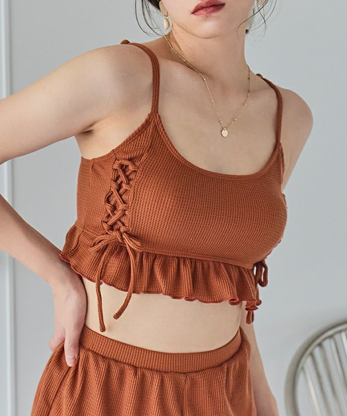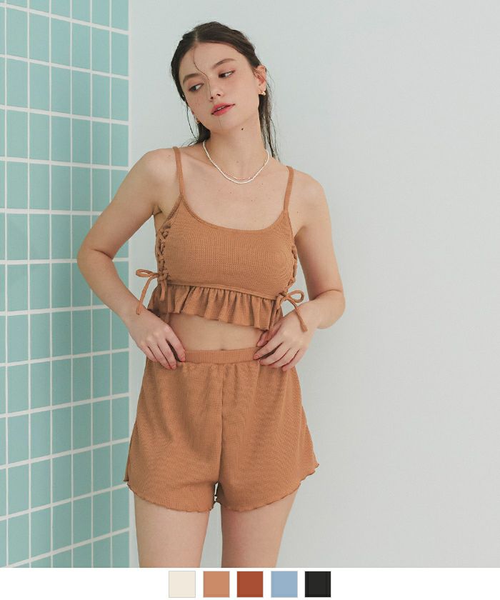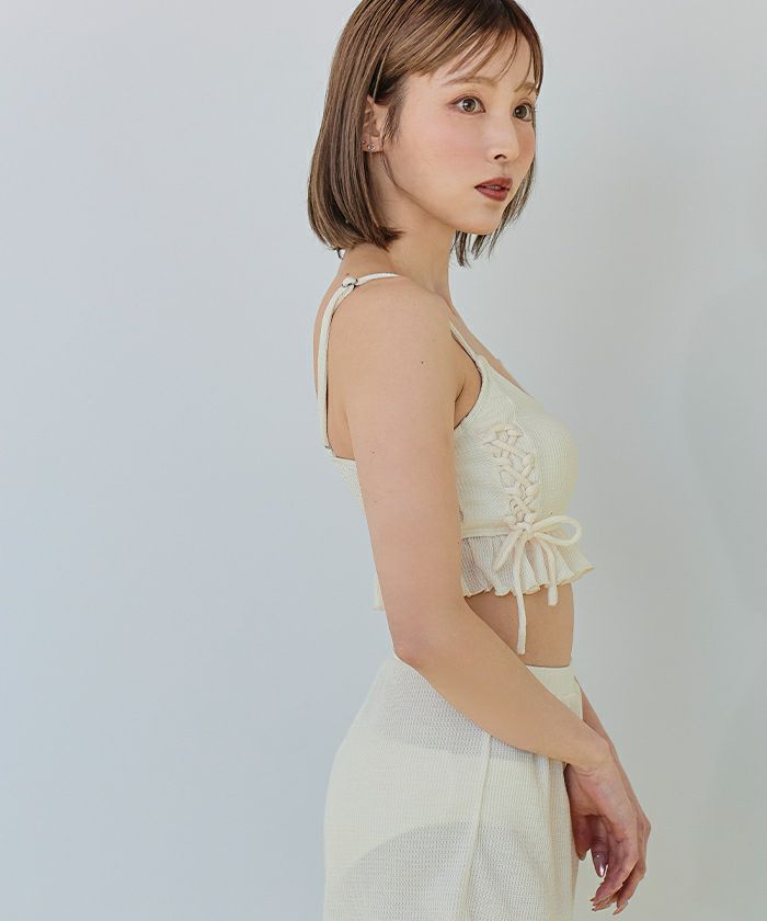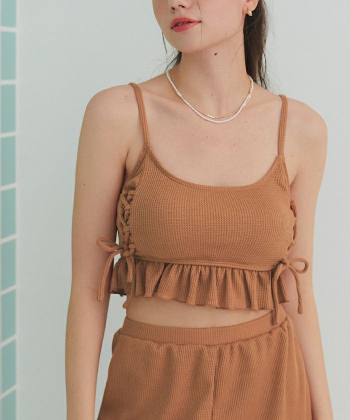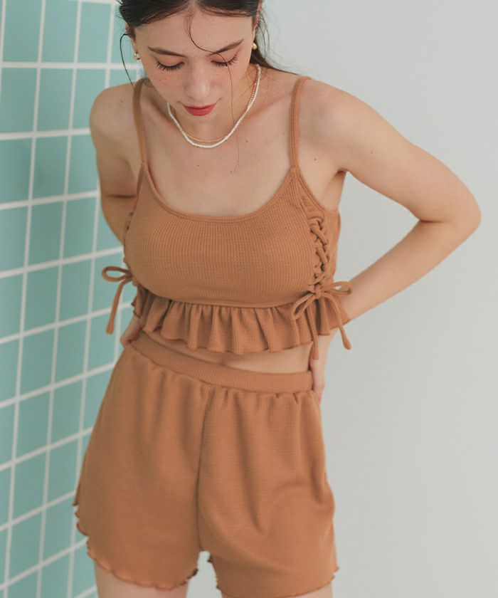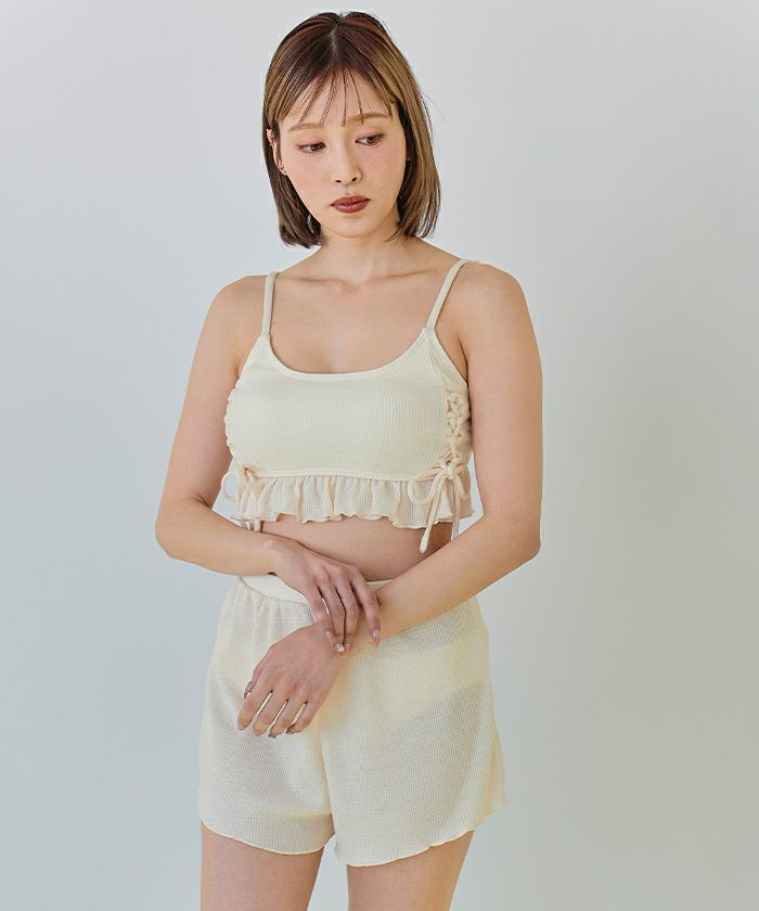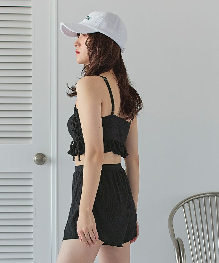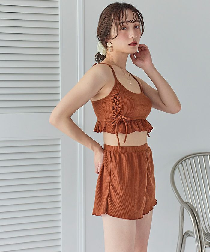 ワッフル素材レースアップビキニ/水着セット
