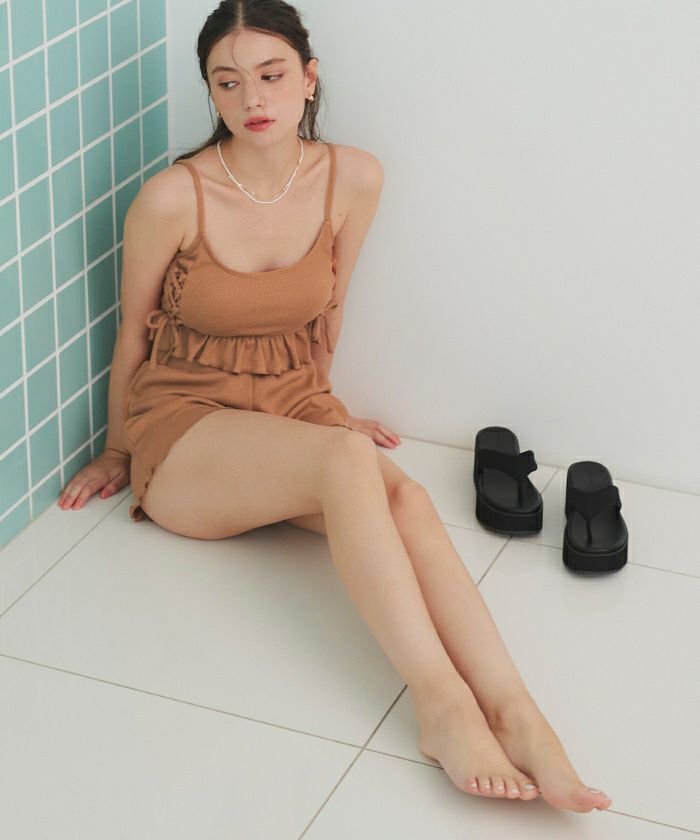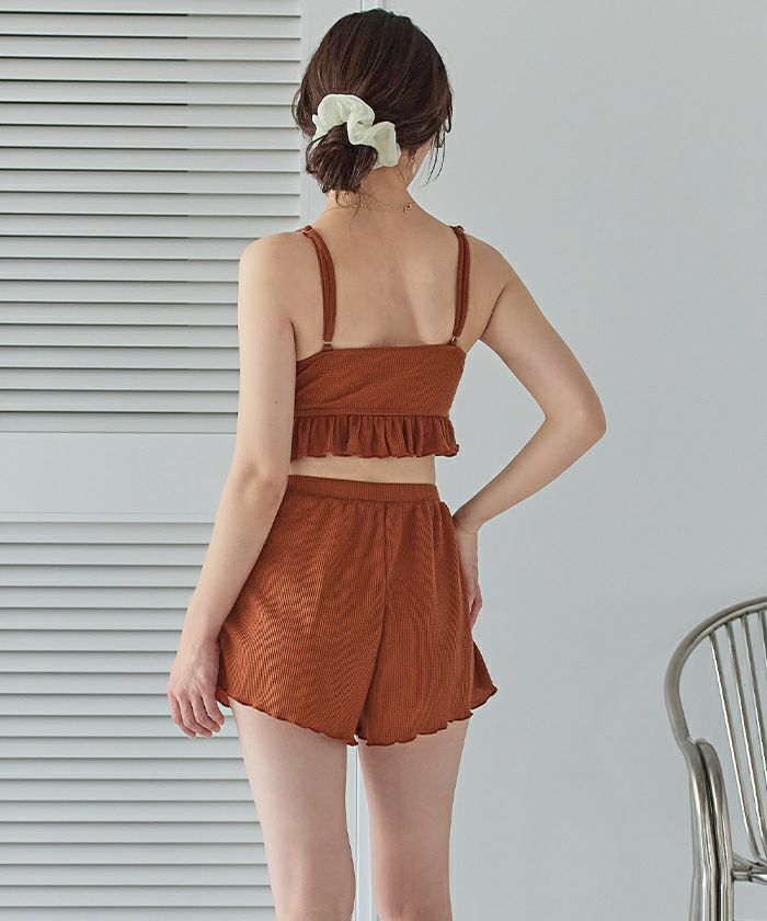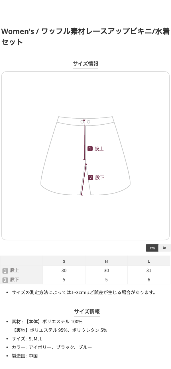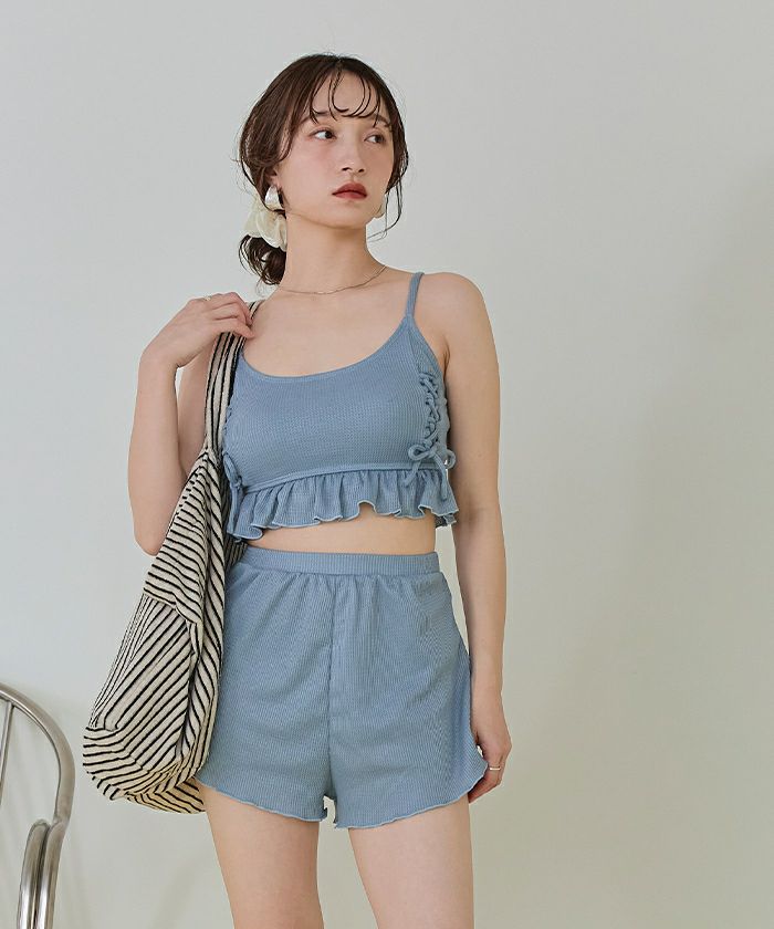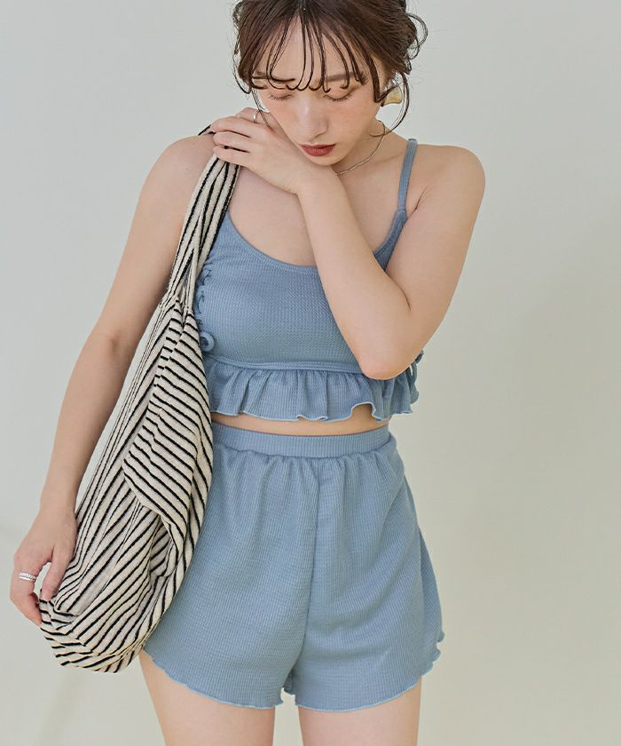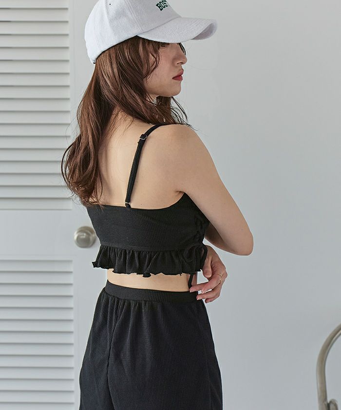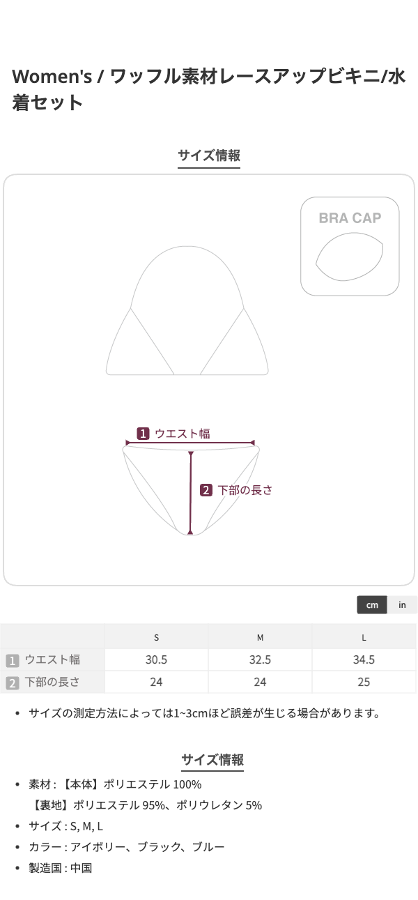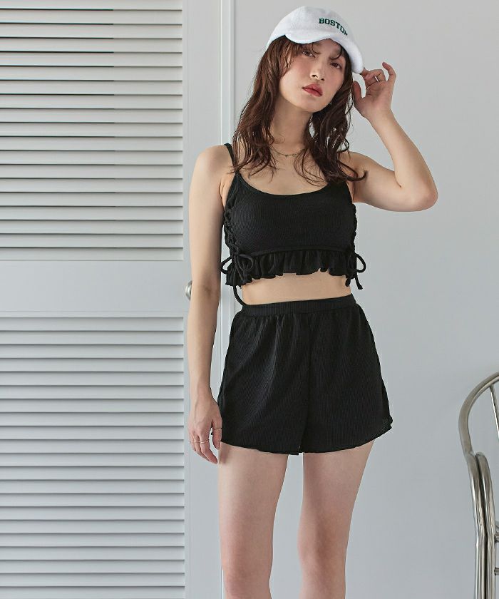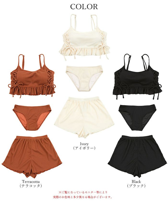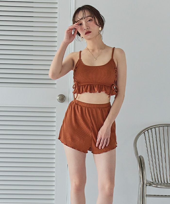 ワッフル素材レースアップビキニ/水着セット