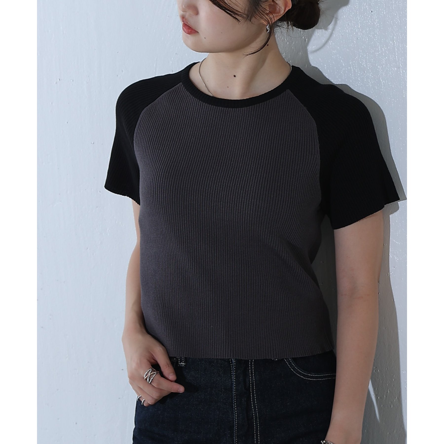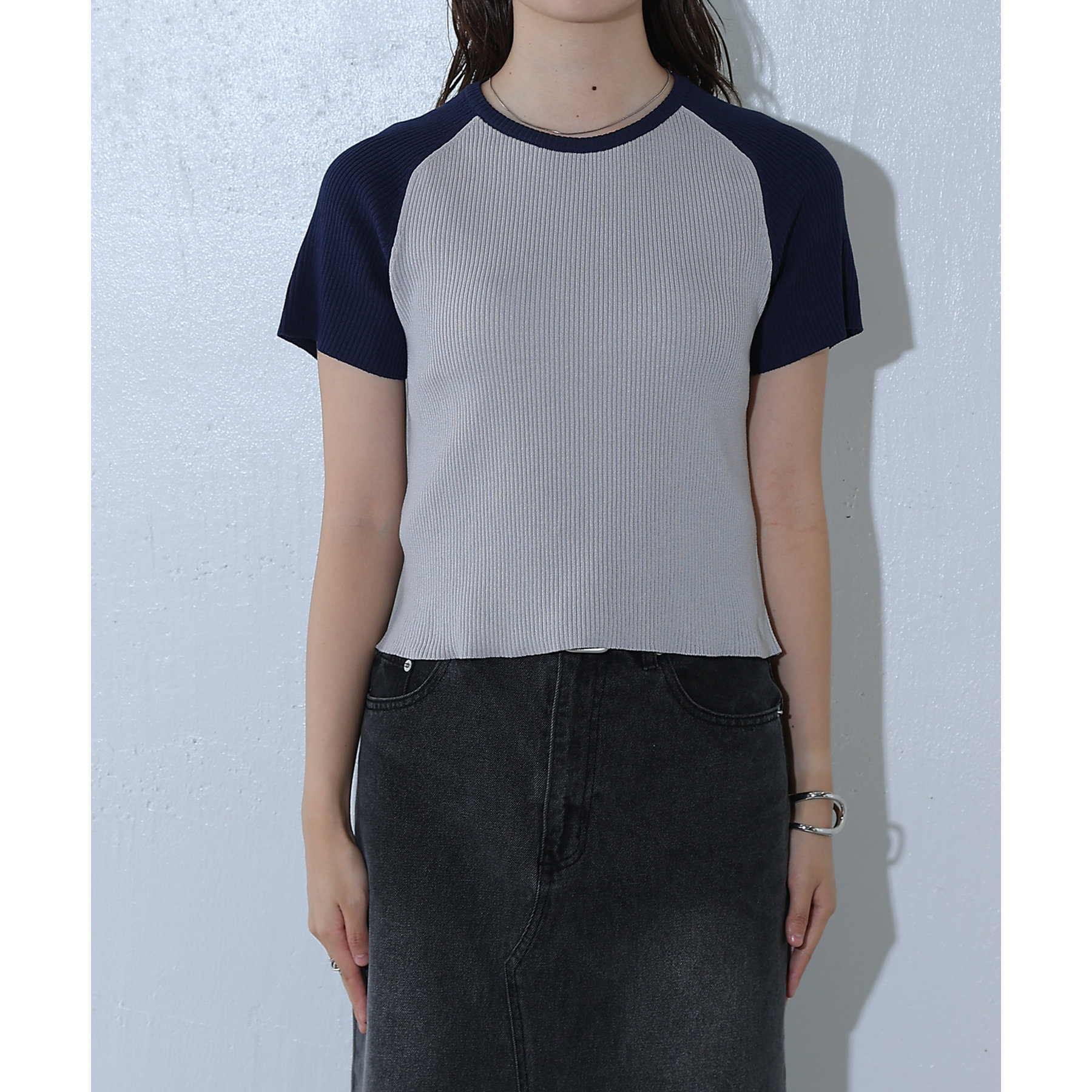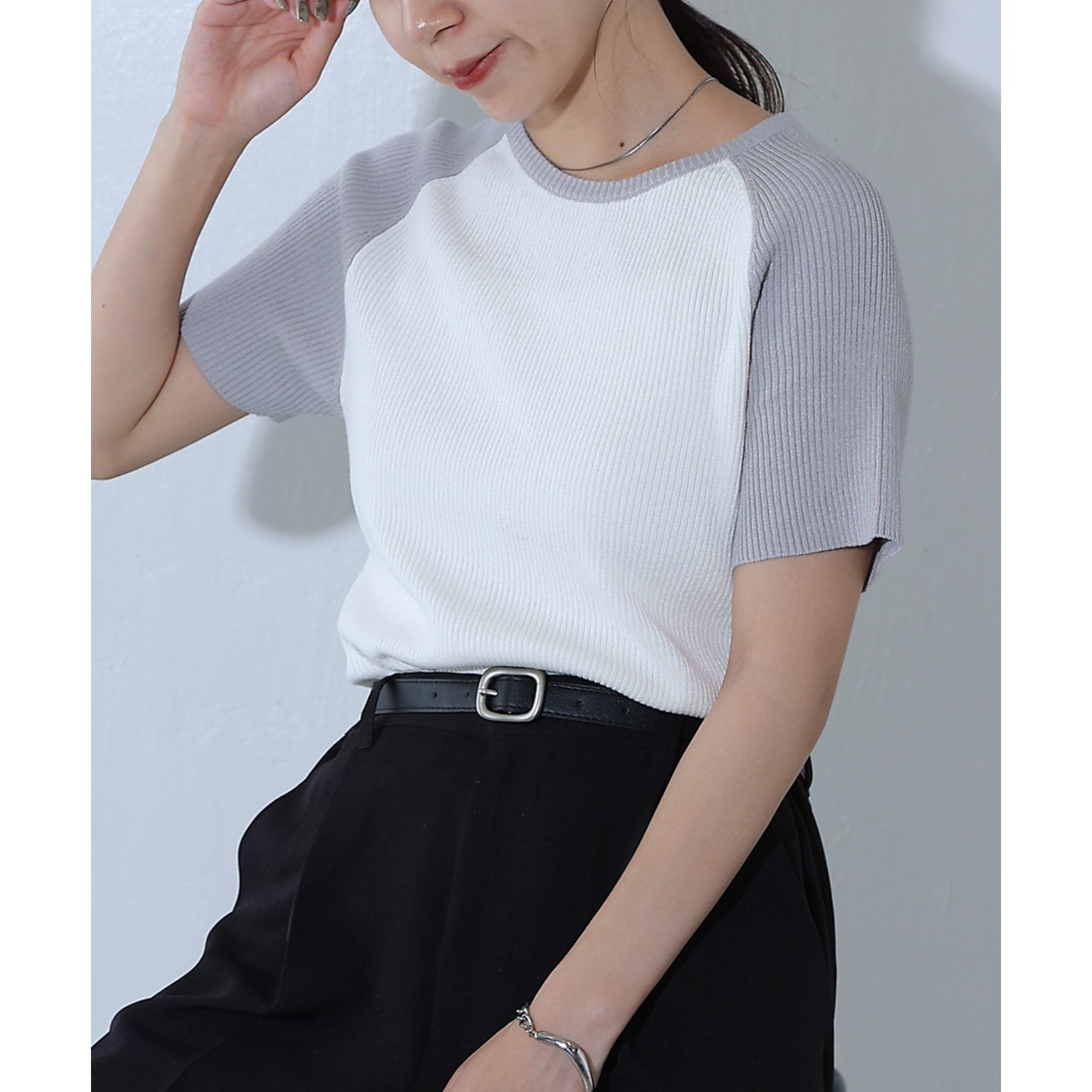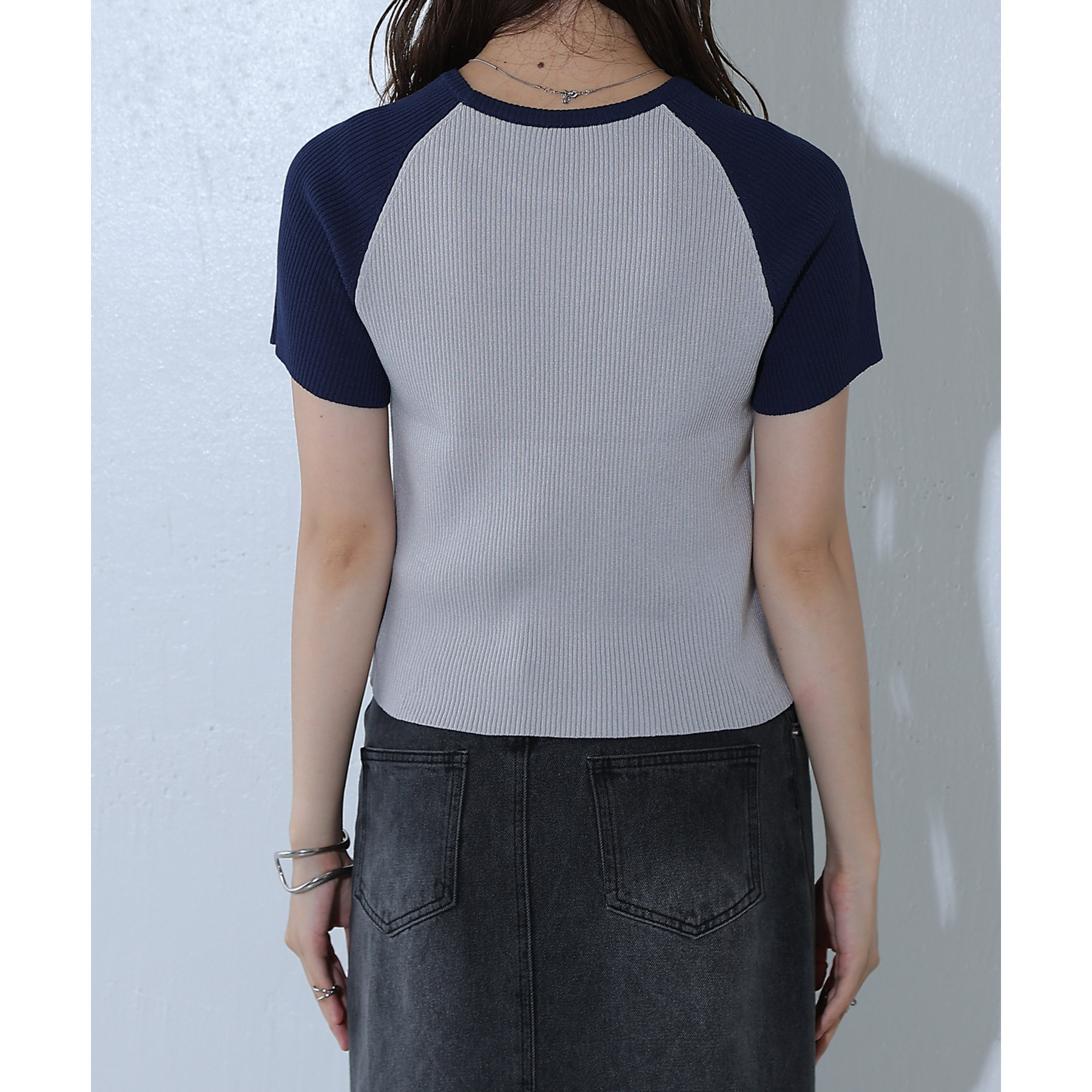 配色ラグランニットTee