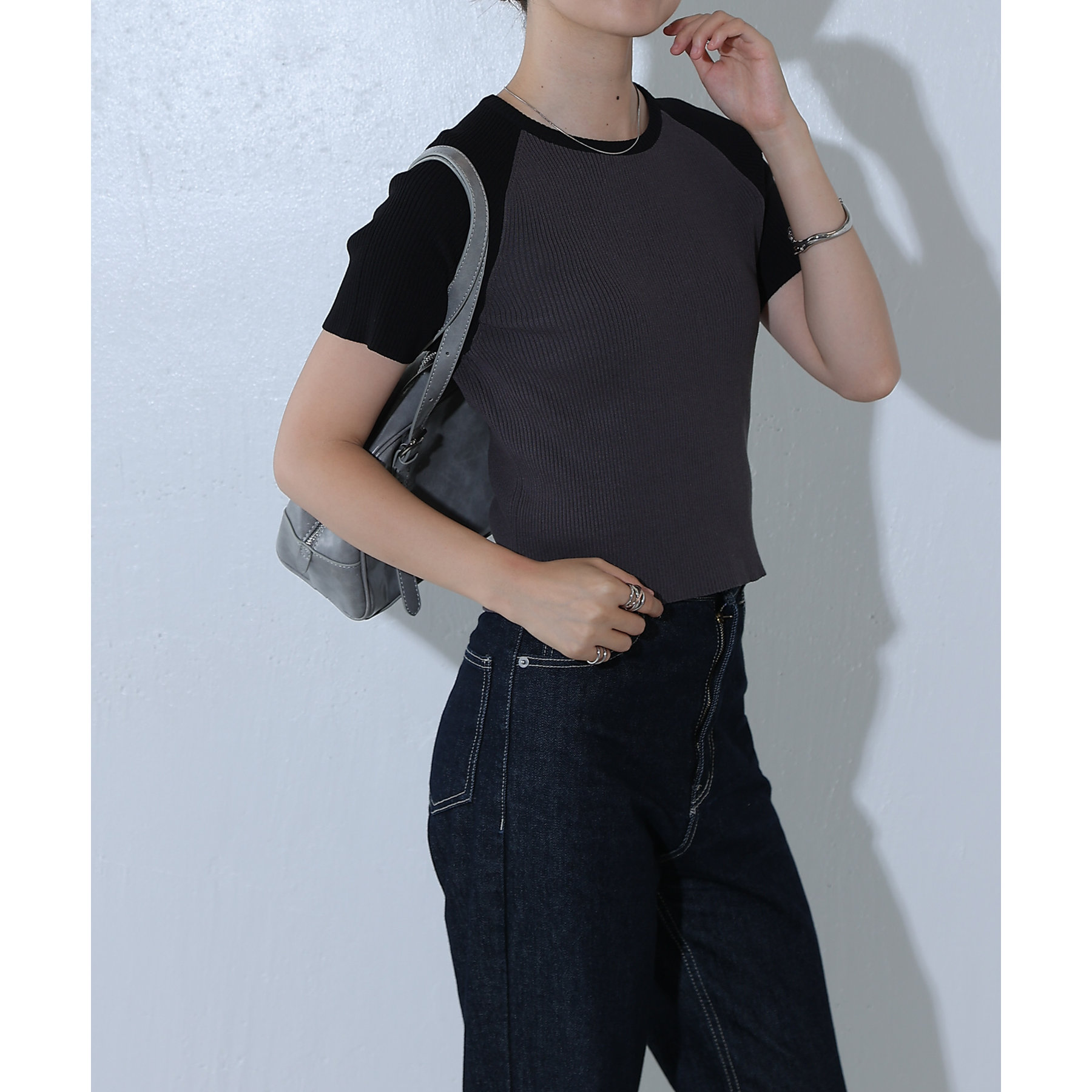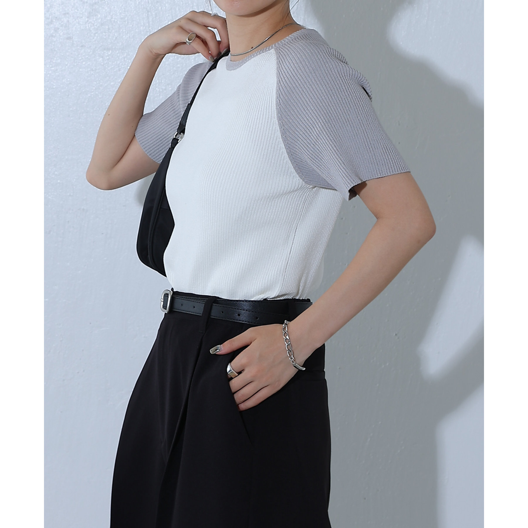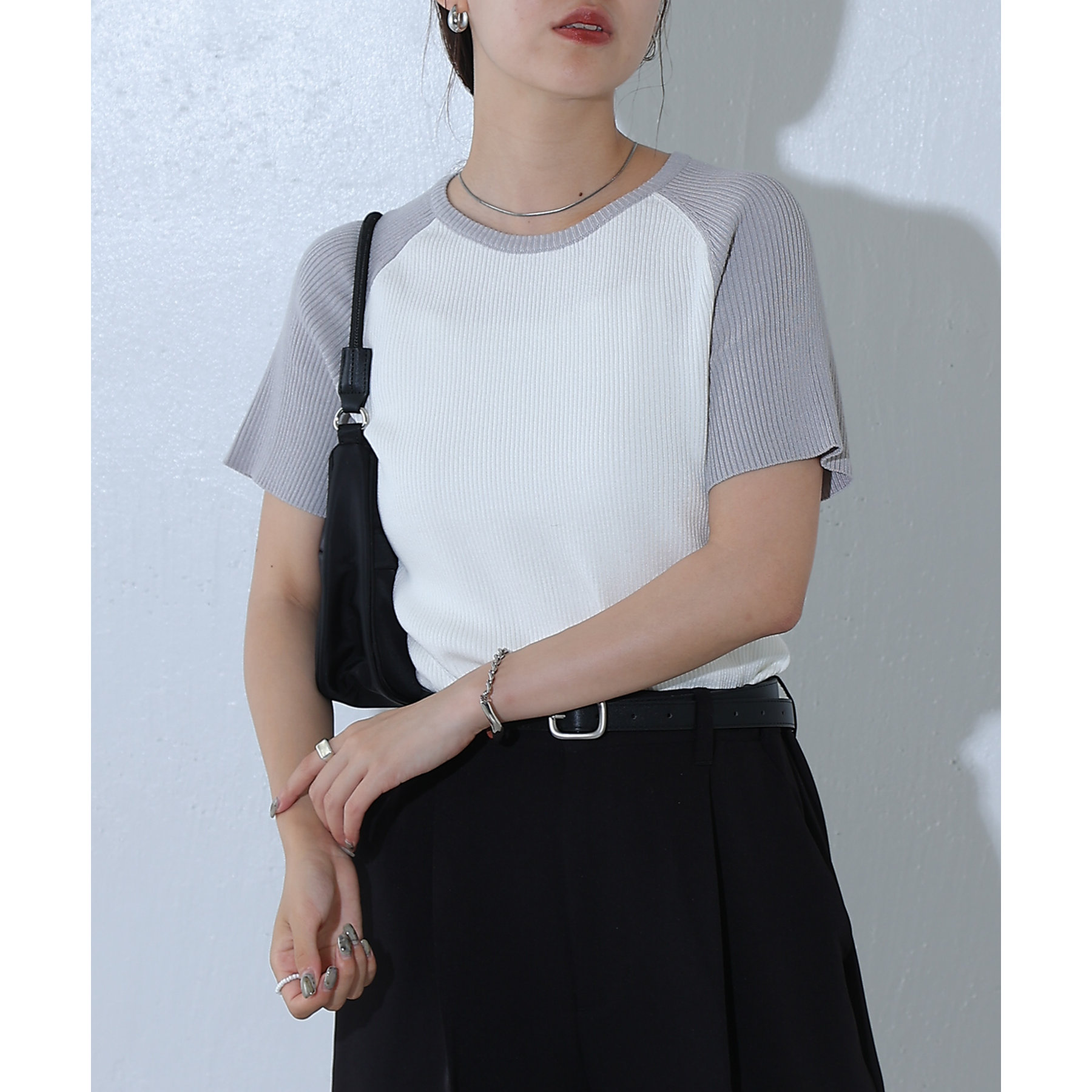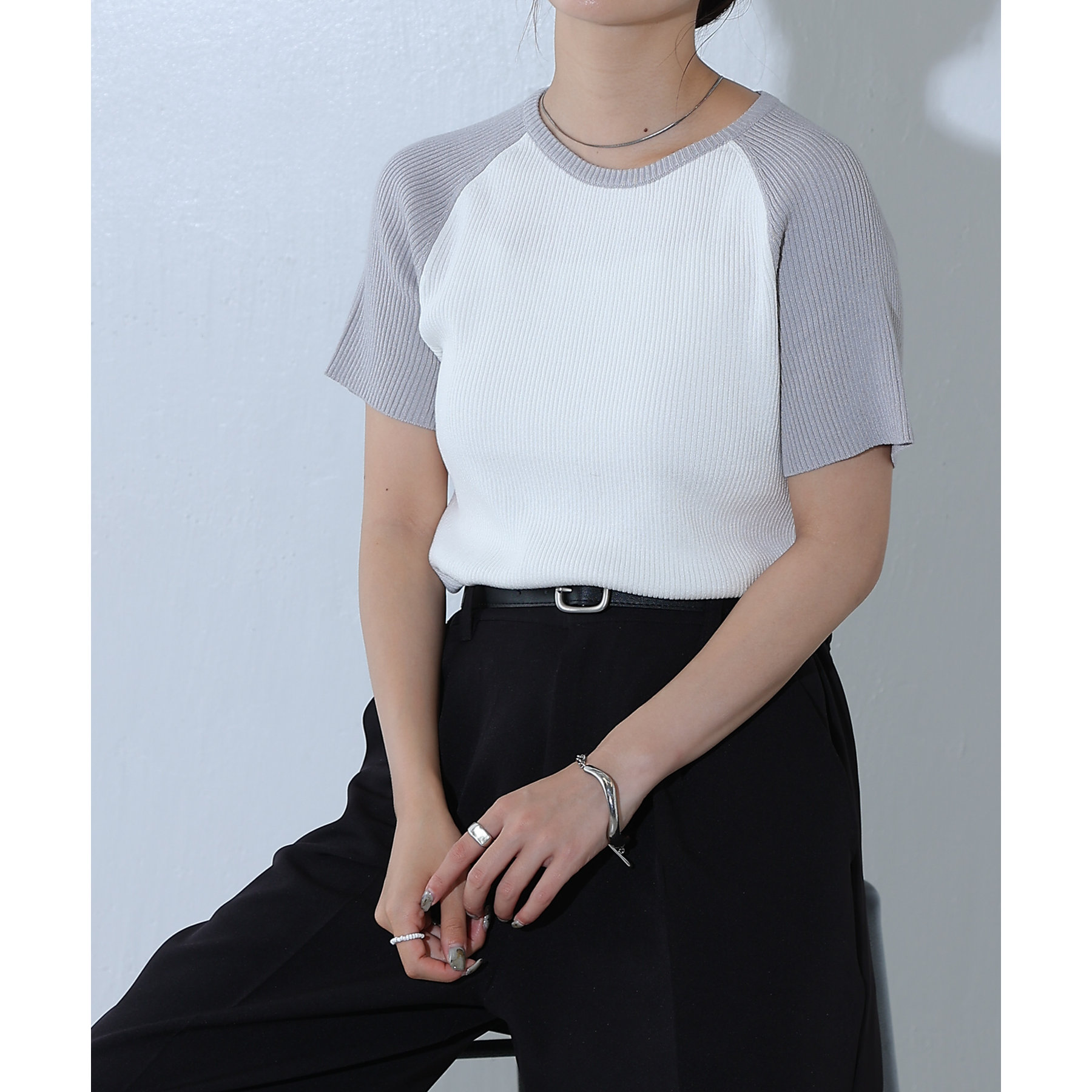 配色ラグランニットTee