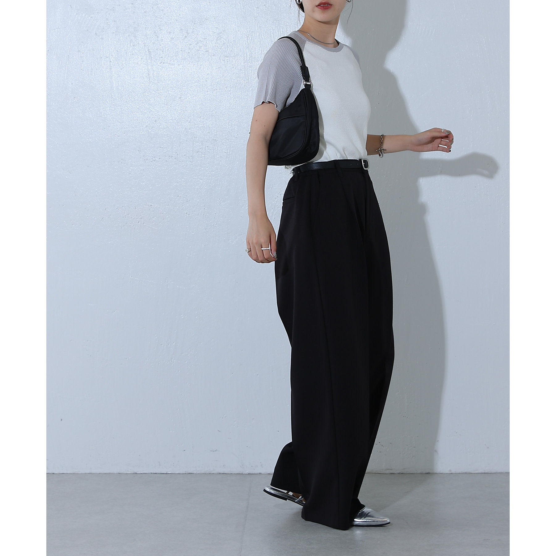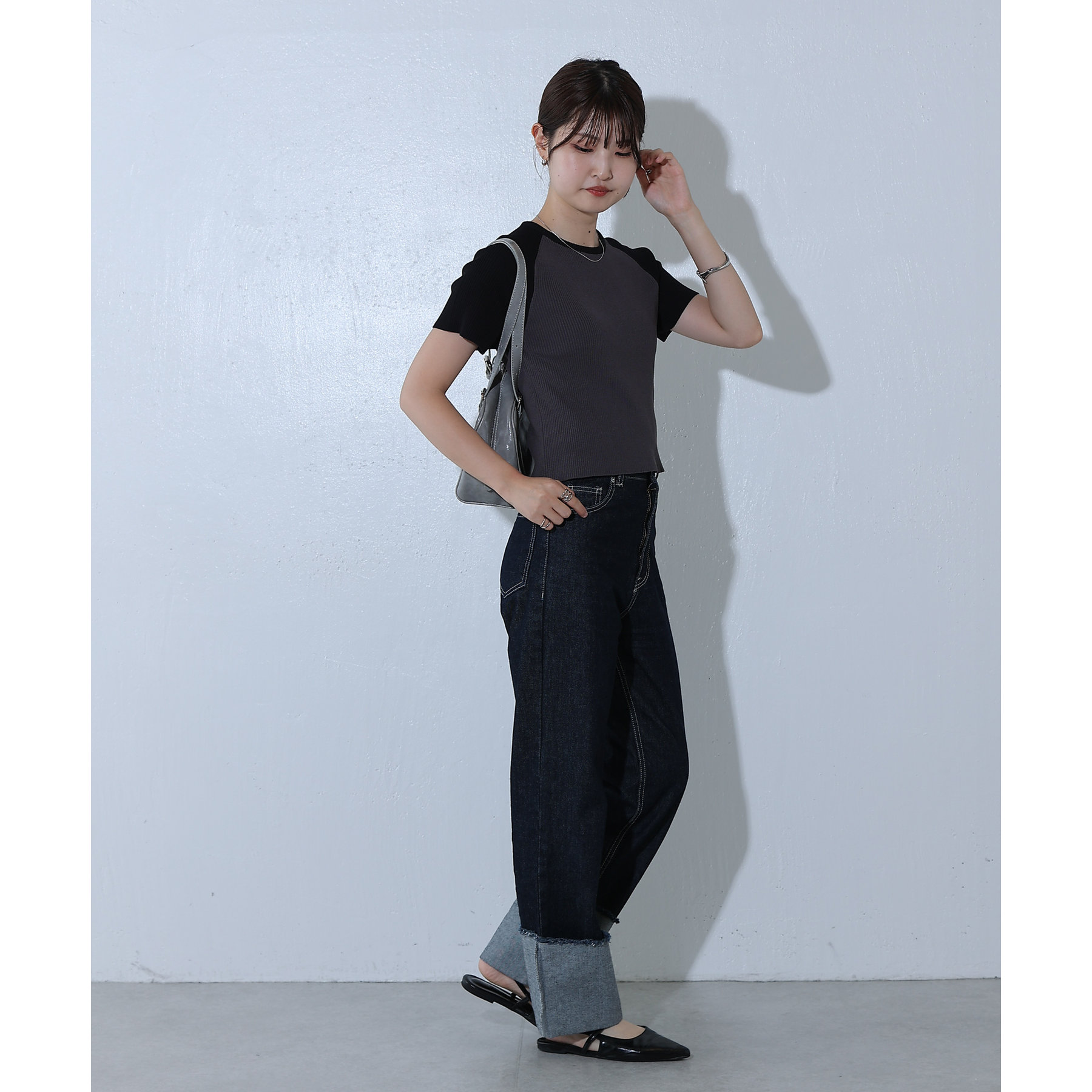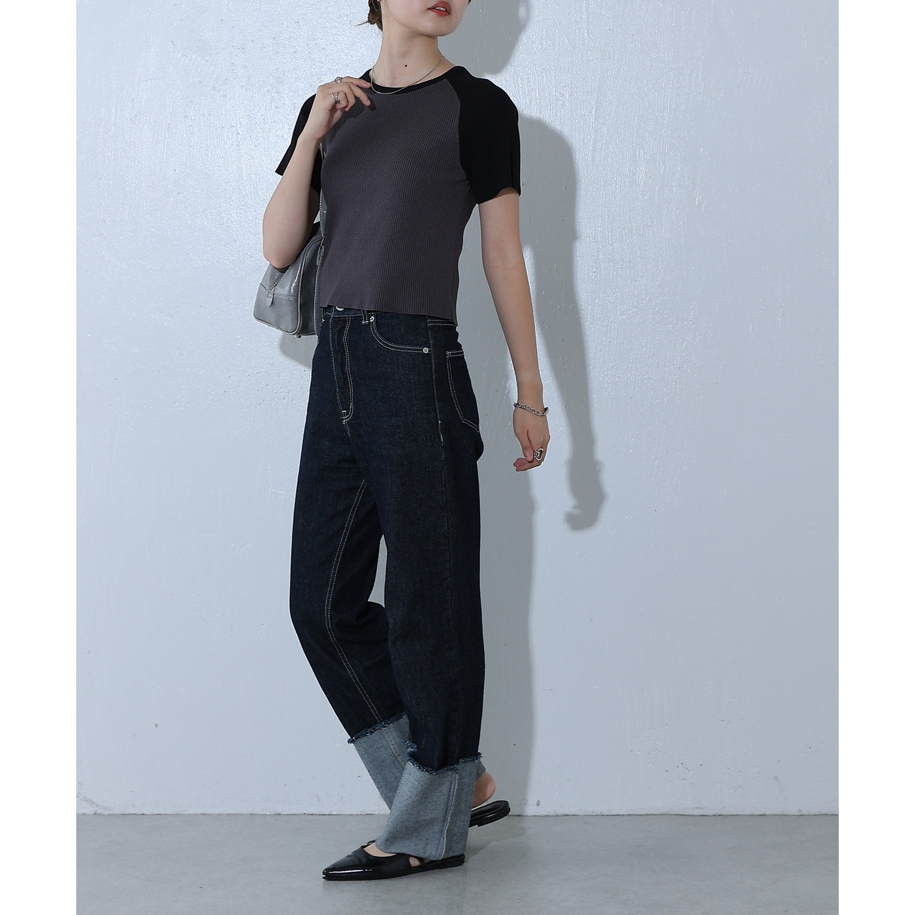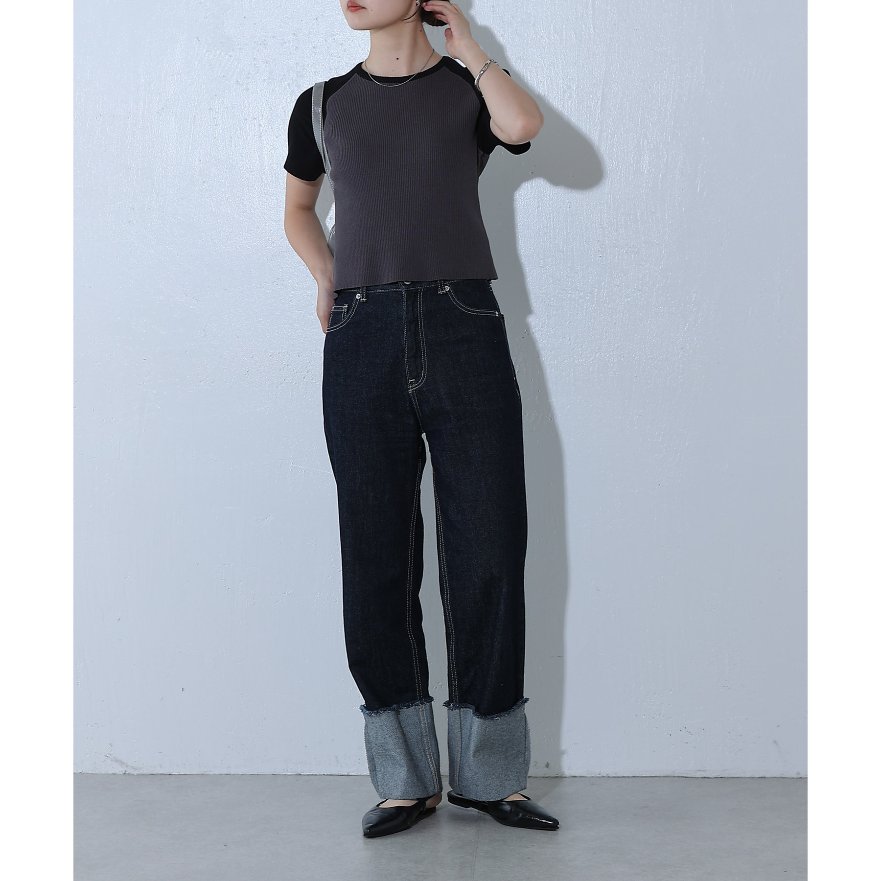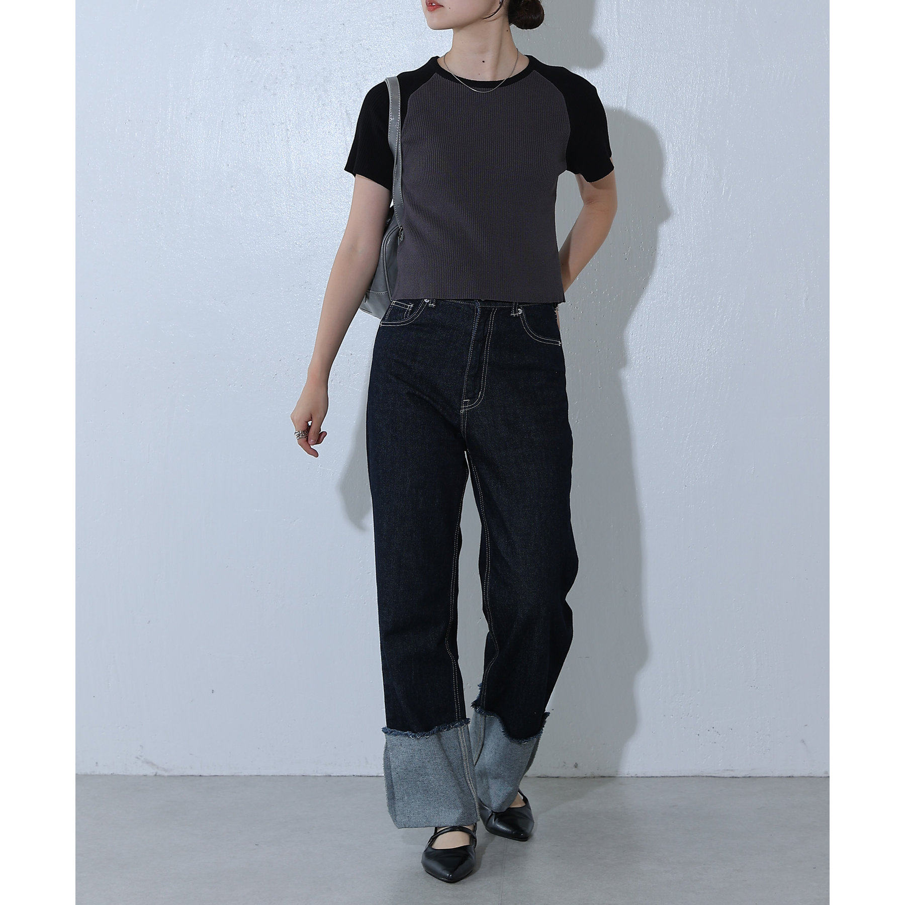 首元と袖を配色切り替えにし一枚できまるアイテムに