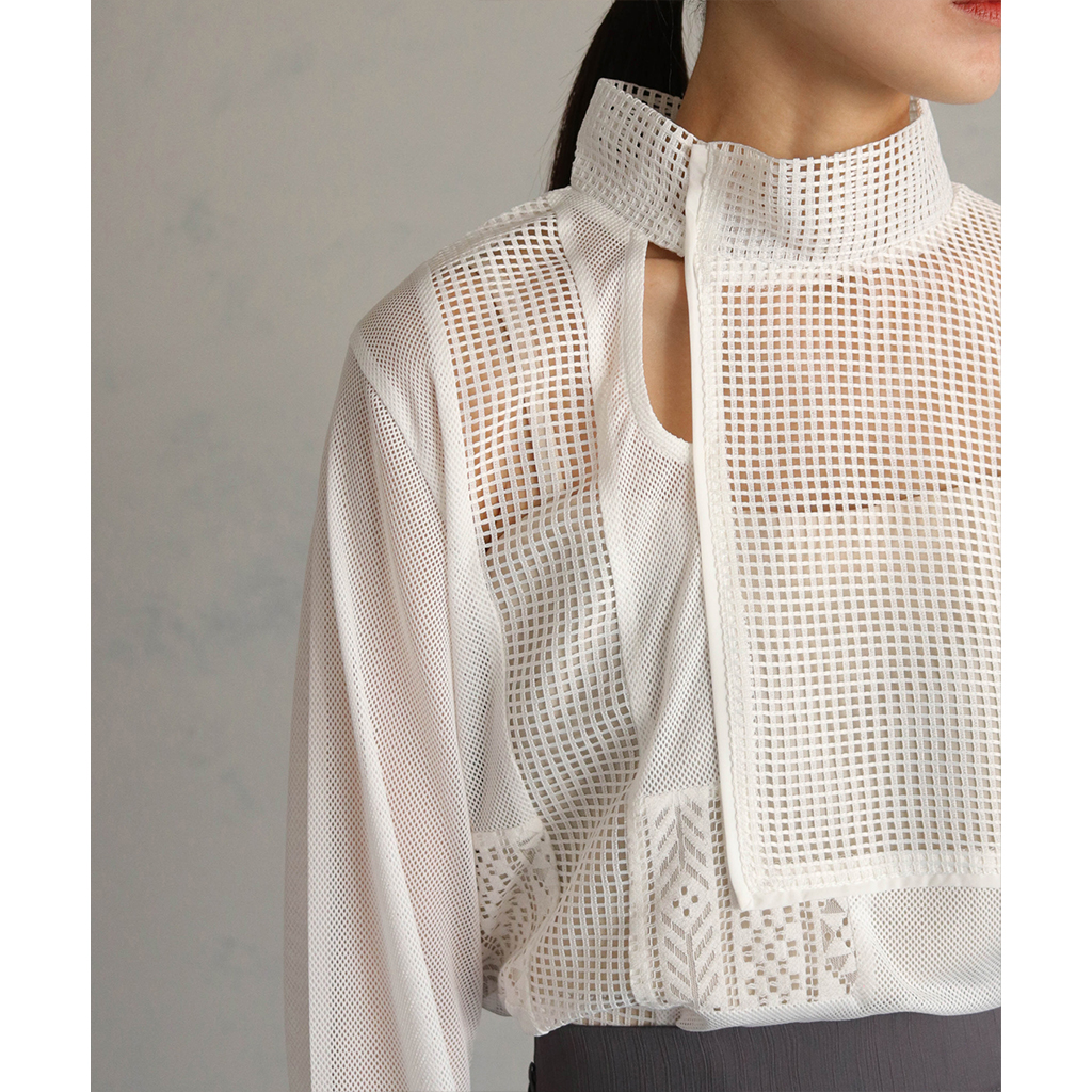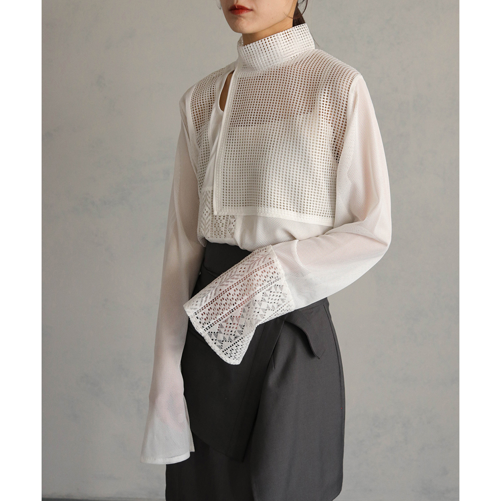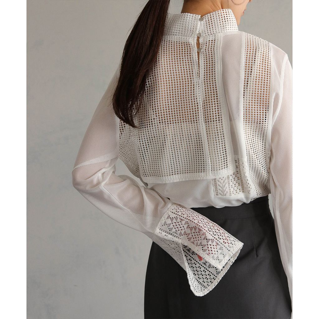MIXメッシュスタンドカラーブラウス (988-64207)