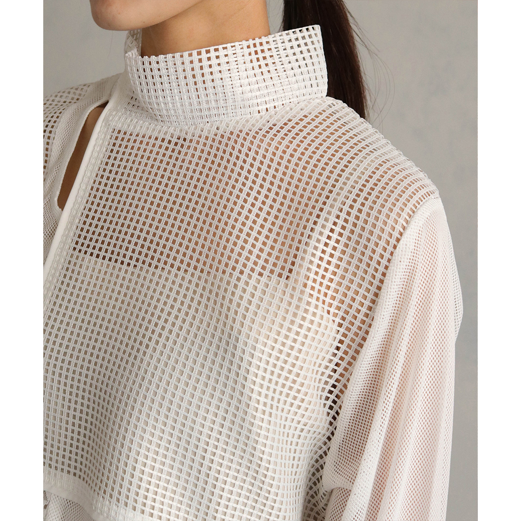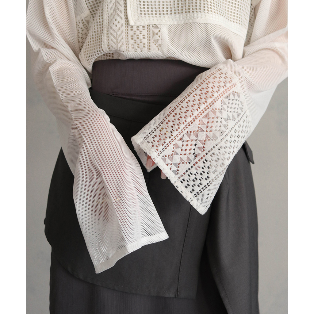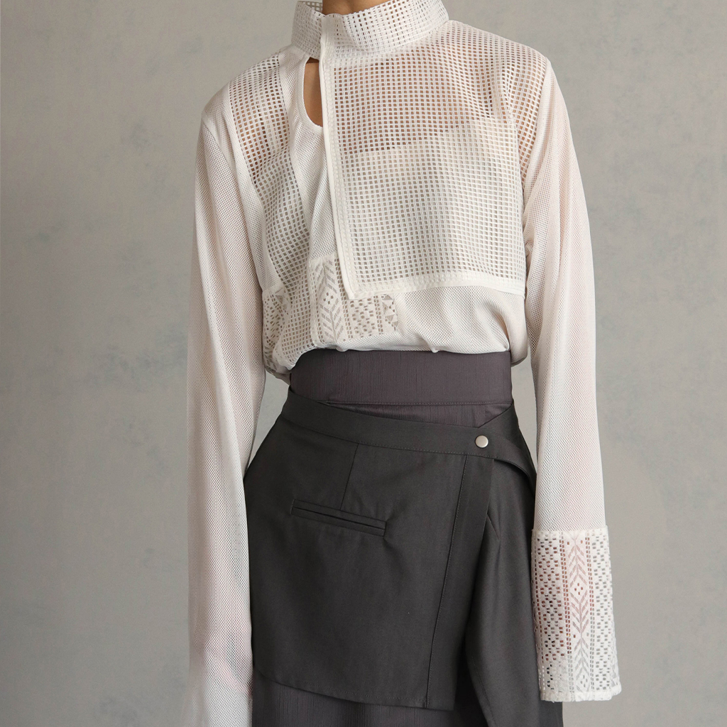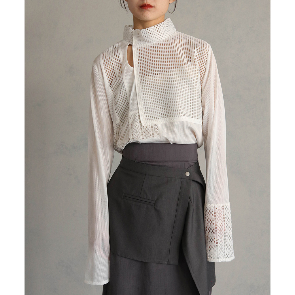 MIXメッシュスタンドカラーブラウス (988-64207)