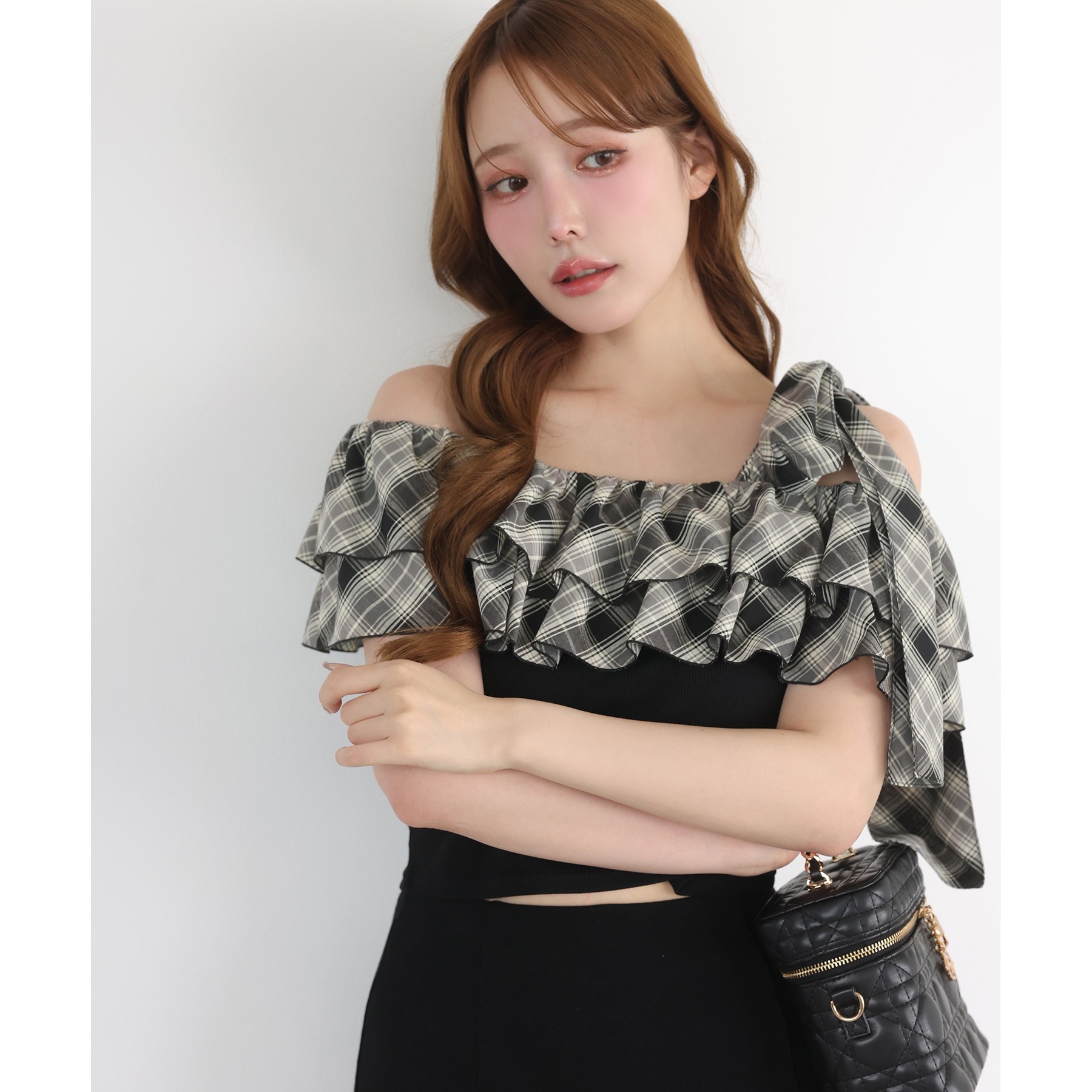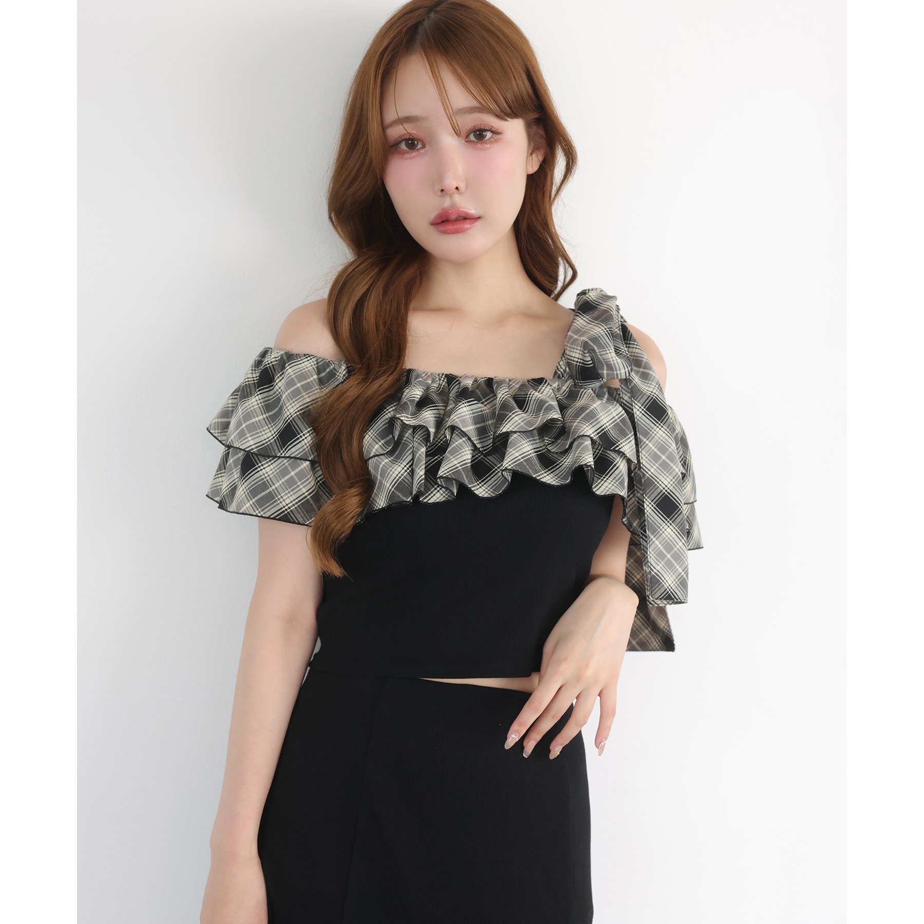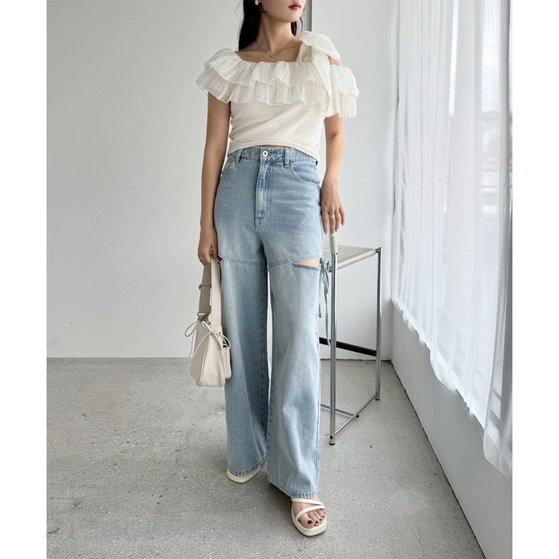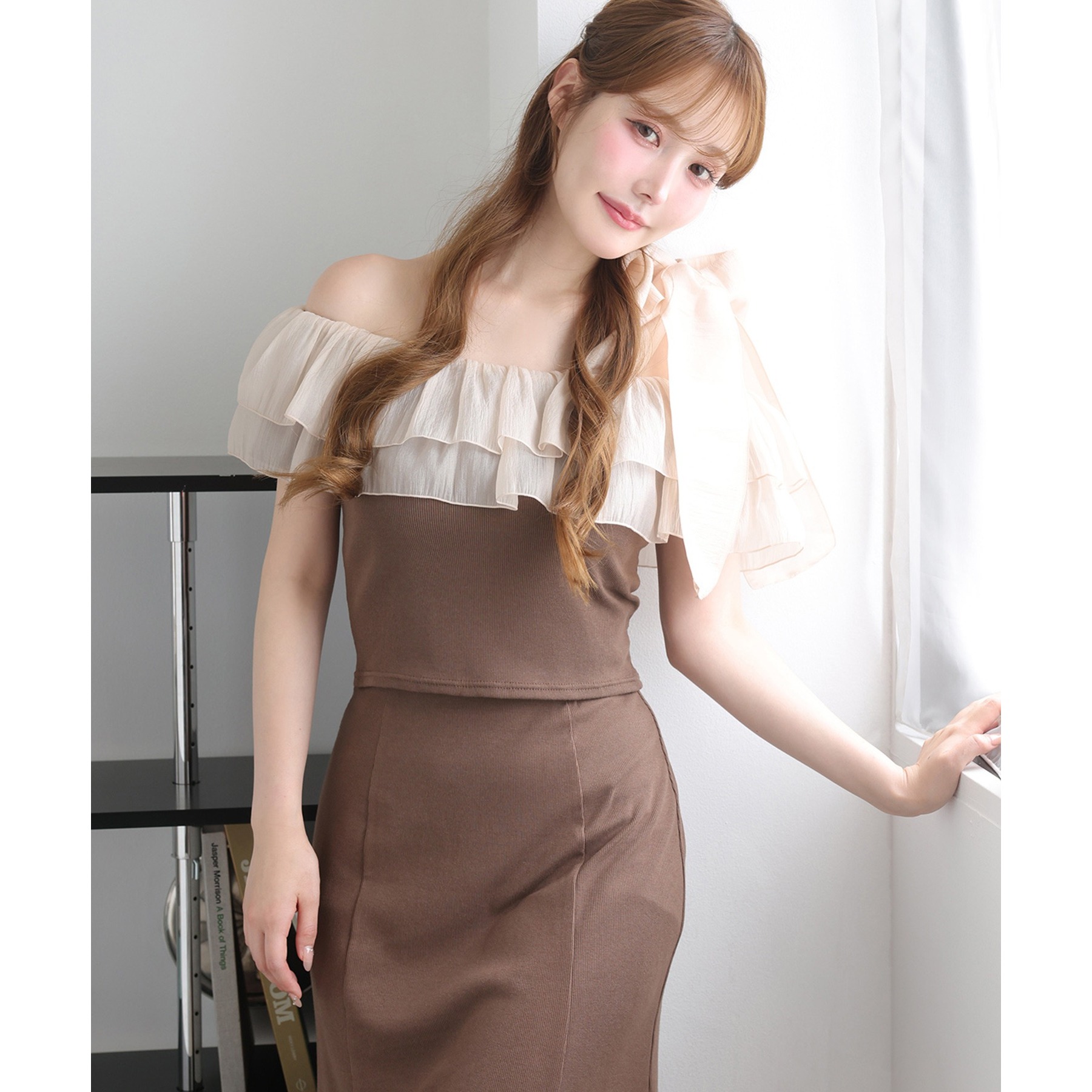 ワンショルダーのシルエットに、たっぷりのフリルと大きめリボンをあしらった主役級トップス。