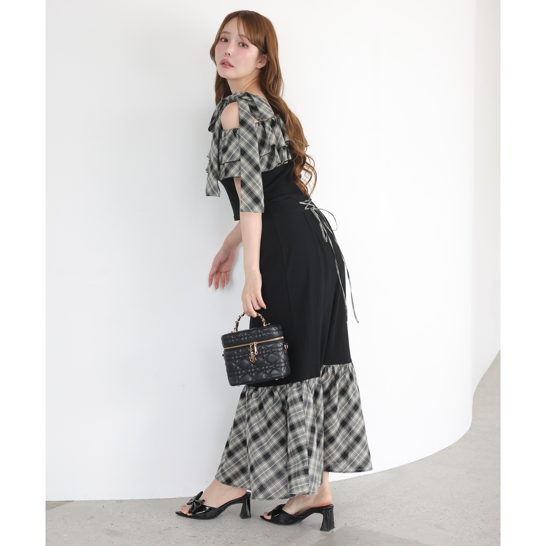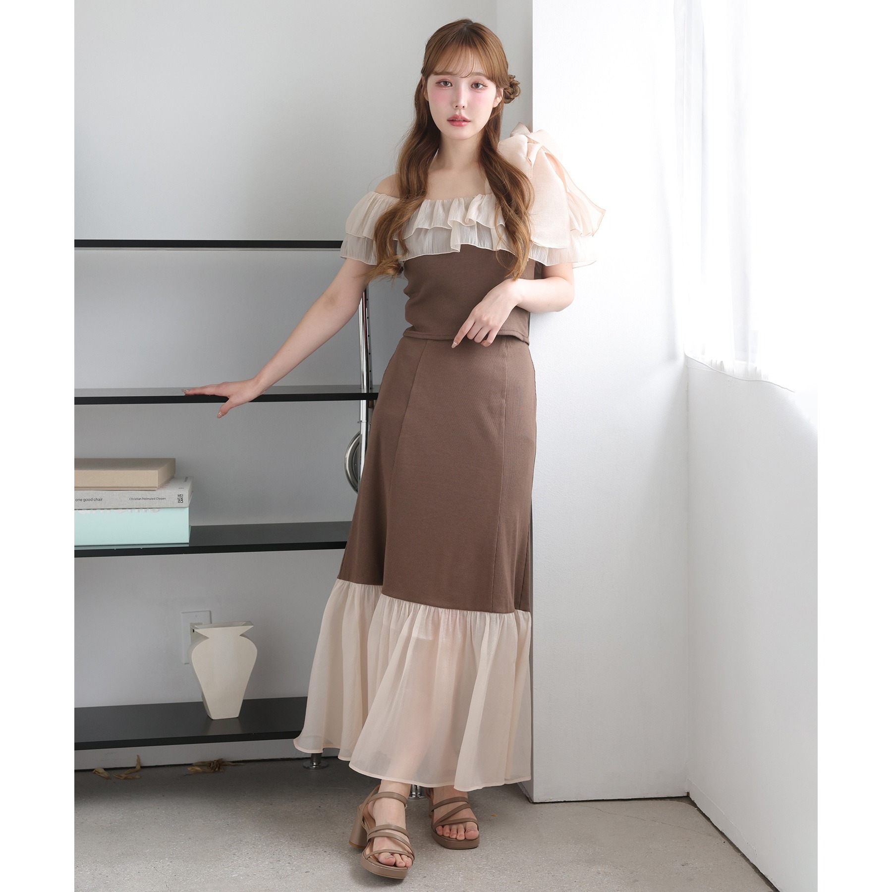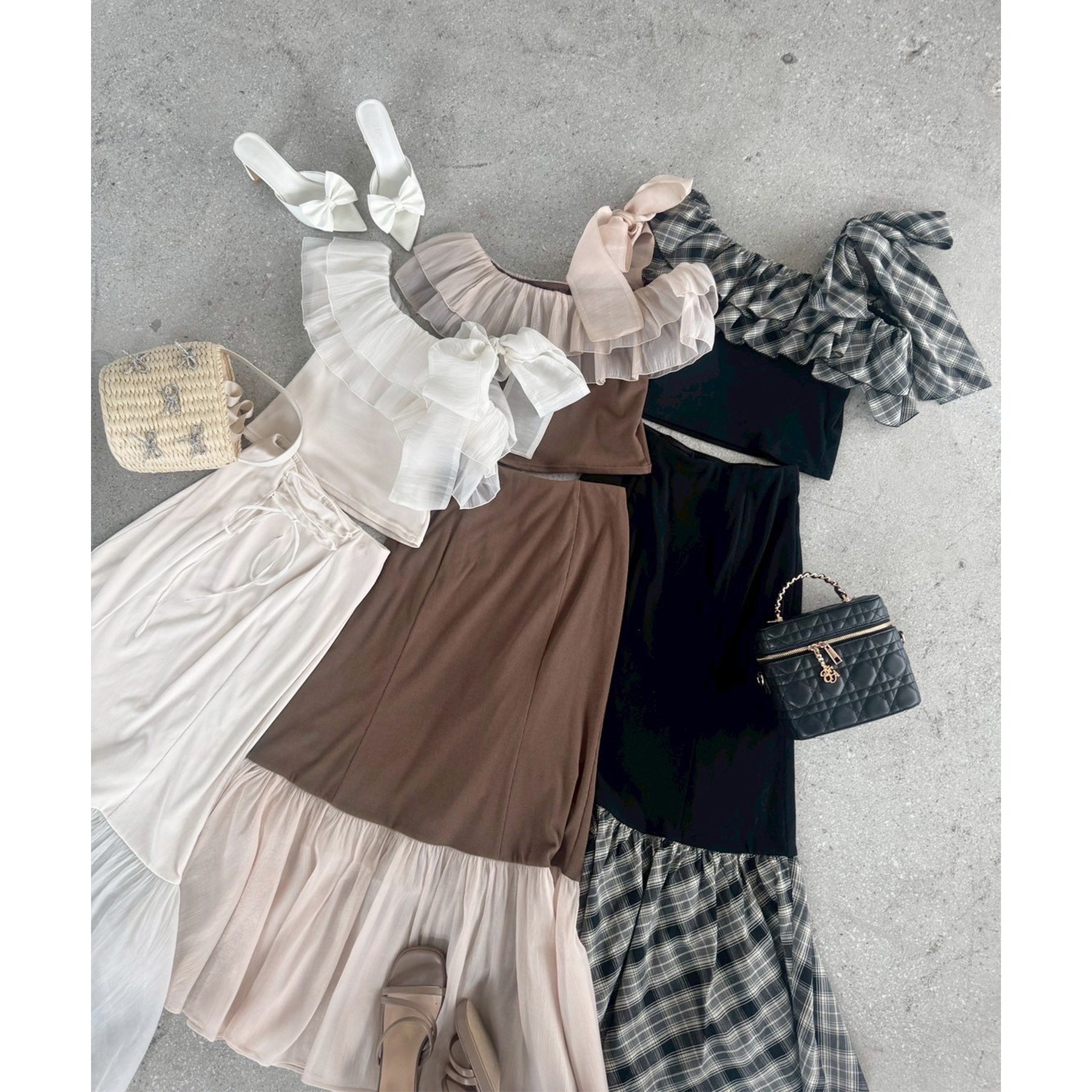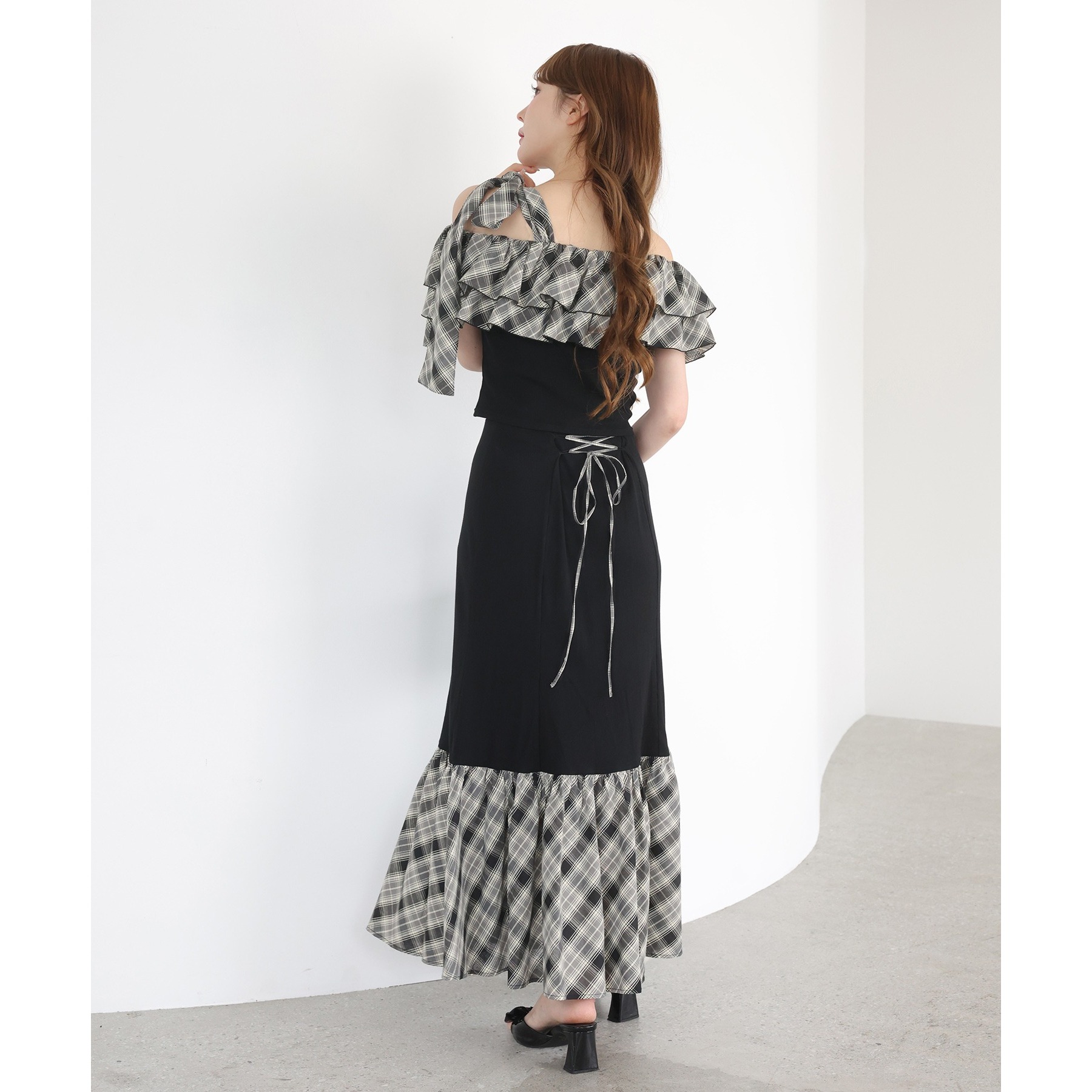 ボリュームのあるティアードスカートと合わせて、ロマンティックな着こなしも♡